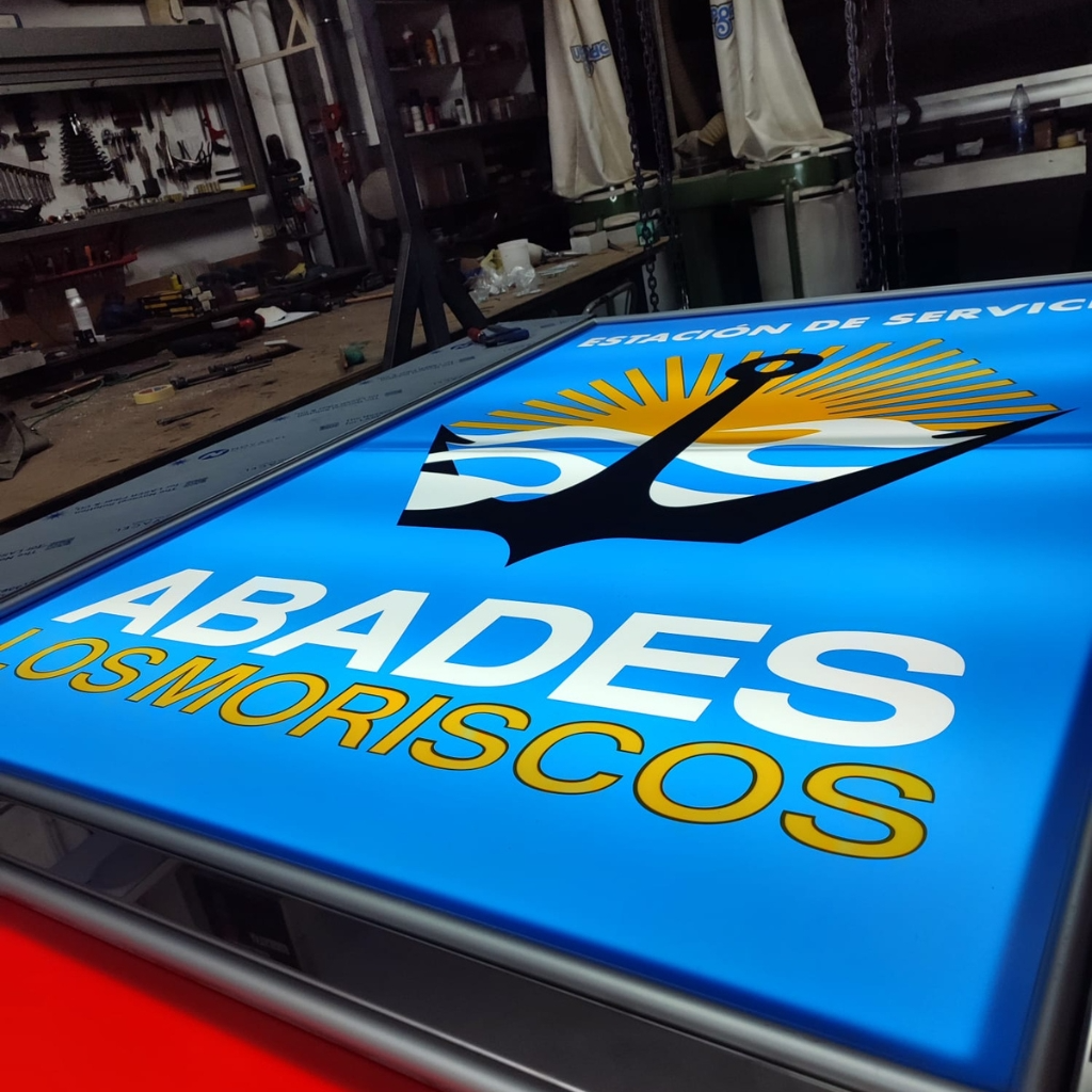 En este proyecto, Rótulos Enjucar ha desarrollado desde cero un monolito de 7,30 metros de altura para la Estación de Servicios Abades Los Moriscos, integrando diseño, fabricación y acabados en una única solución de gran formato.