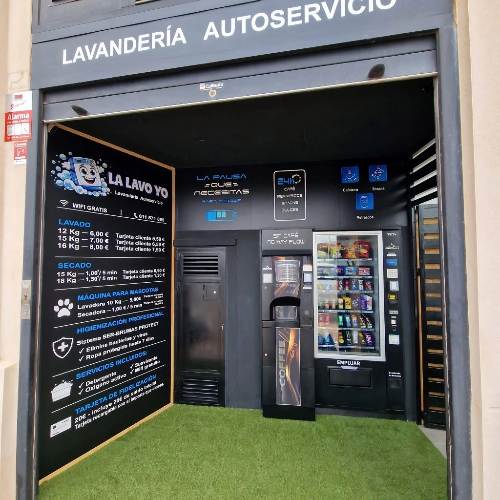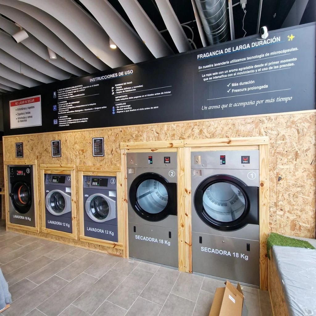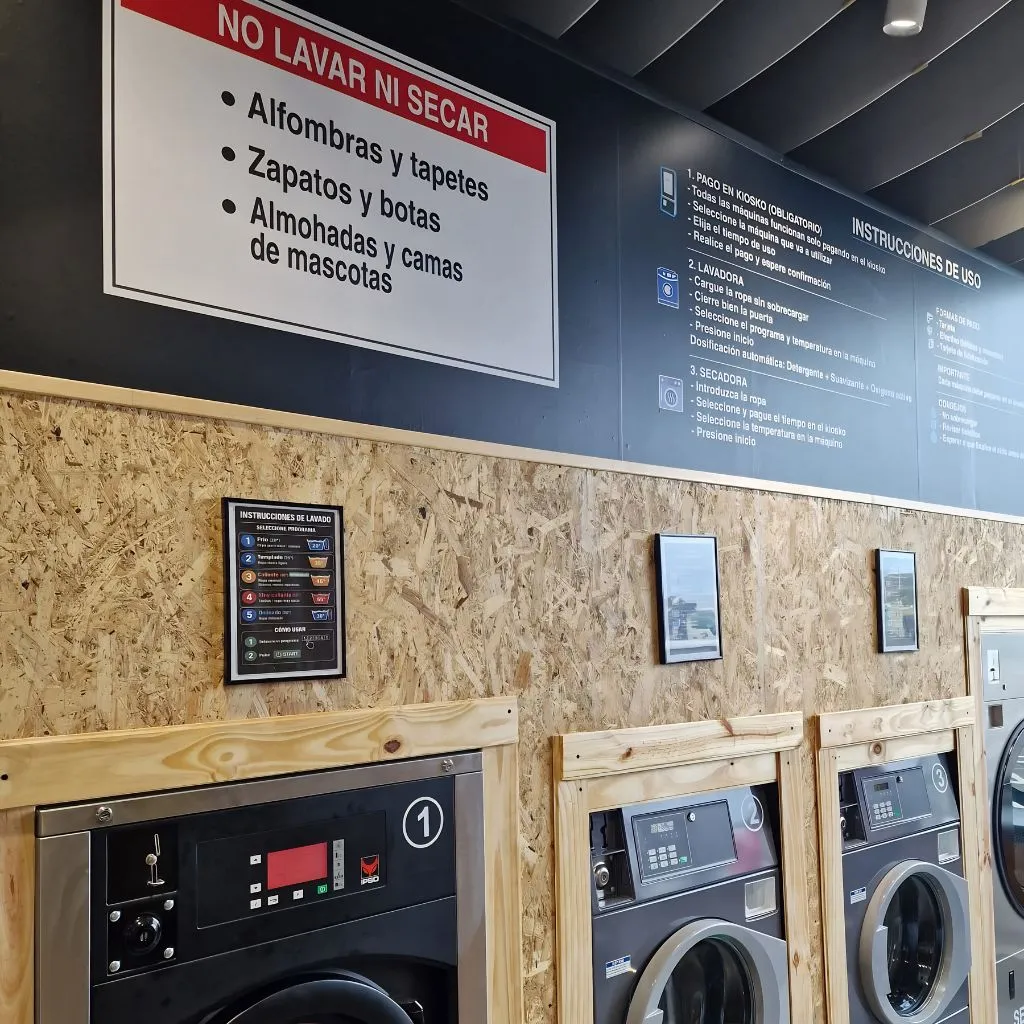 El resultado es una lavandería autoservicio moderna, funcional y con una identidad visual sólida. Cada elemento ha sido diseñado para mejorar la experiencia del usuario y reforzar la marca desde el primer vistazo.
