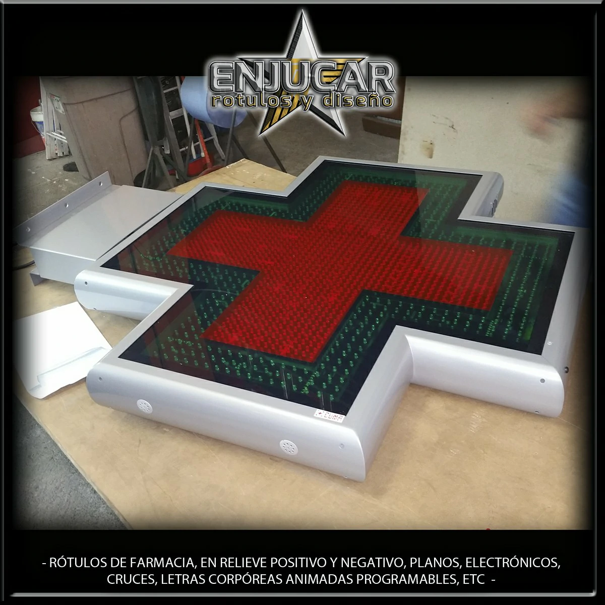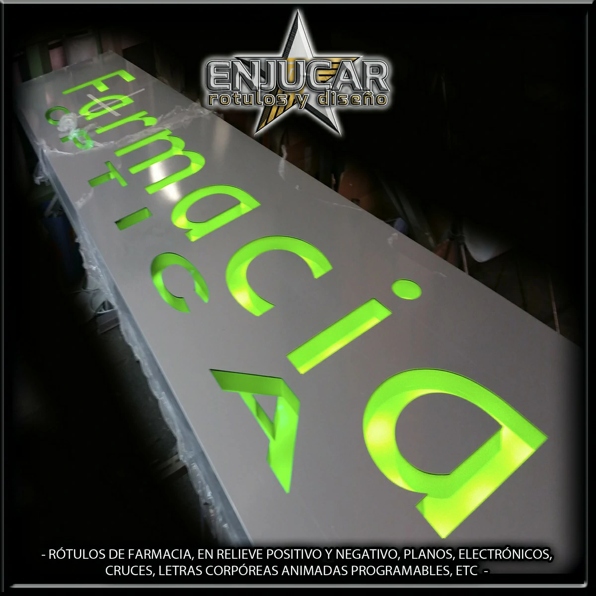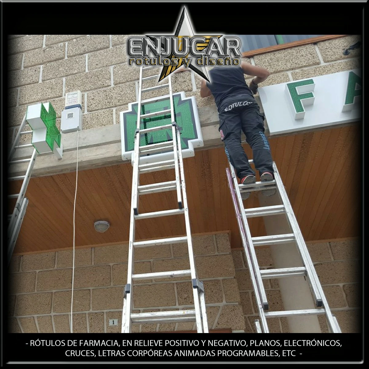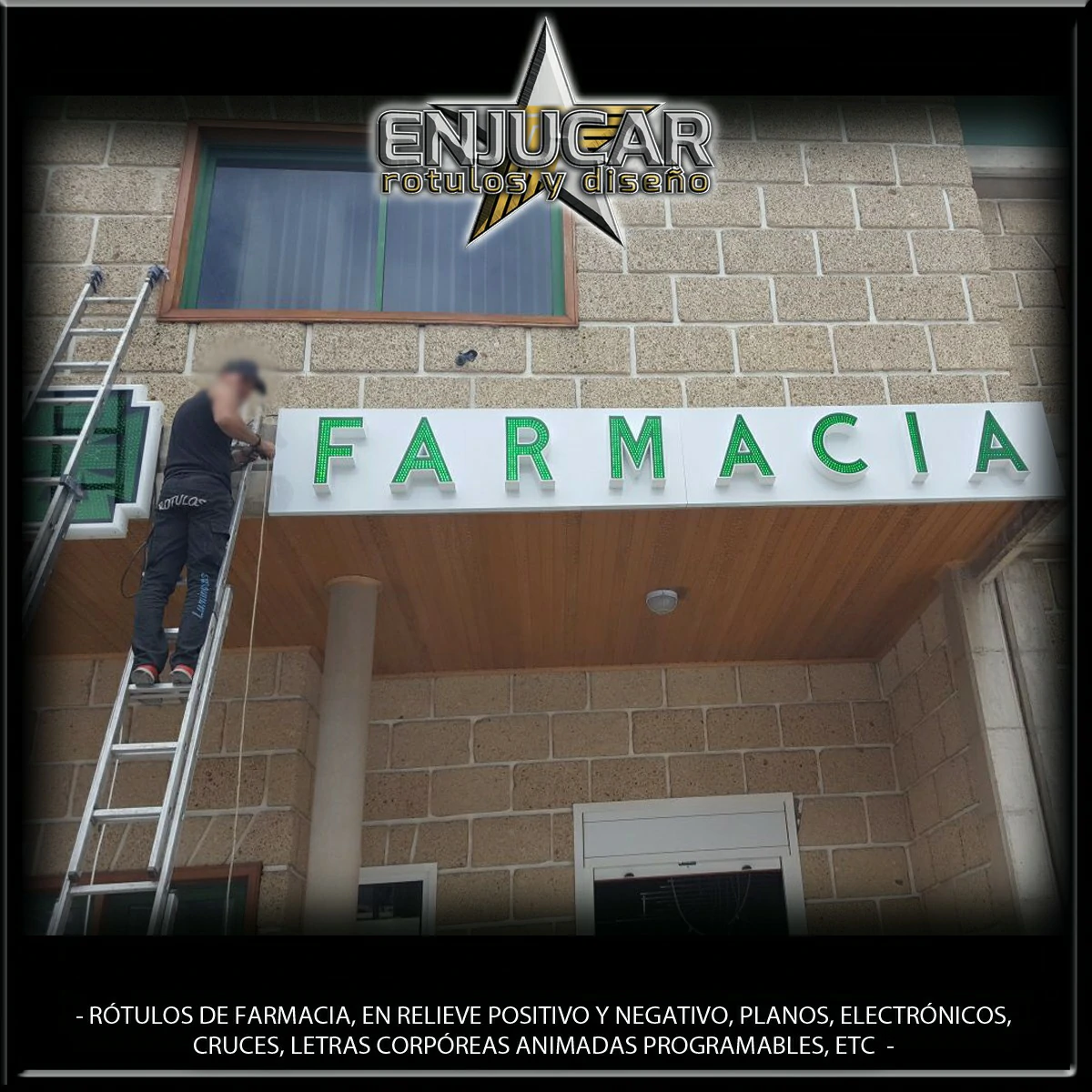 En Rótulos Enjucar somos especialistas en letreros y cartelería para farmacias, combinando visibilidad, funcionalidad y diseño.