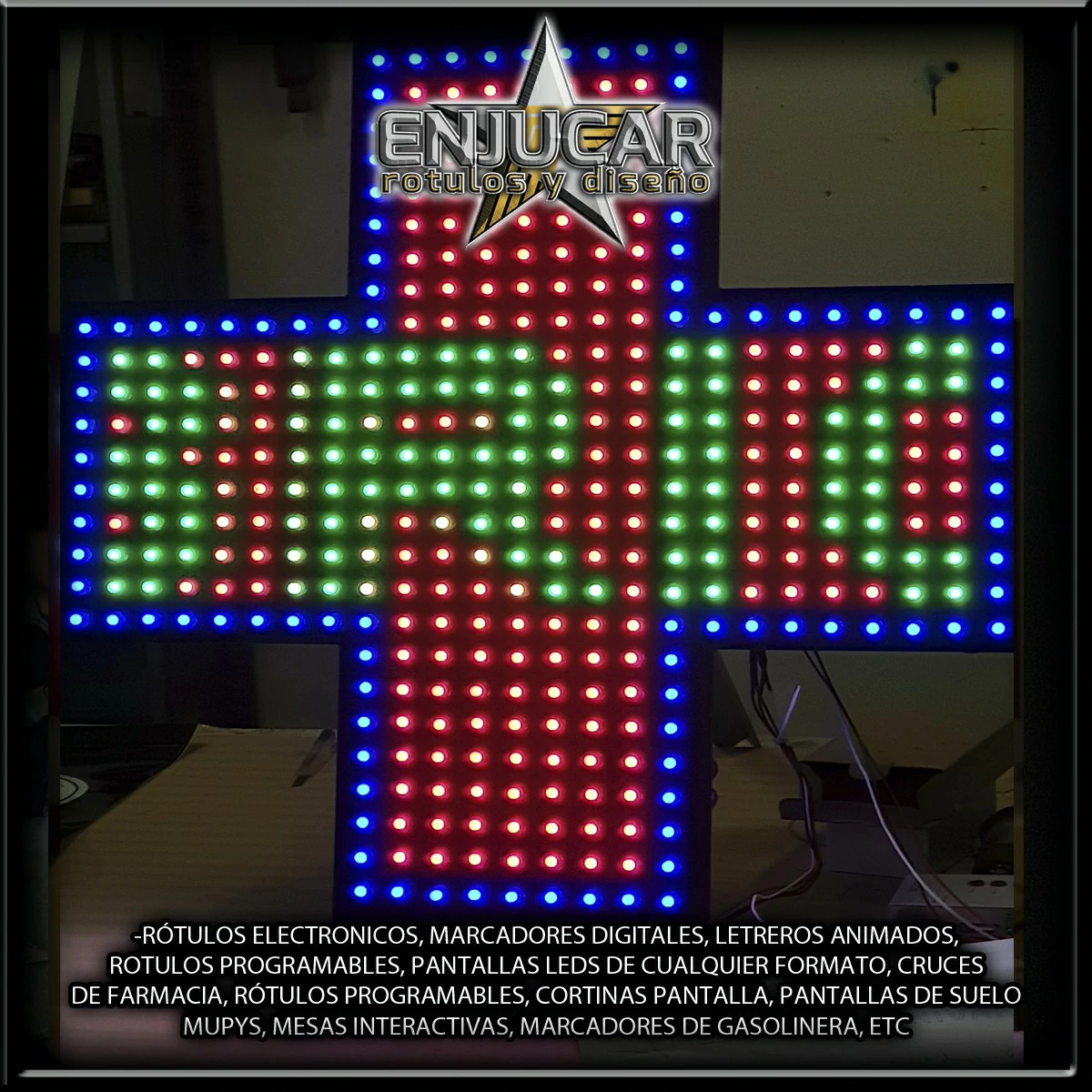 Distribuimos las principales marcas de rótulos electrónicos del mercado y disponemos además de marca propia fabricada por nuestra empresa con total garantía de montaje, mantenimiento y repuestos, pudiéndonos adaptar así a cruces, rótulos, etc. con la forma y diseño que usted desee.