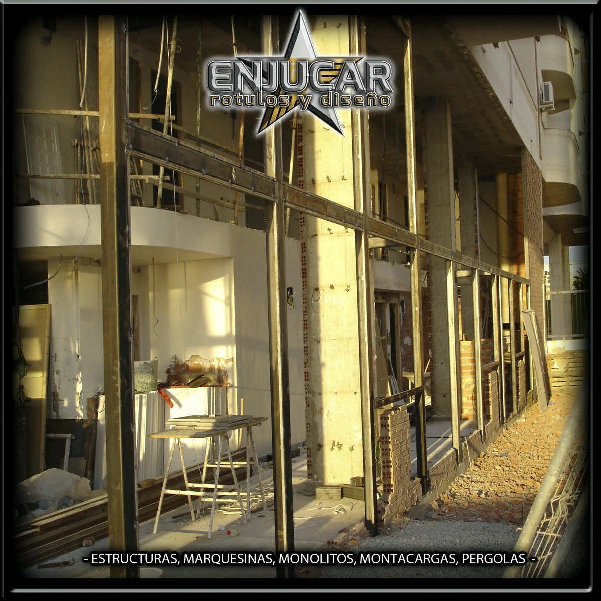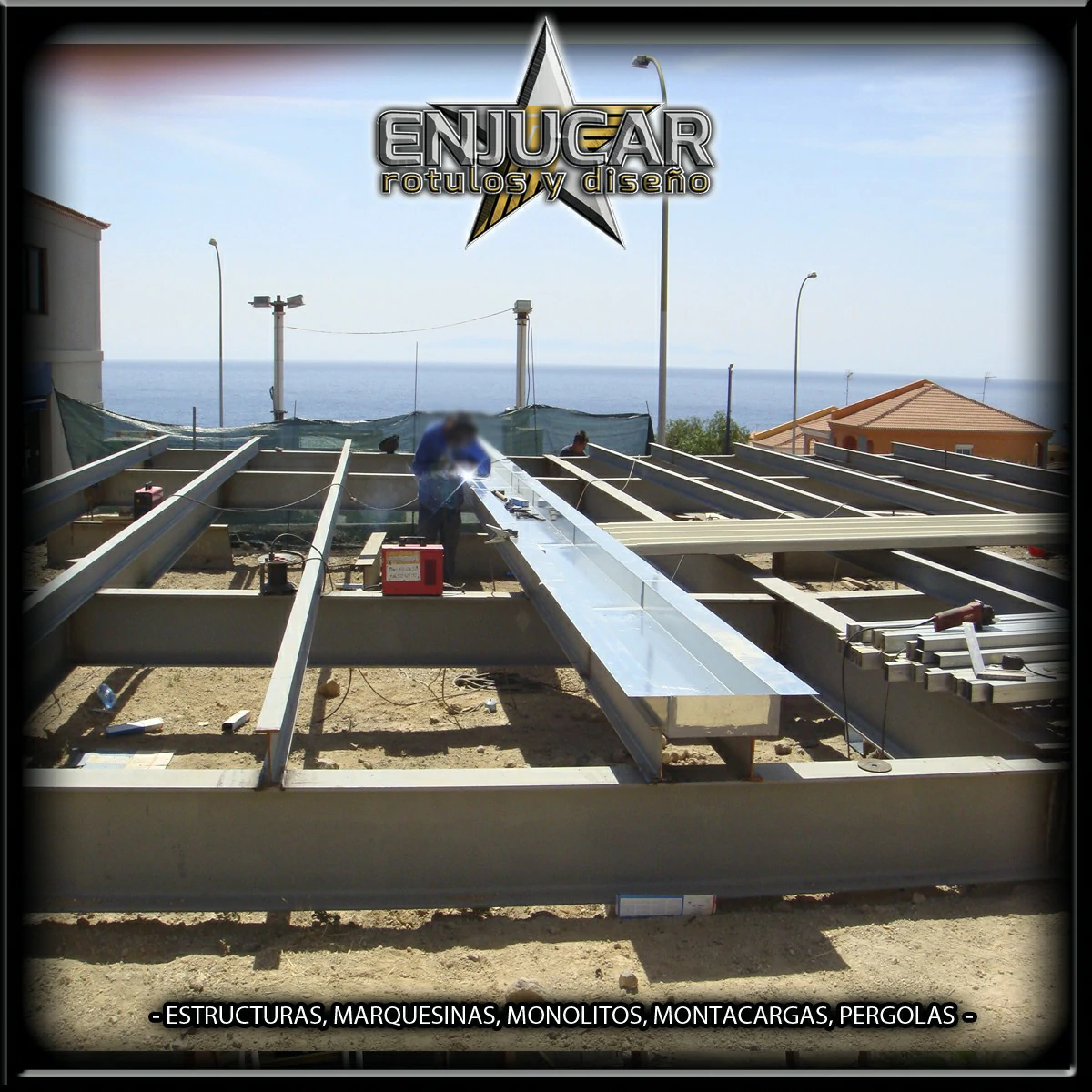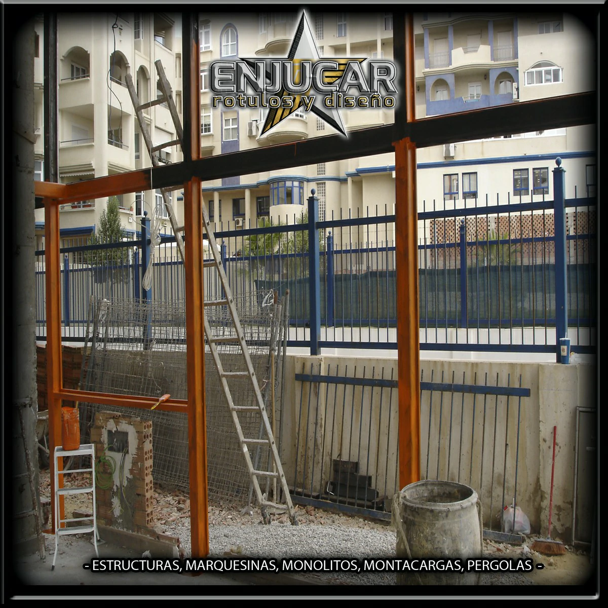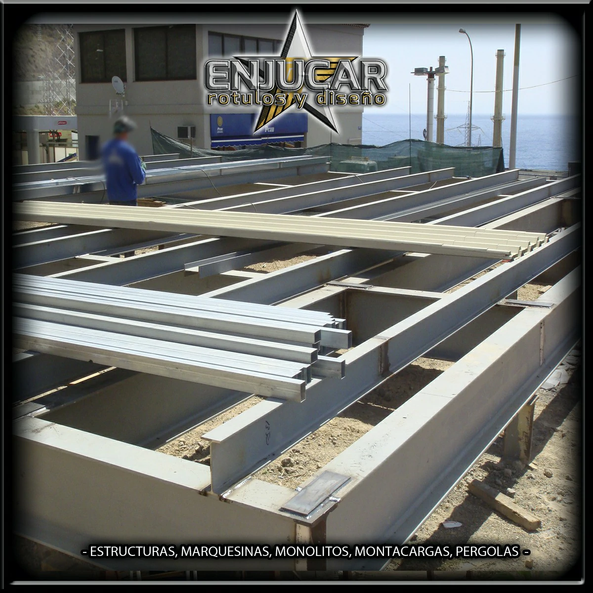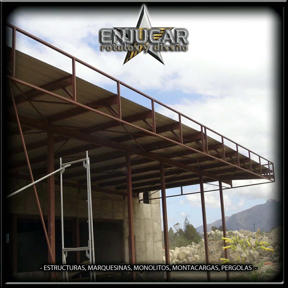 Desarrollamos todo tipo de estructuras metálicas y arquitectónicas, incluyendo marquesinas, tótems, montacargas, pérgolas, fachadas acristaladas y otros elementos personalizados.
