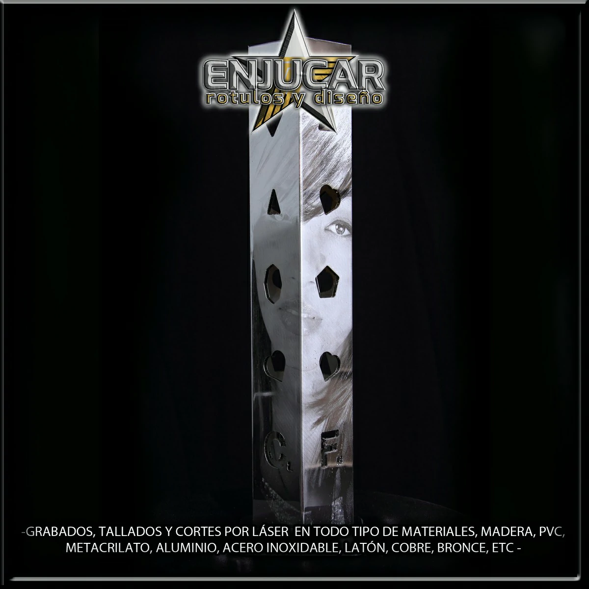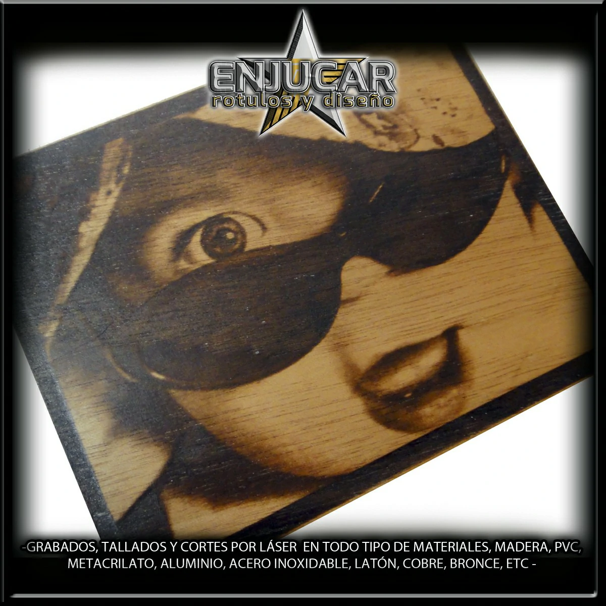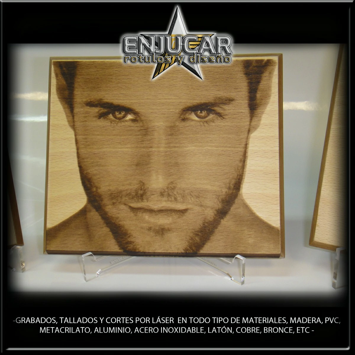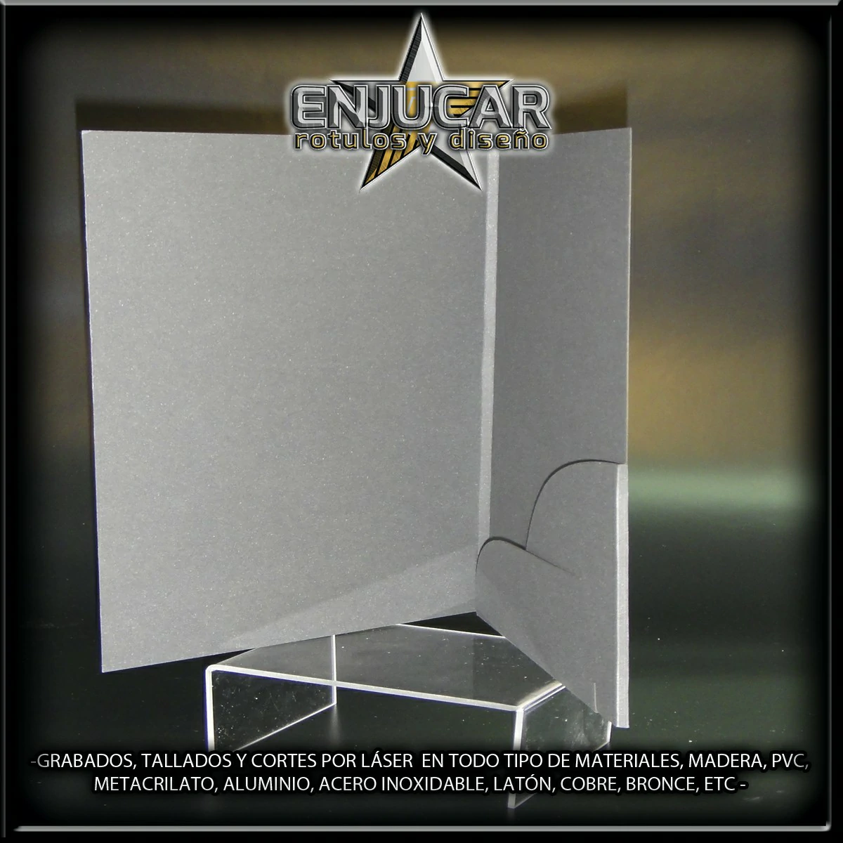 Ofrecemos soluciones precisas de grabado, corte y tallado láser en materiales como madera, piedra, cristal, espejos, cuero, tela, cartón, papel, placas metálicas, y más.