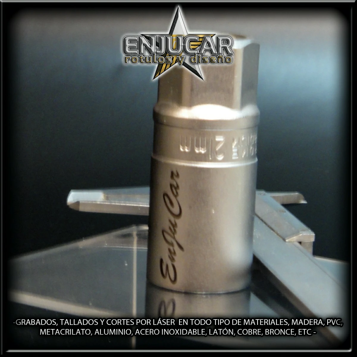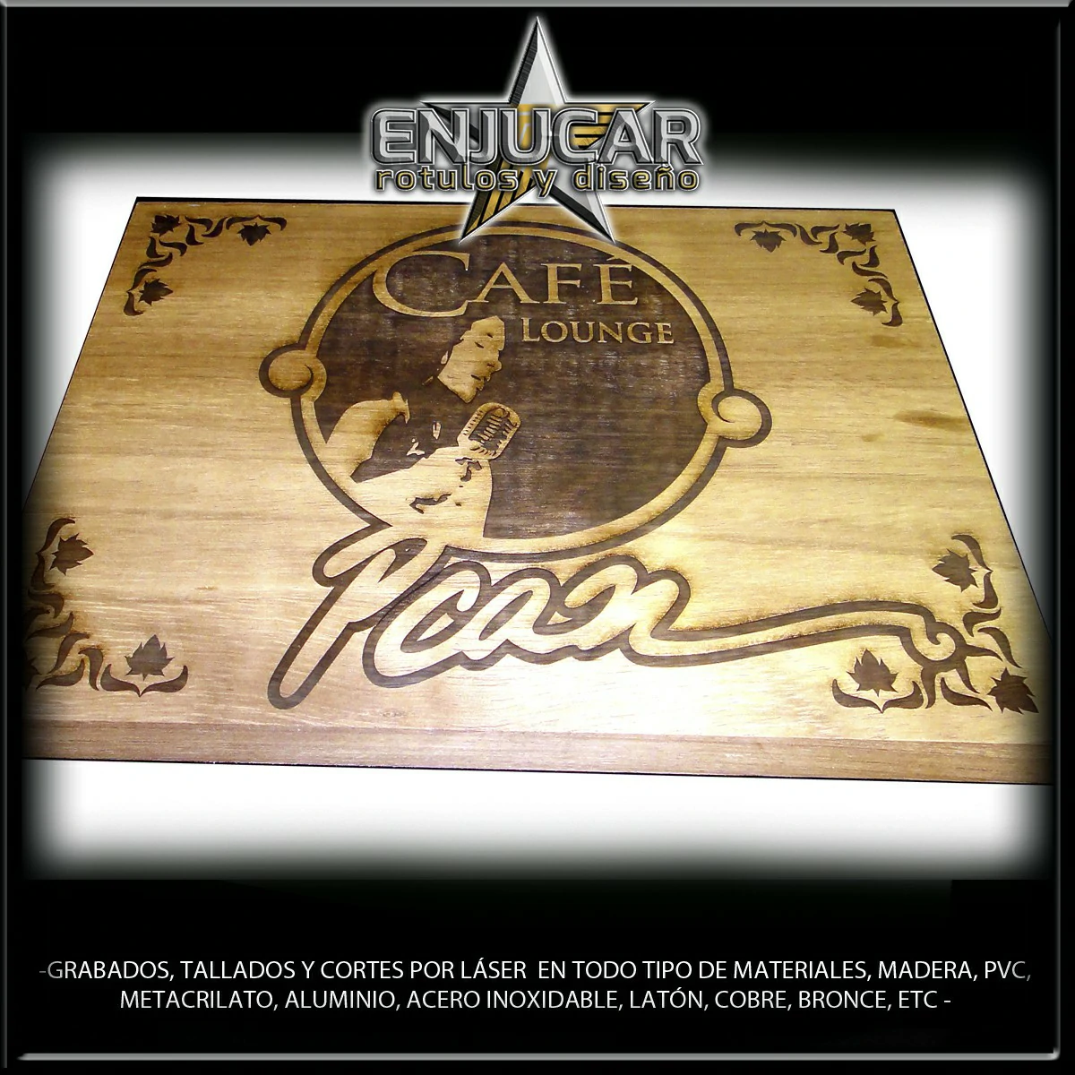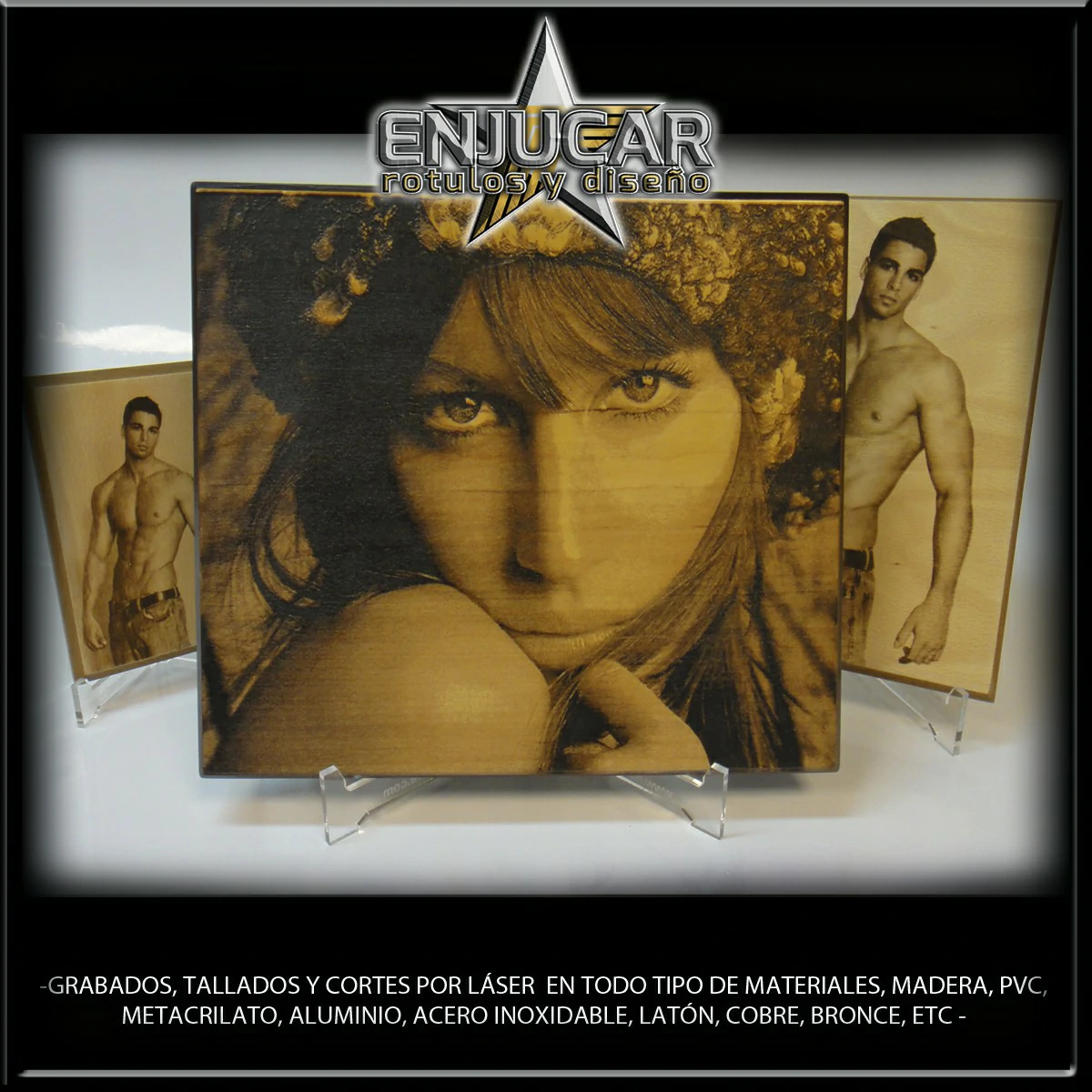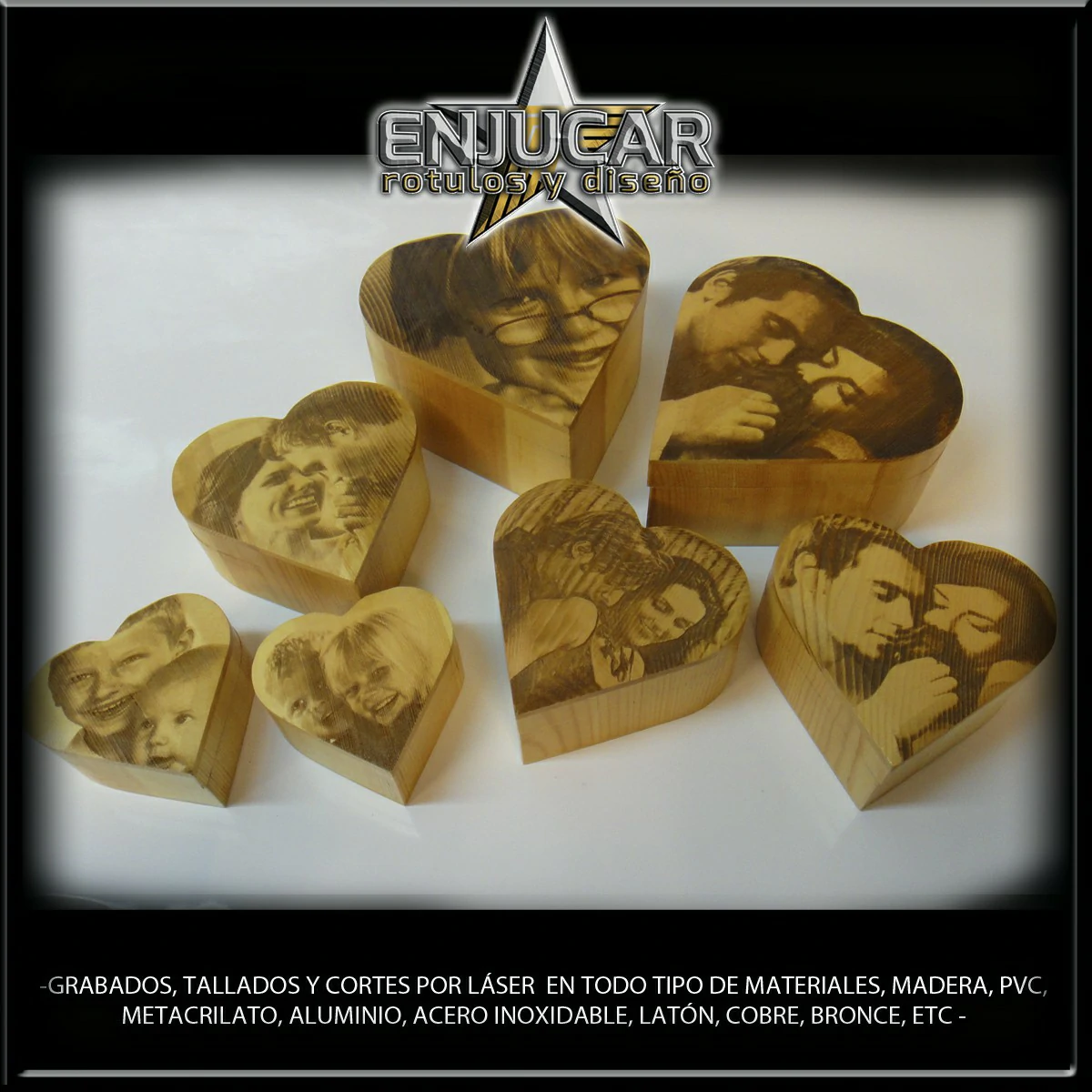 Ofrecemos soluciones precisas de grabado, corte y tallado láser en materiales como madera, piedra, cristal, espejos, cuero, tela, cartón, papel, placas metálicas, y más.