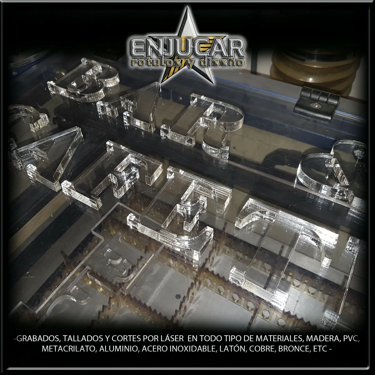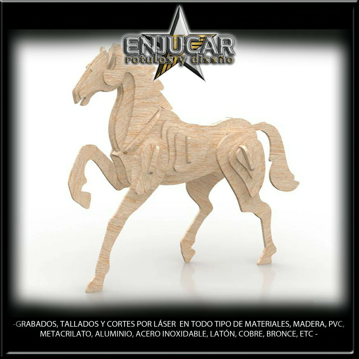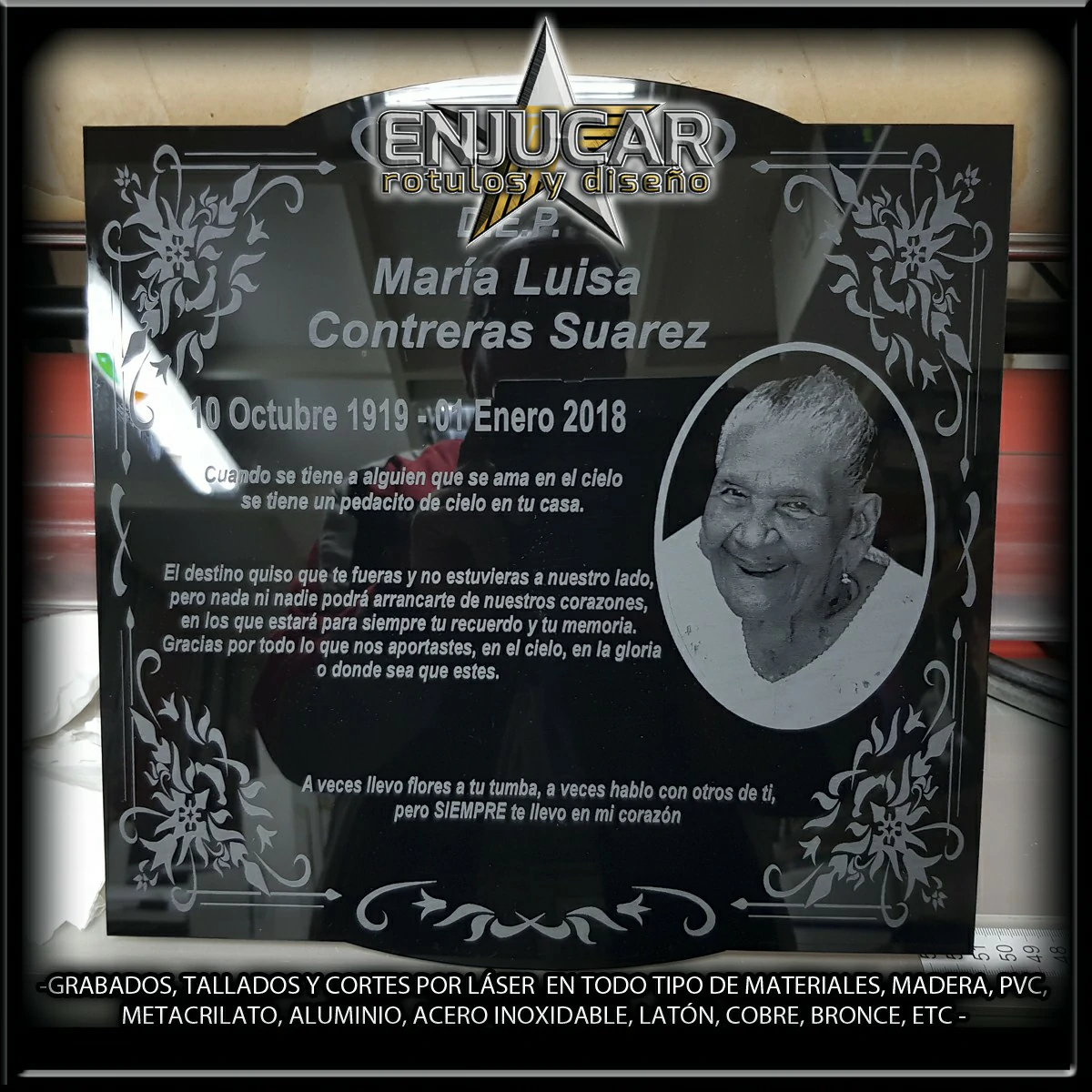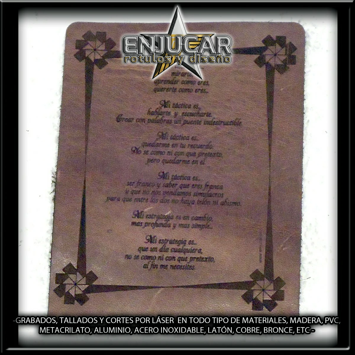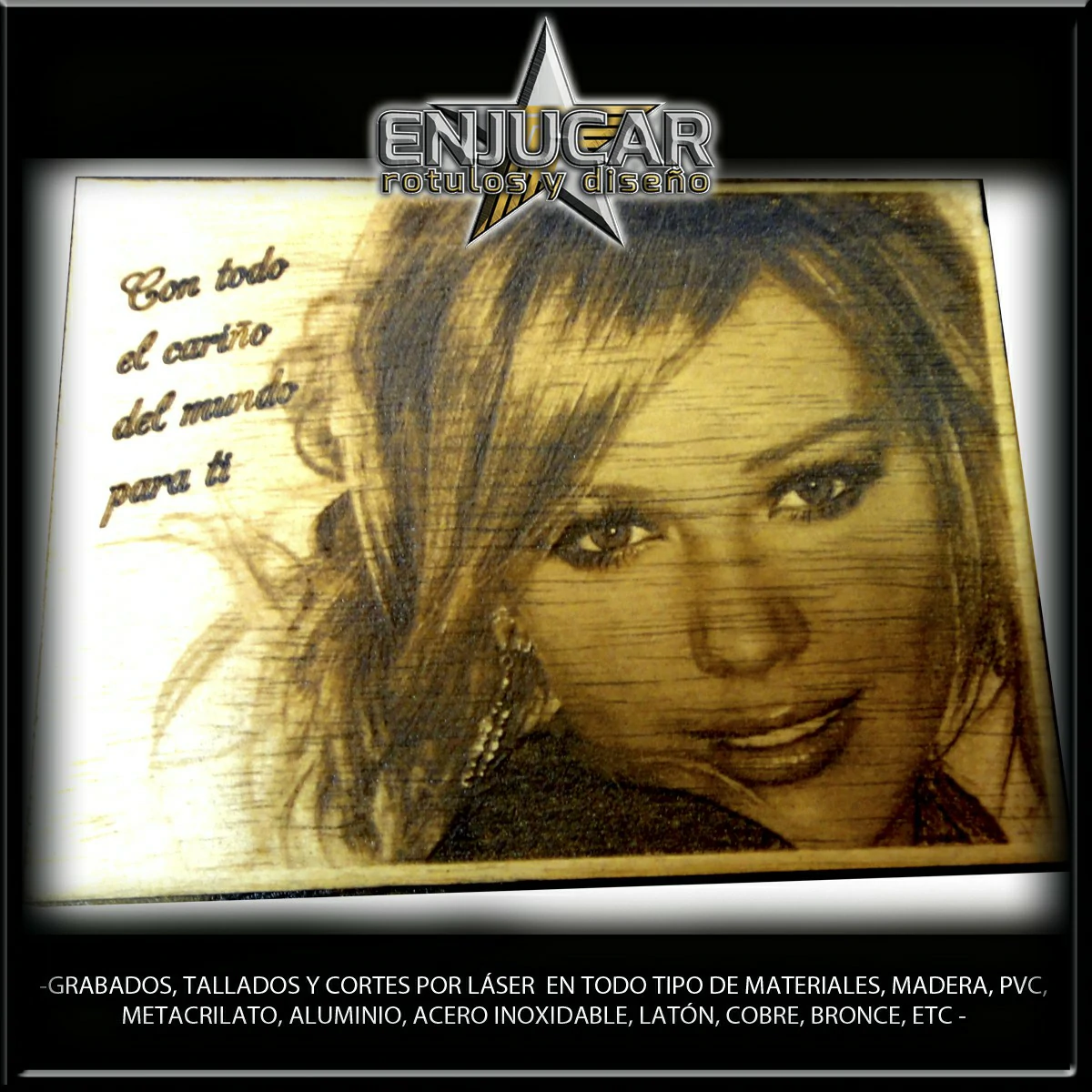 Ofrecemos soluciones precisas de grabado, corte y tallado láser en materiales como madera, piedra, cristal, espejos, cuero, tela, cartón, papel, placas metálicas, y más.