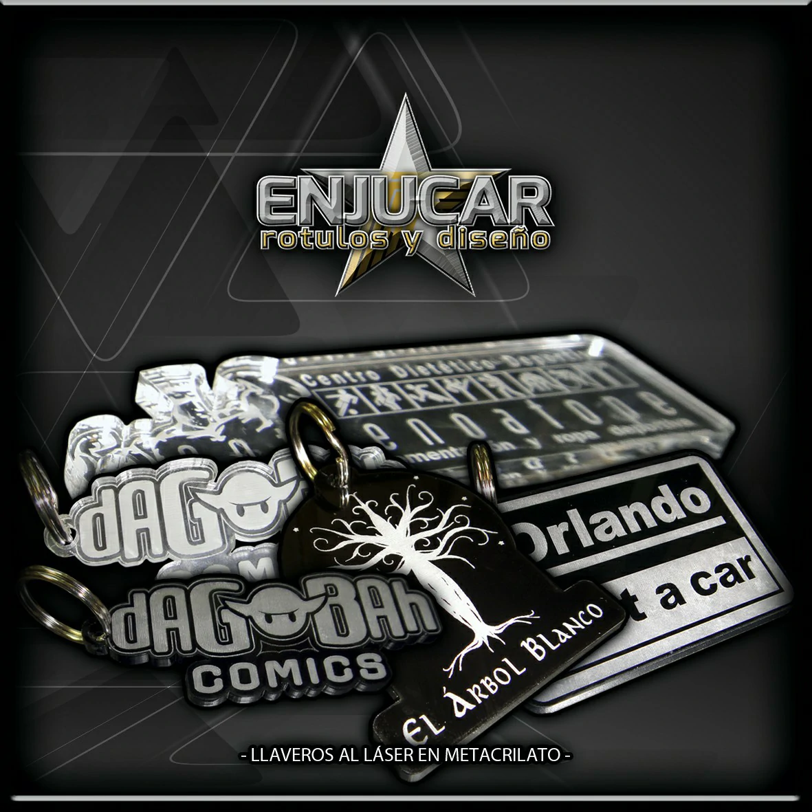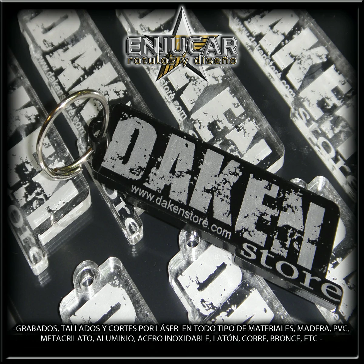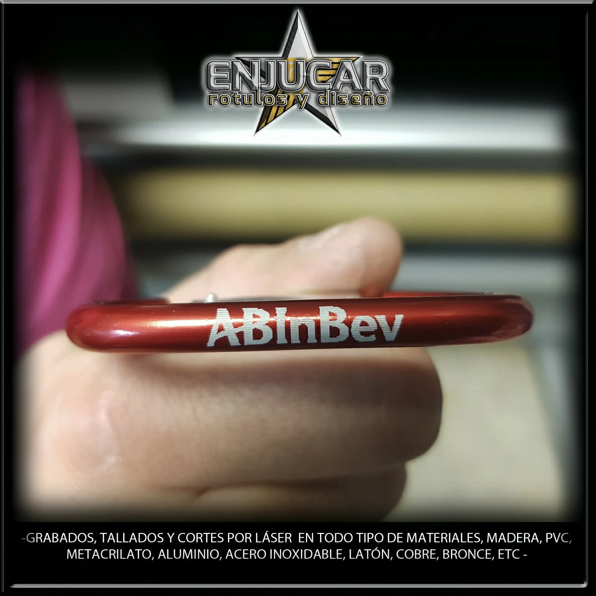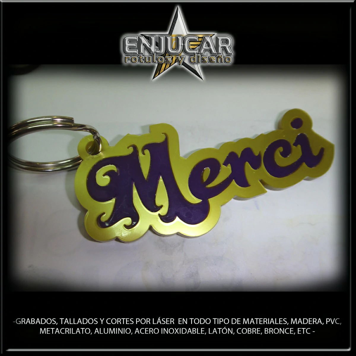 Realizamos trabajos personalizados como señalética profesional, identificadores personales (con pin o imán), llaveros, bolígrafos, sellos de caucho, y piezas decorativas.