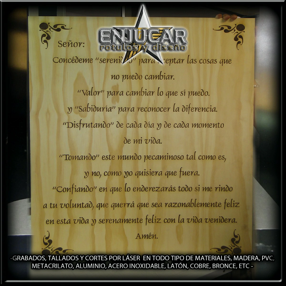 Nuestra tecnología permite combinar grabado, tallado y corte en una sola máquina, optimizando resultados y tiempos de producción.