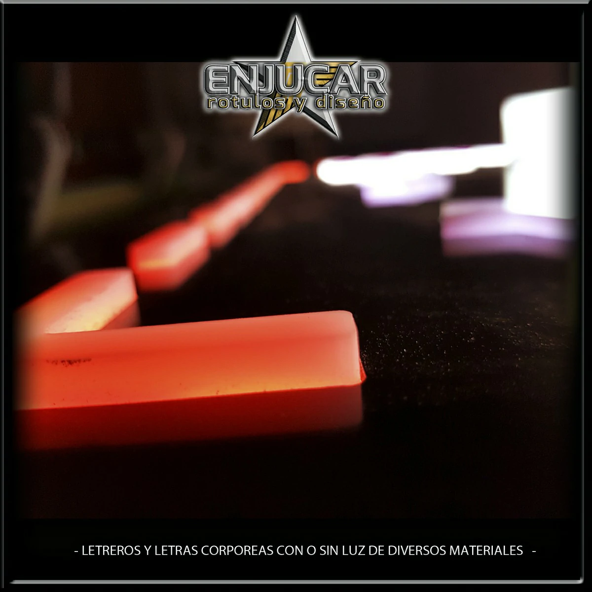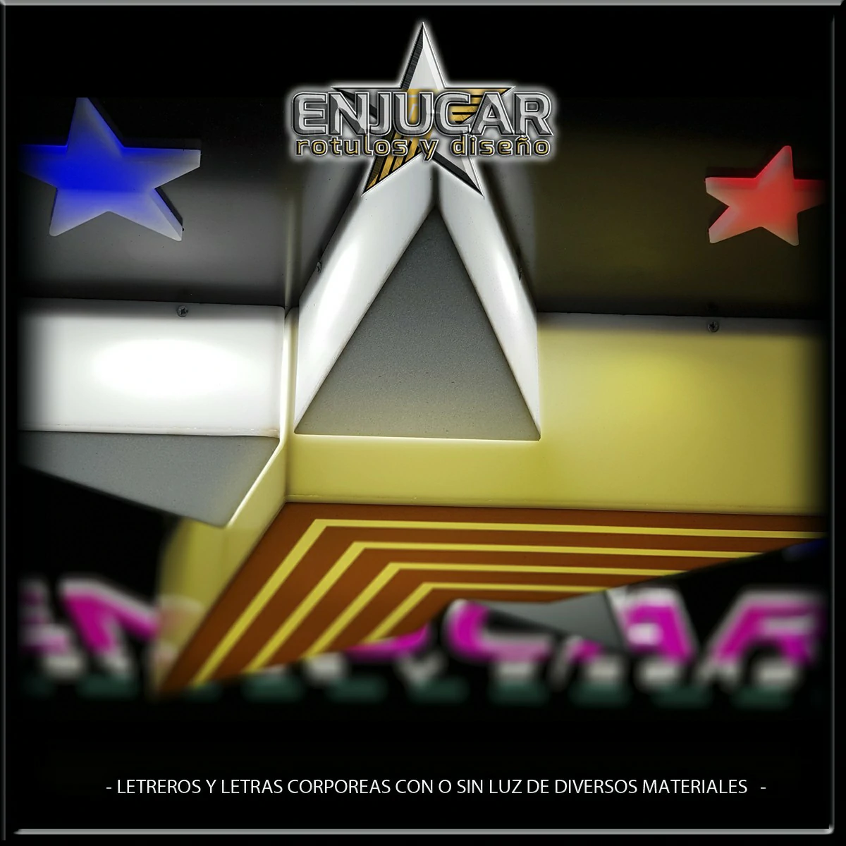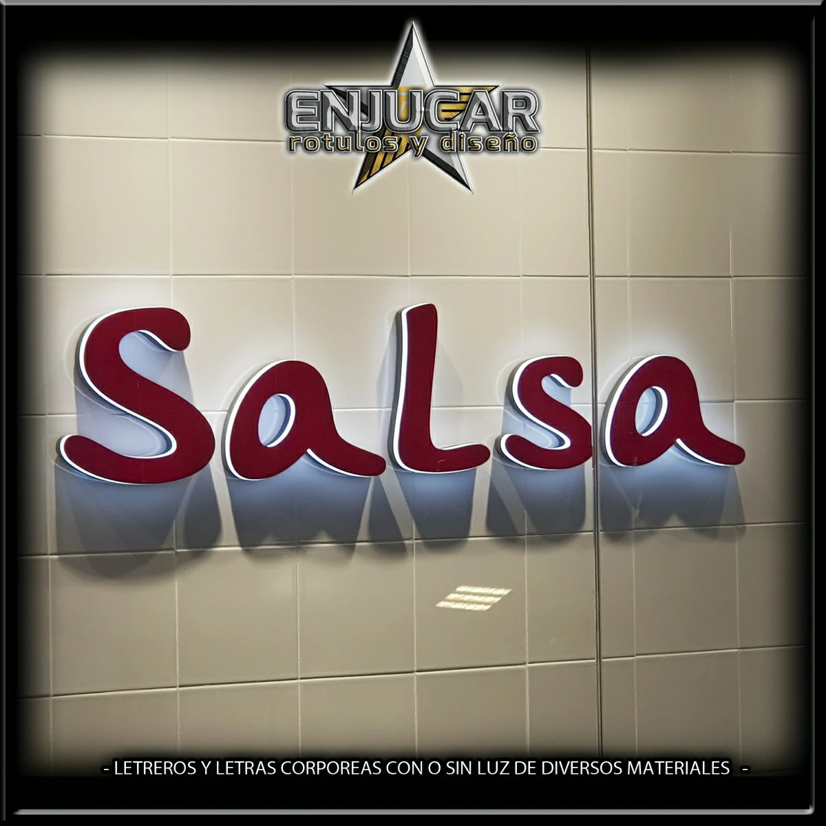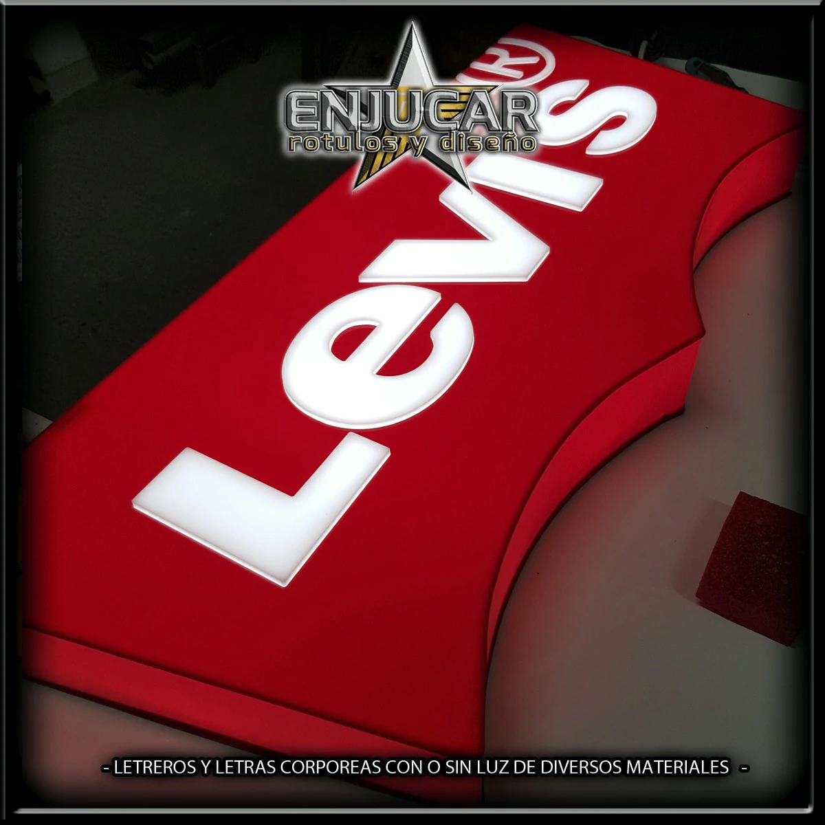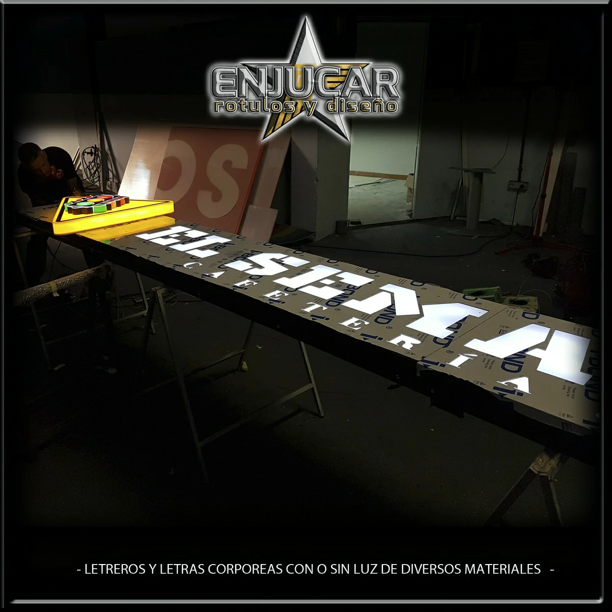 En Rótulos Enjucar damos vida a tu marca con letreros corpóreos con luz, ideales para destacar tanto de día como de noche.