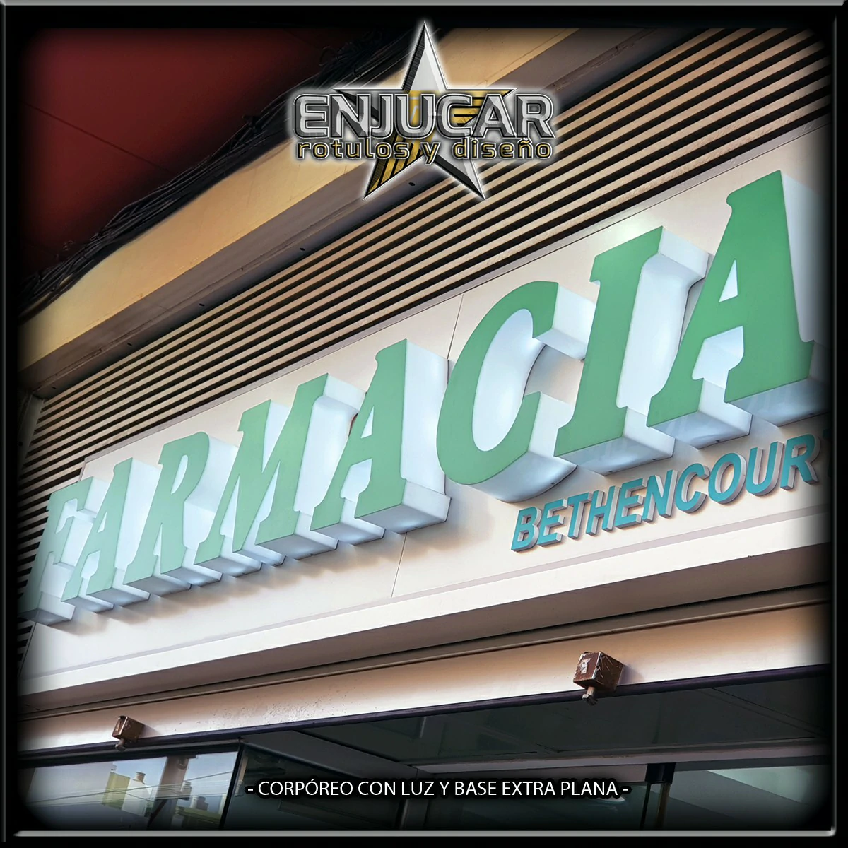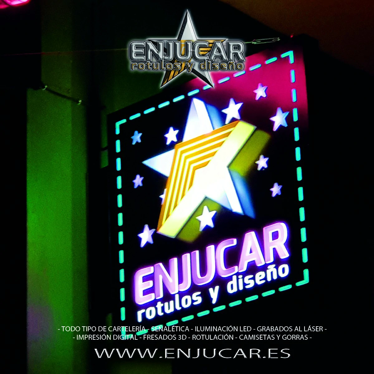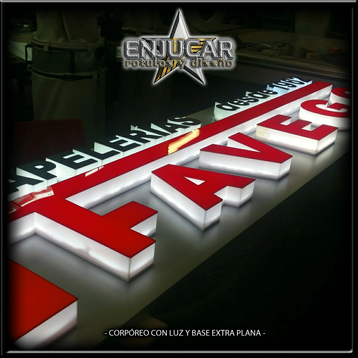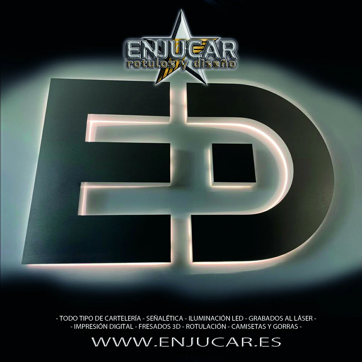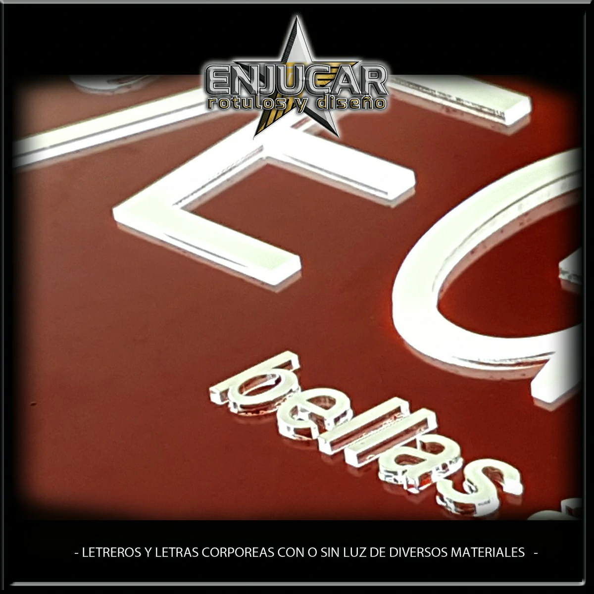 En Rótulos Enjucar damos vida a tu marca con letreros corpóreos con luz, ideales para destacar tanto de día como de noche.