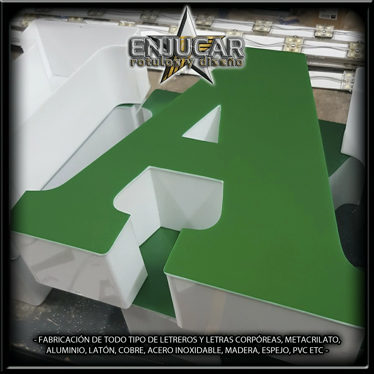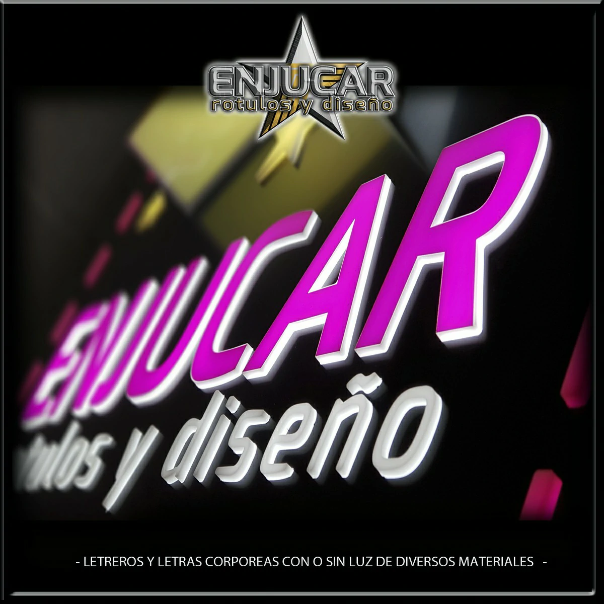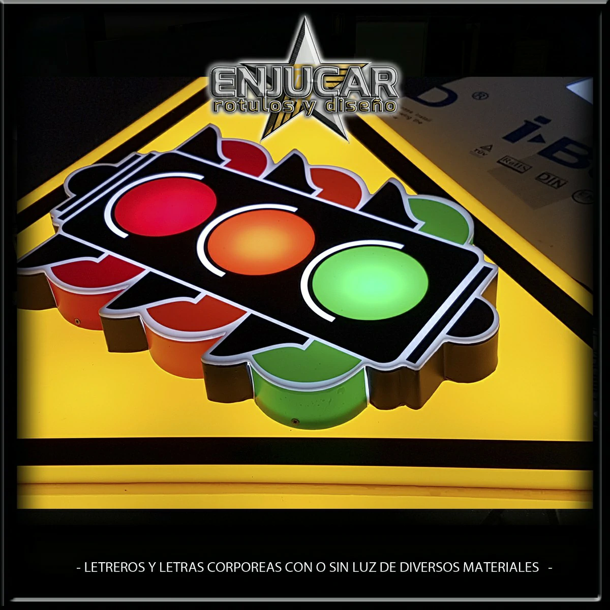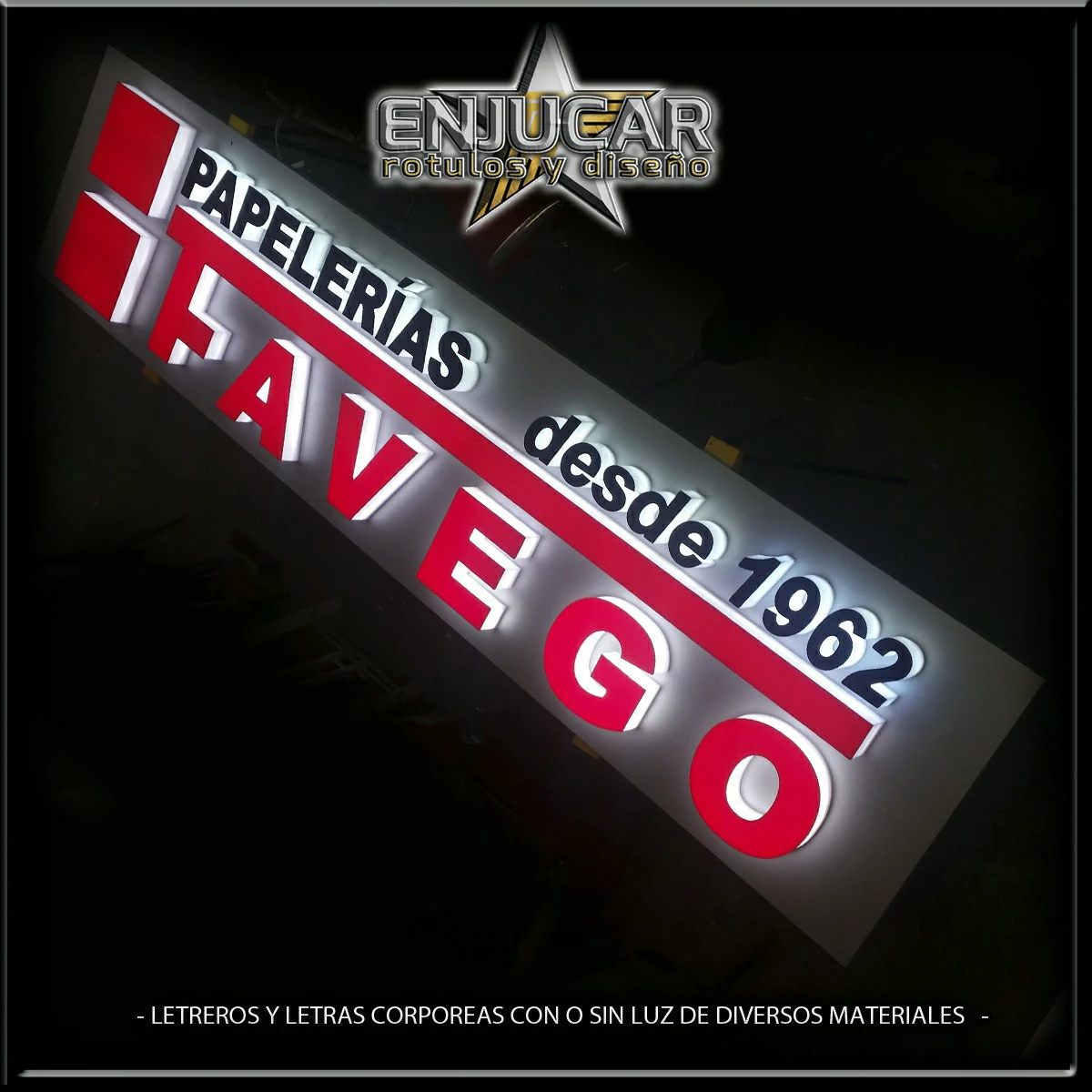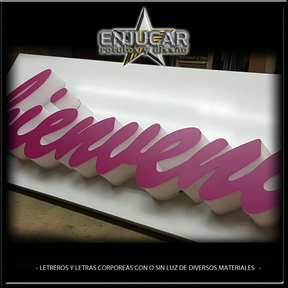 En Rótulos Enjucar damos vida a tu marca con letreros corpóreos con luz, ideales para destacar tanto de día como de noche.