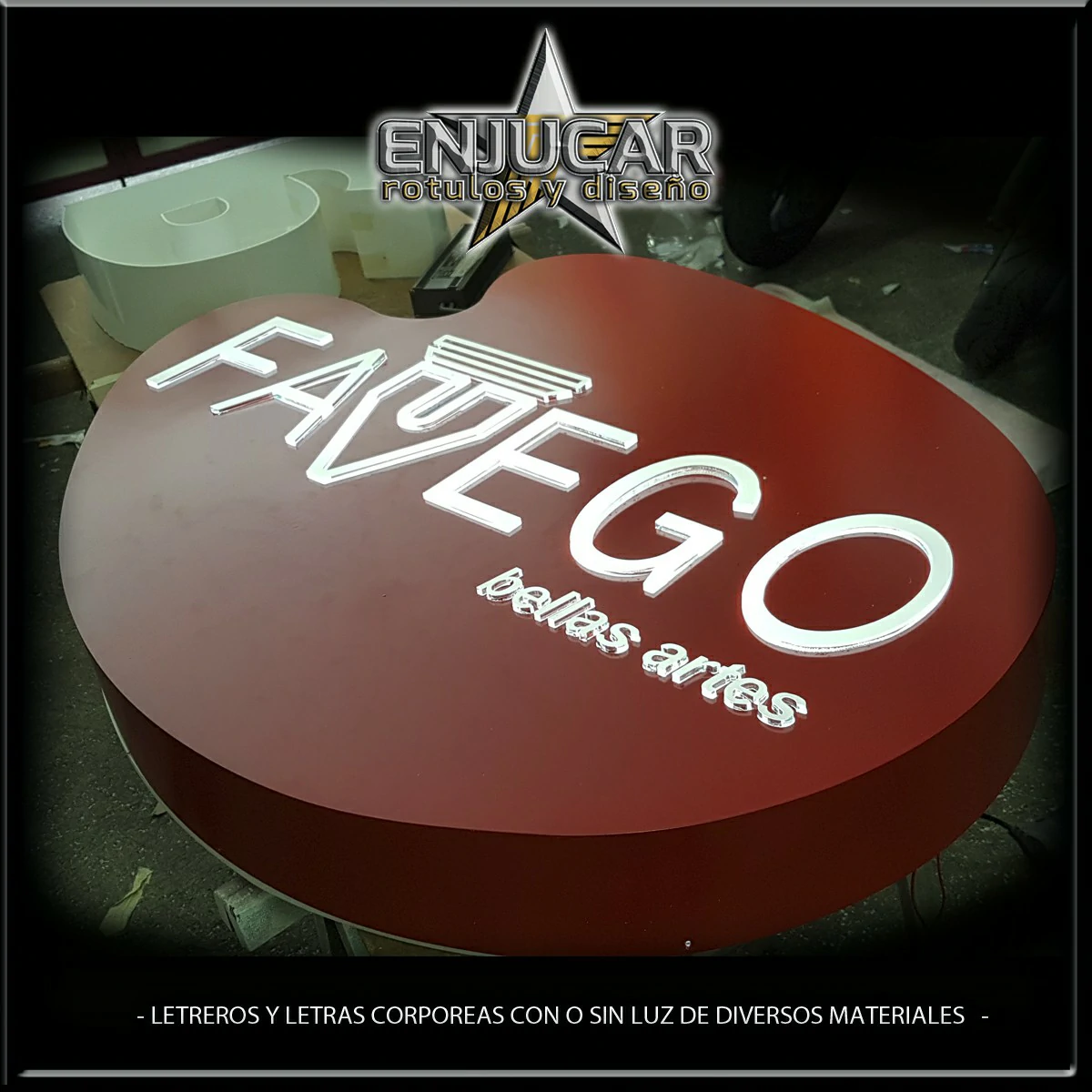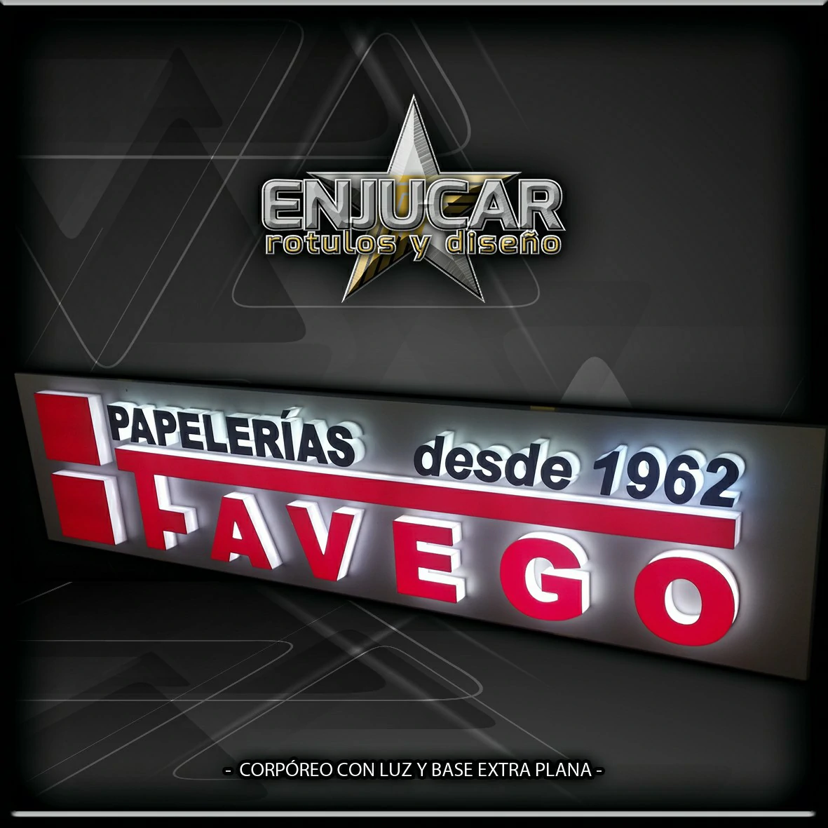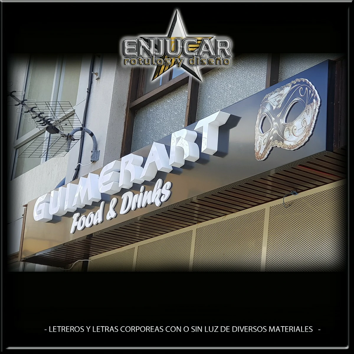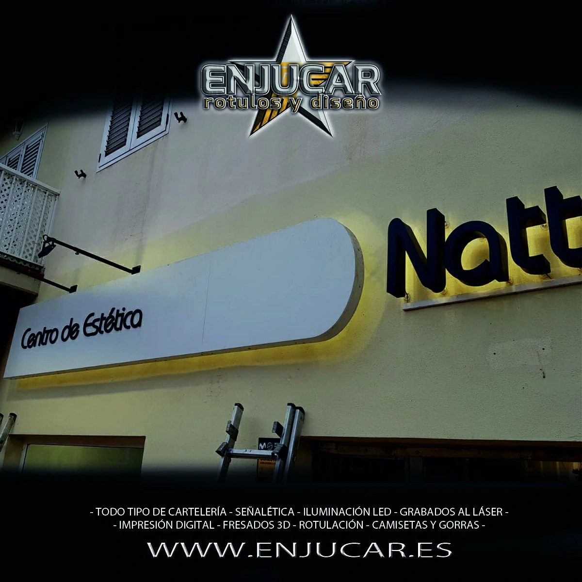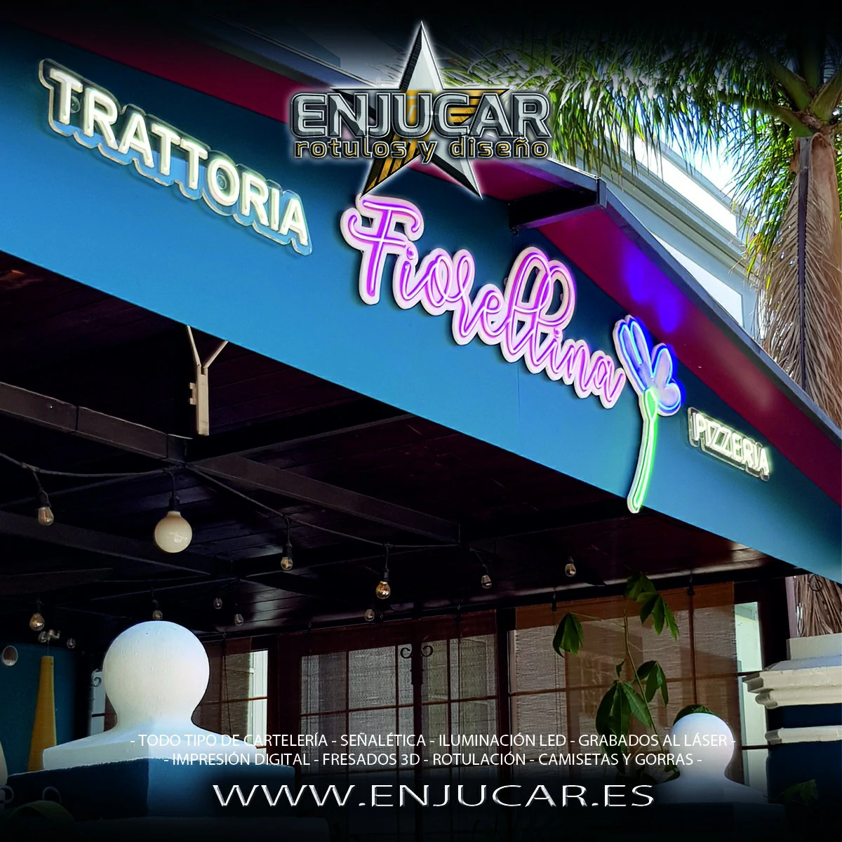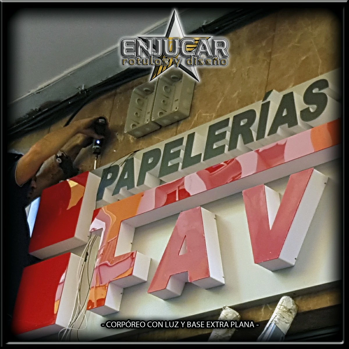 En Rótulos Enjucar damos vida a tu marca con letreros corpóreos con luz, ideales para destacar tanto de día como de noche.