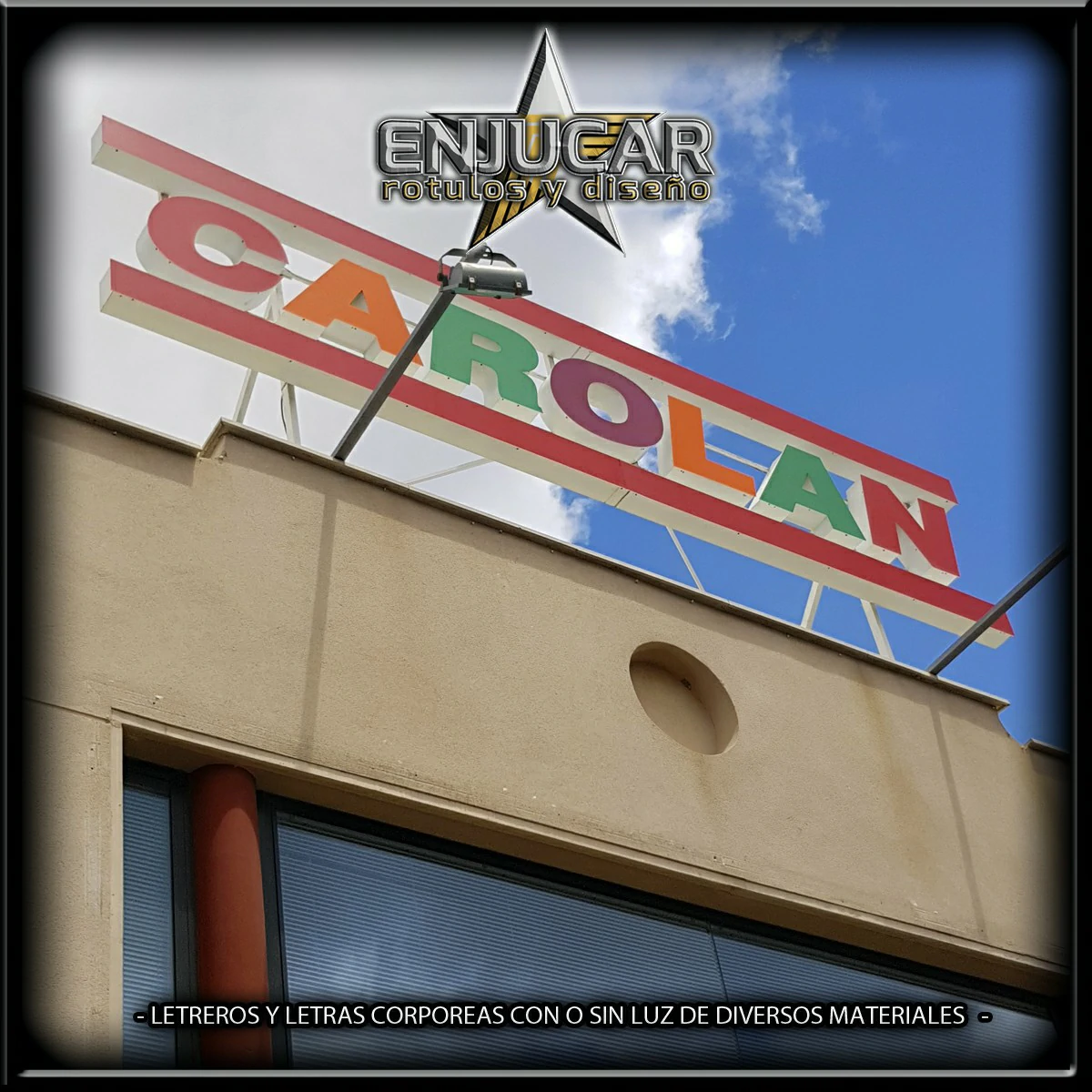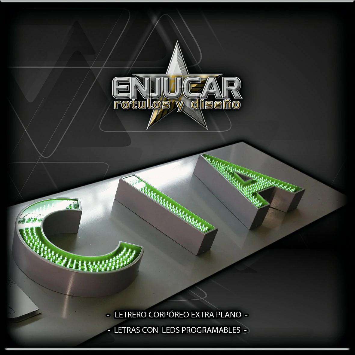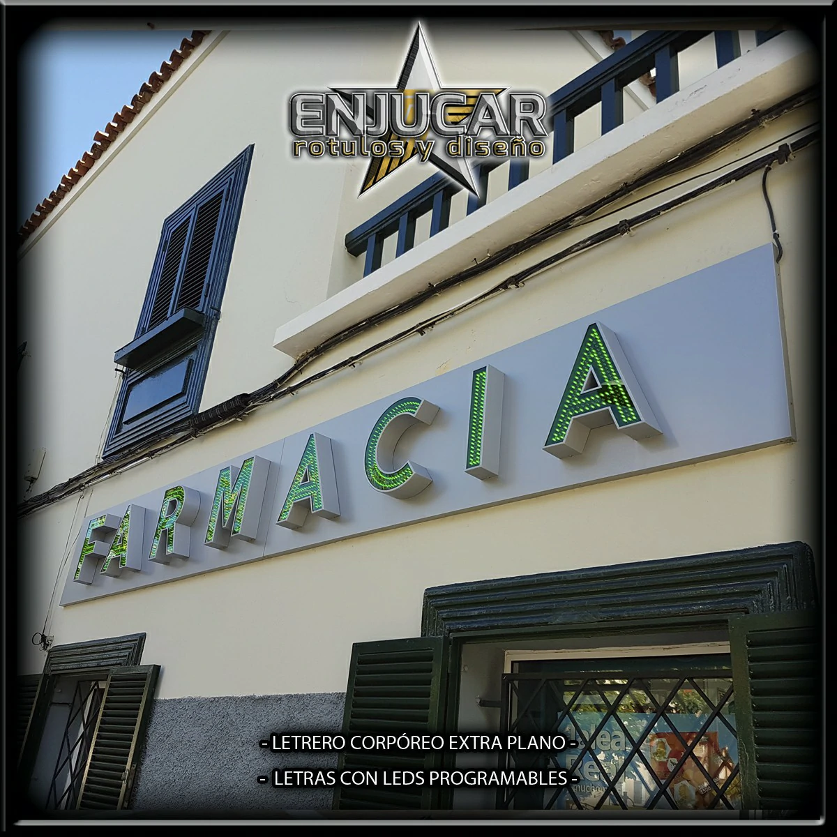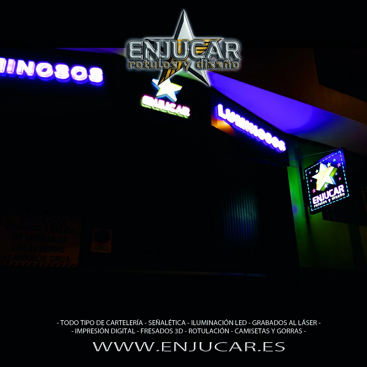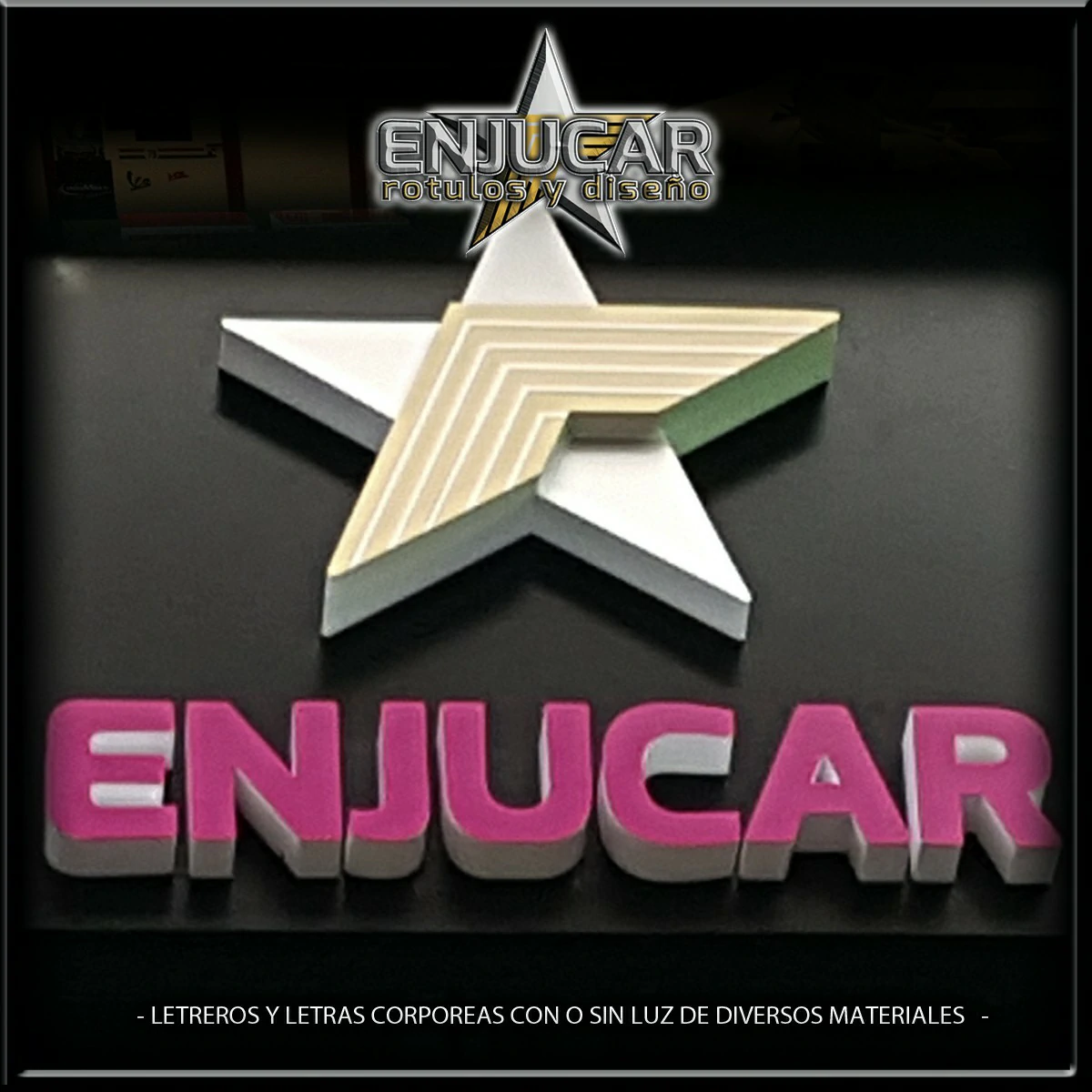 En Rótulos Enjucar damos vida a tu marca con letreros corpóreos con luz, ideales para destacar tanto de día como de noche.