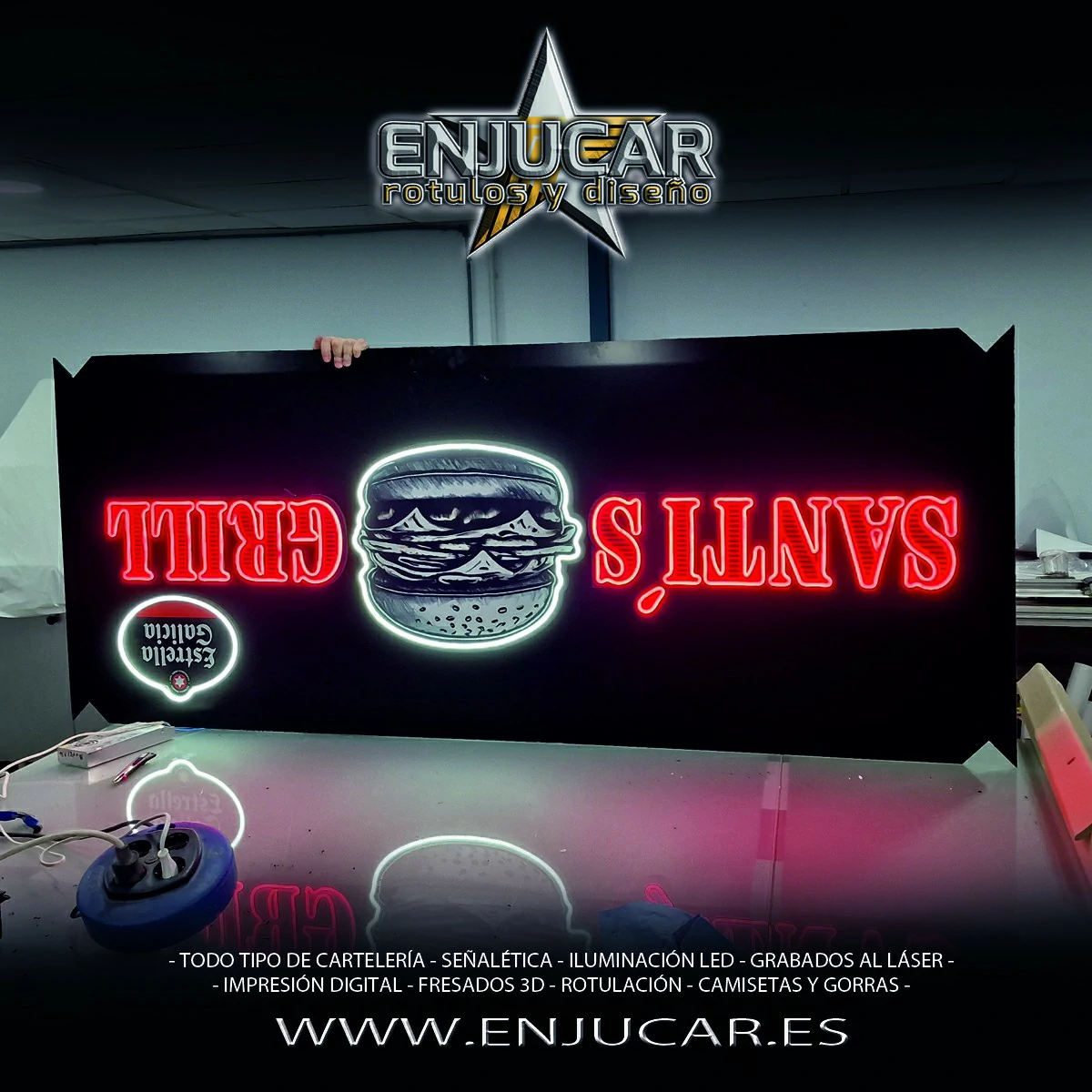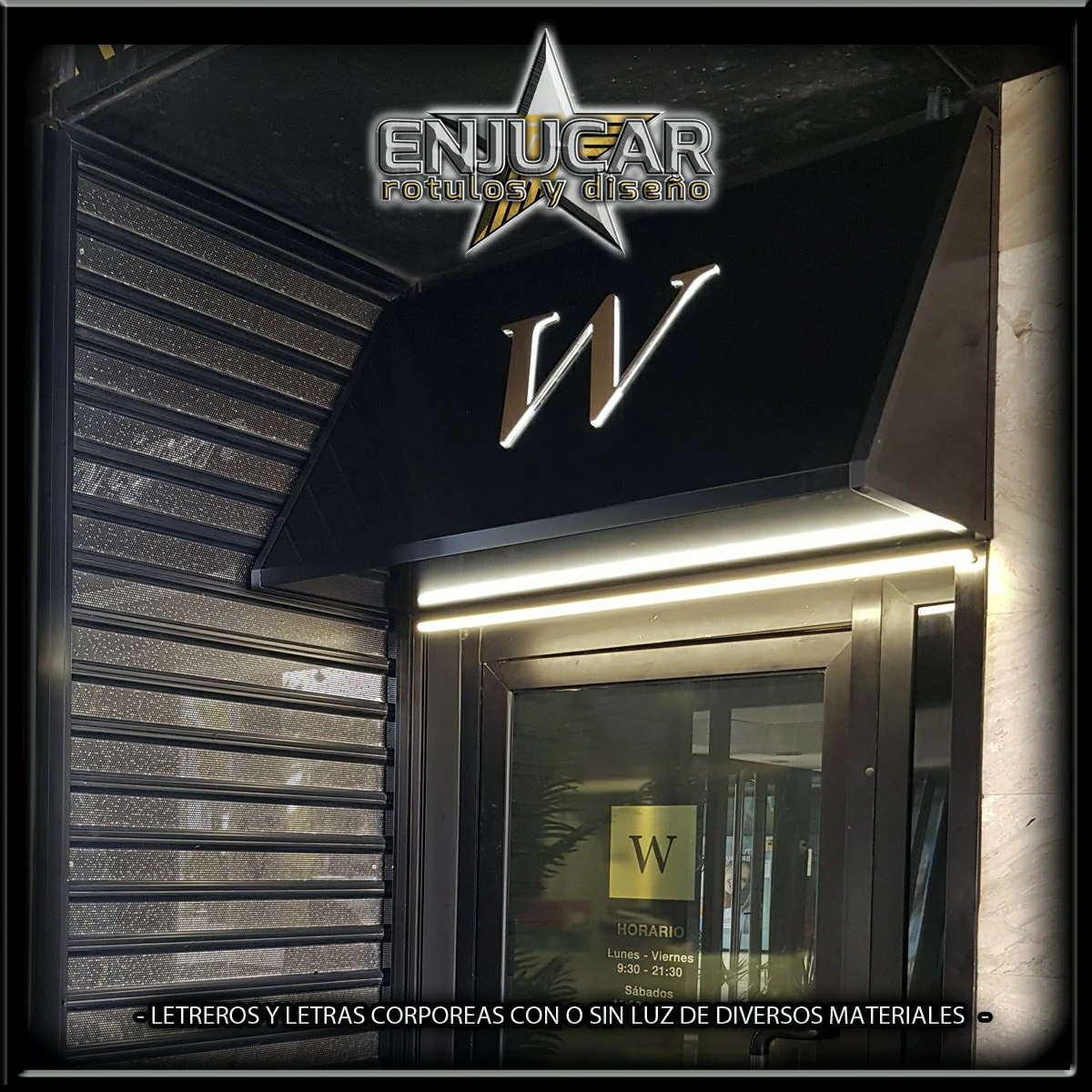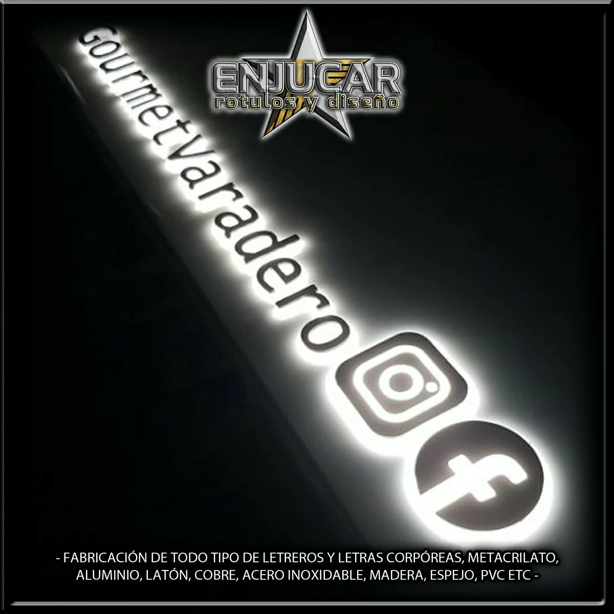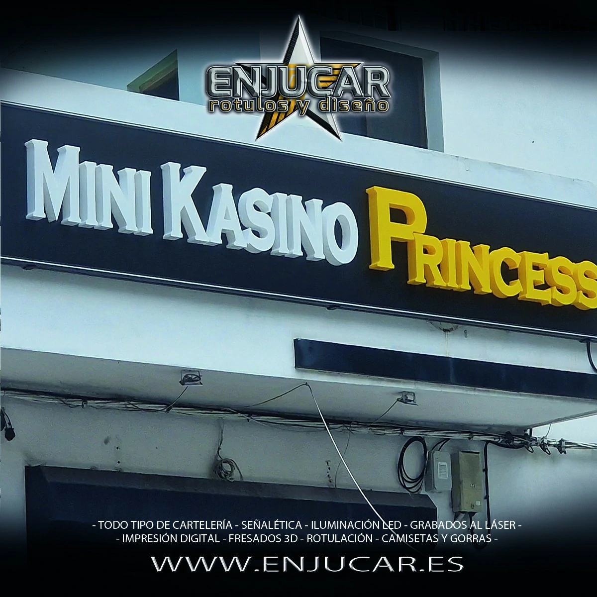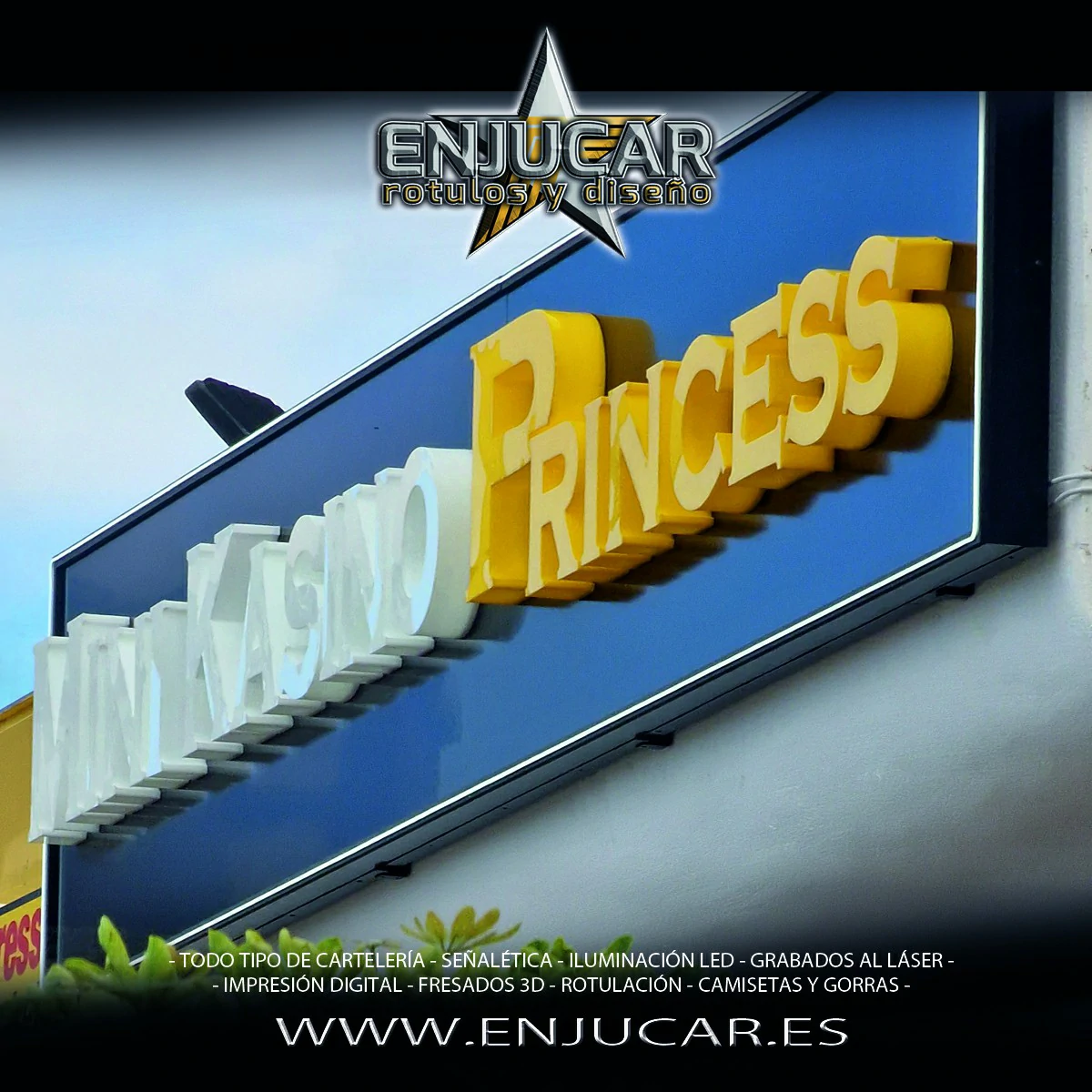 En Rótulos Enjucar damos vida a tu marca con letreros corpóreos con luz, ideales para destacar tanto de día como de noche.