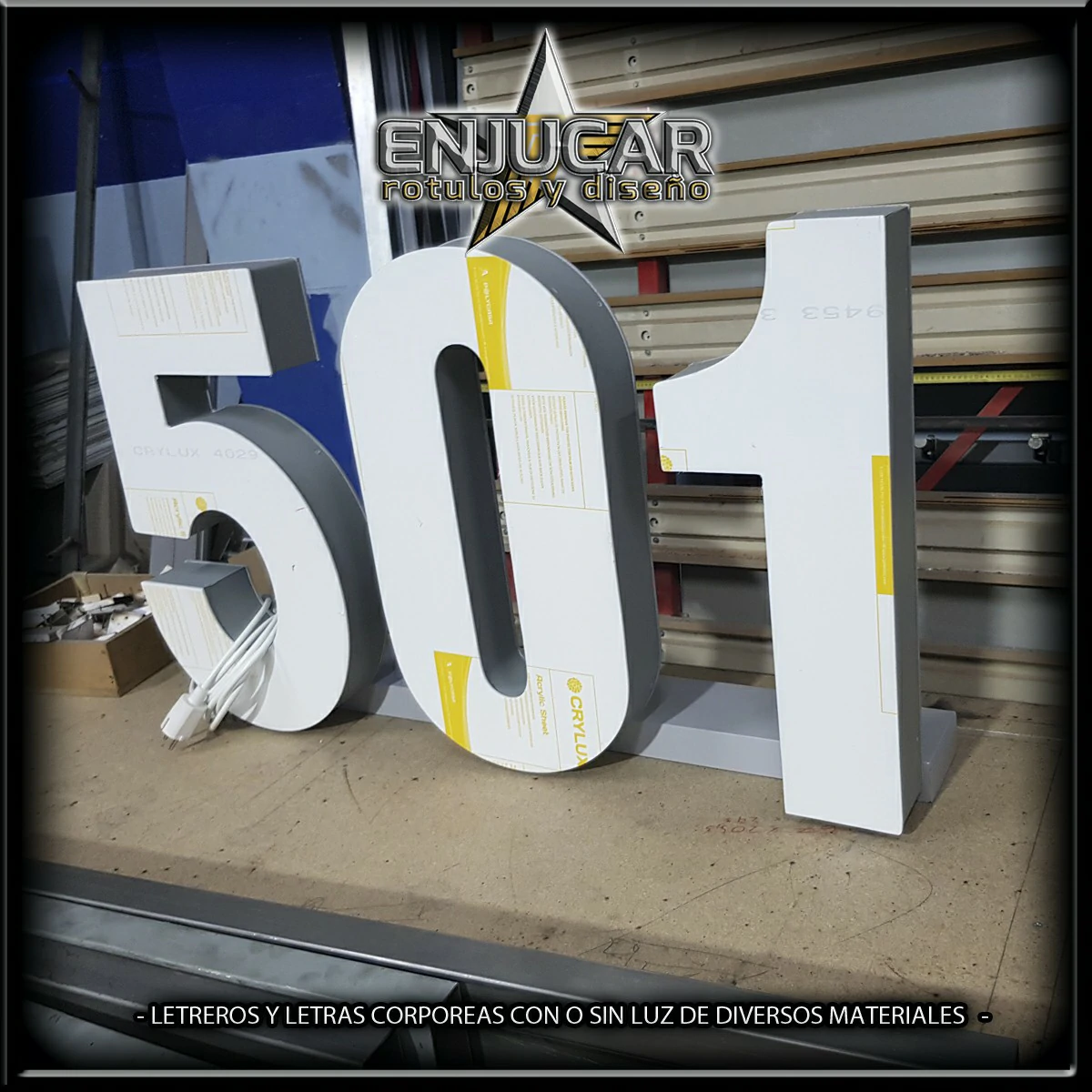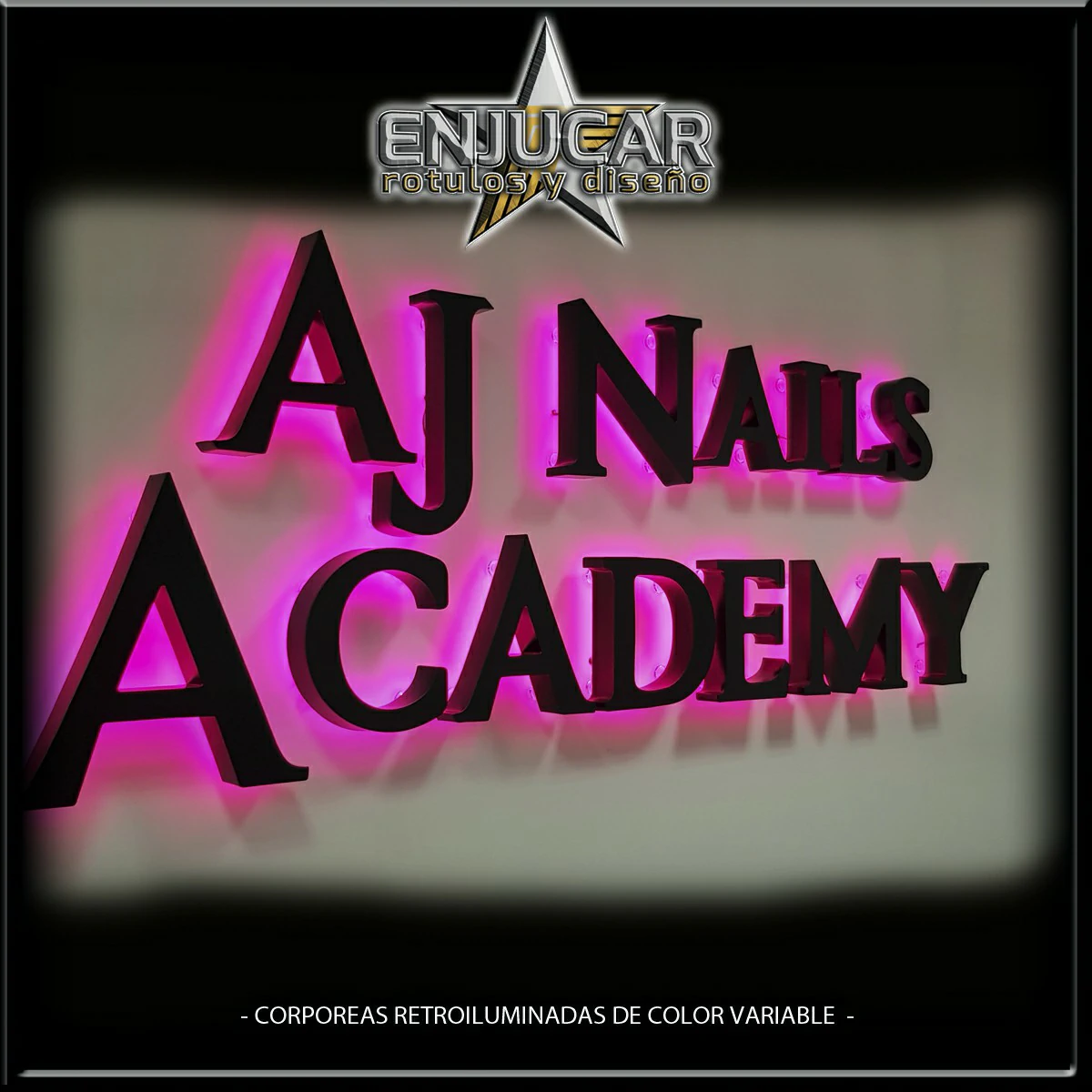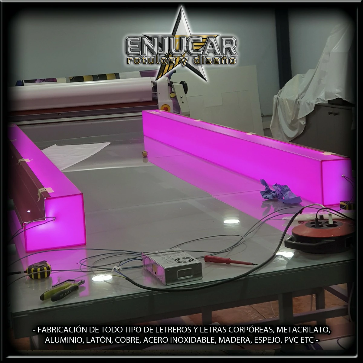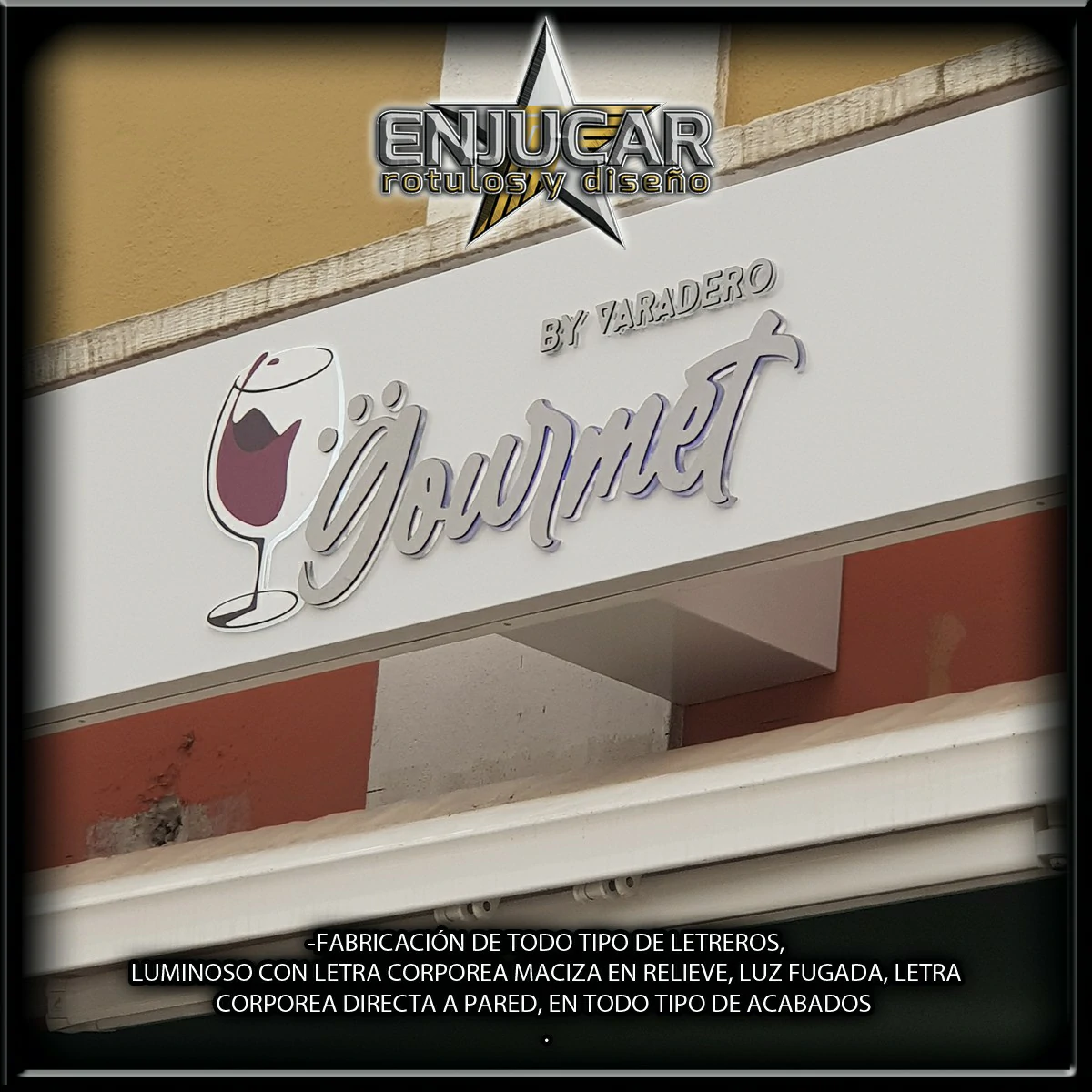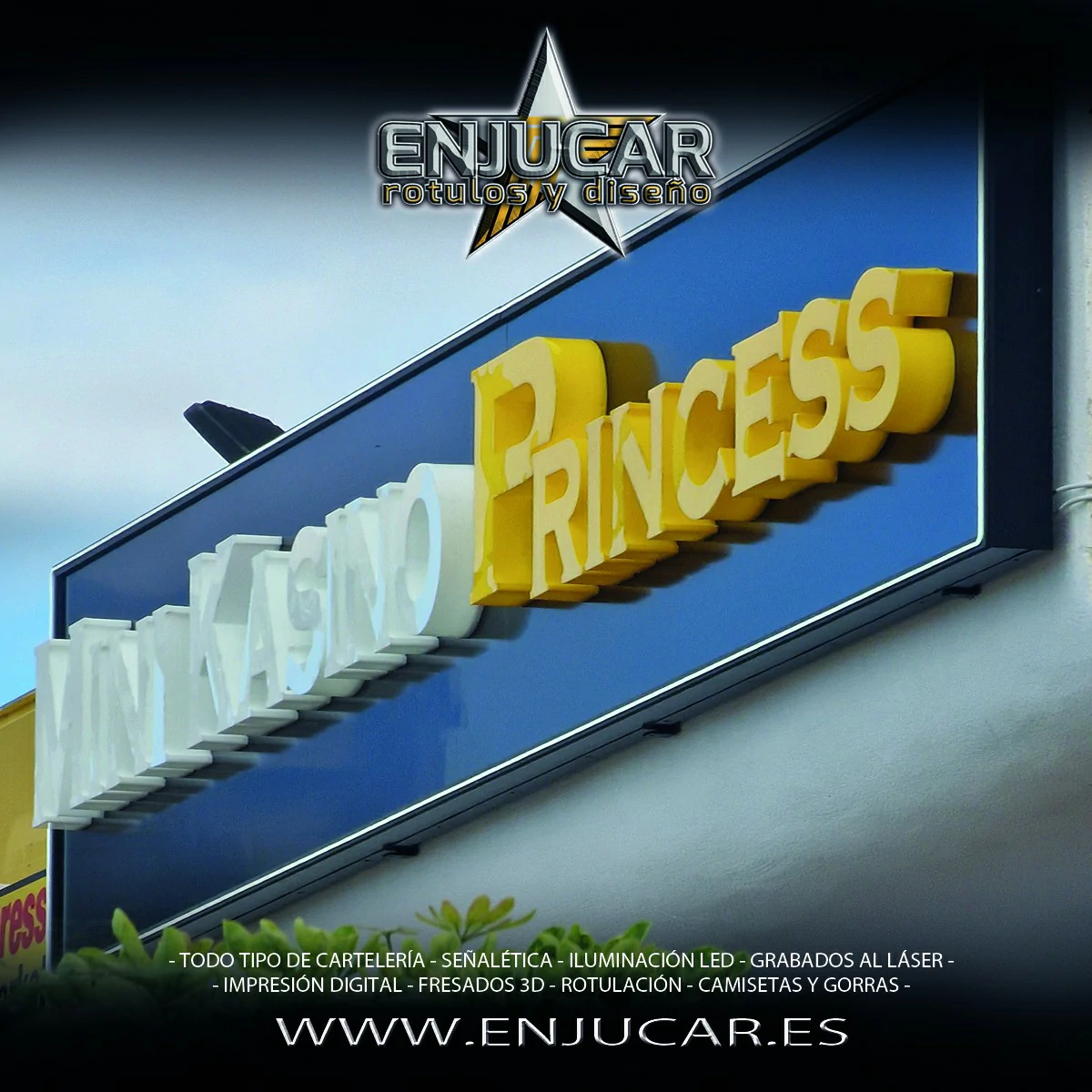 En Rótulos Enjucar damos vida a tu marca con letreros corpóreos con luz, ideales para destacar tanto de día como de noche.