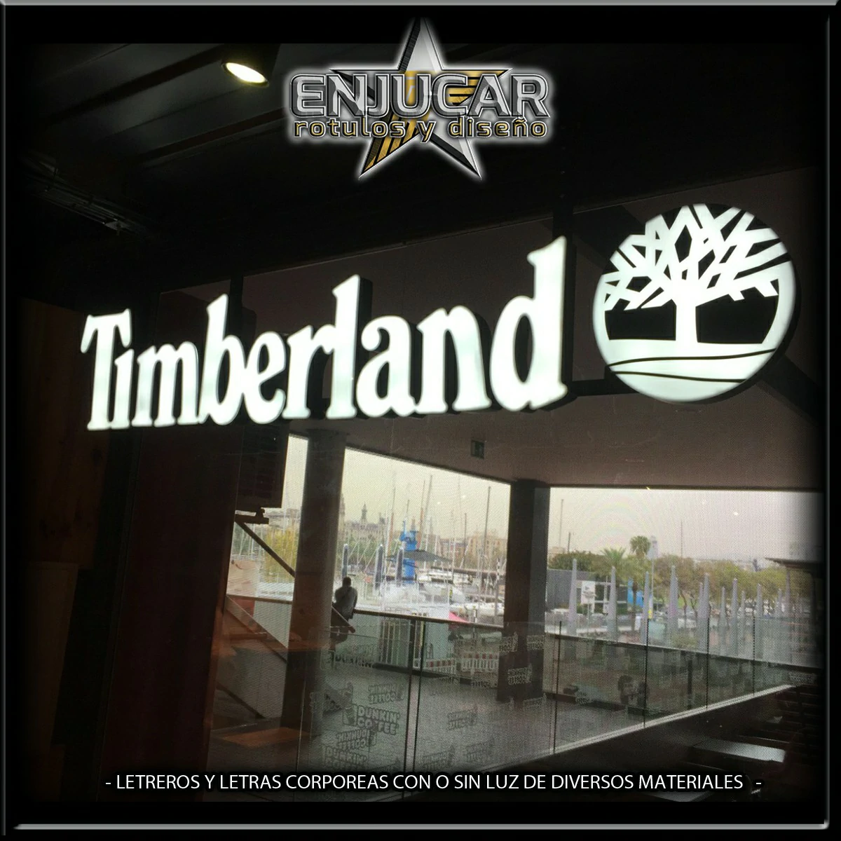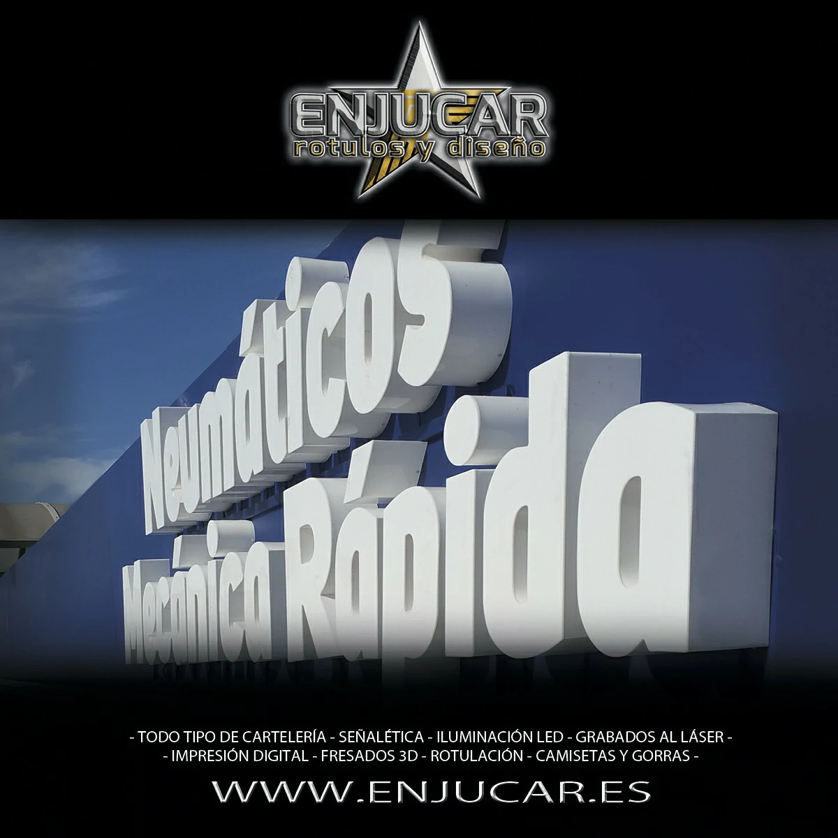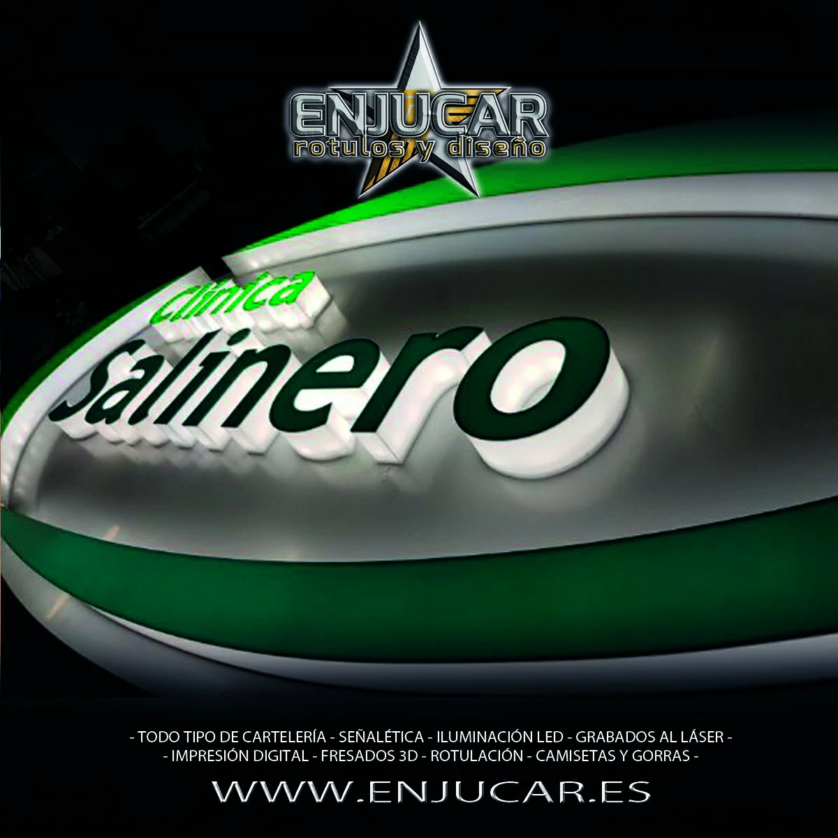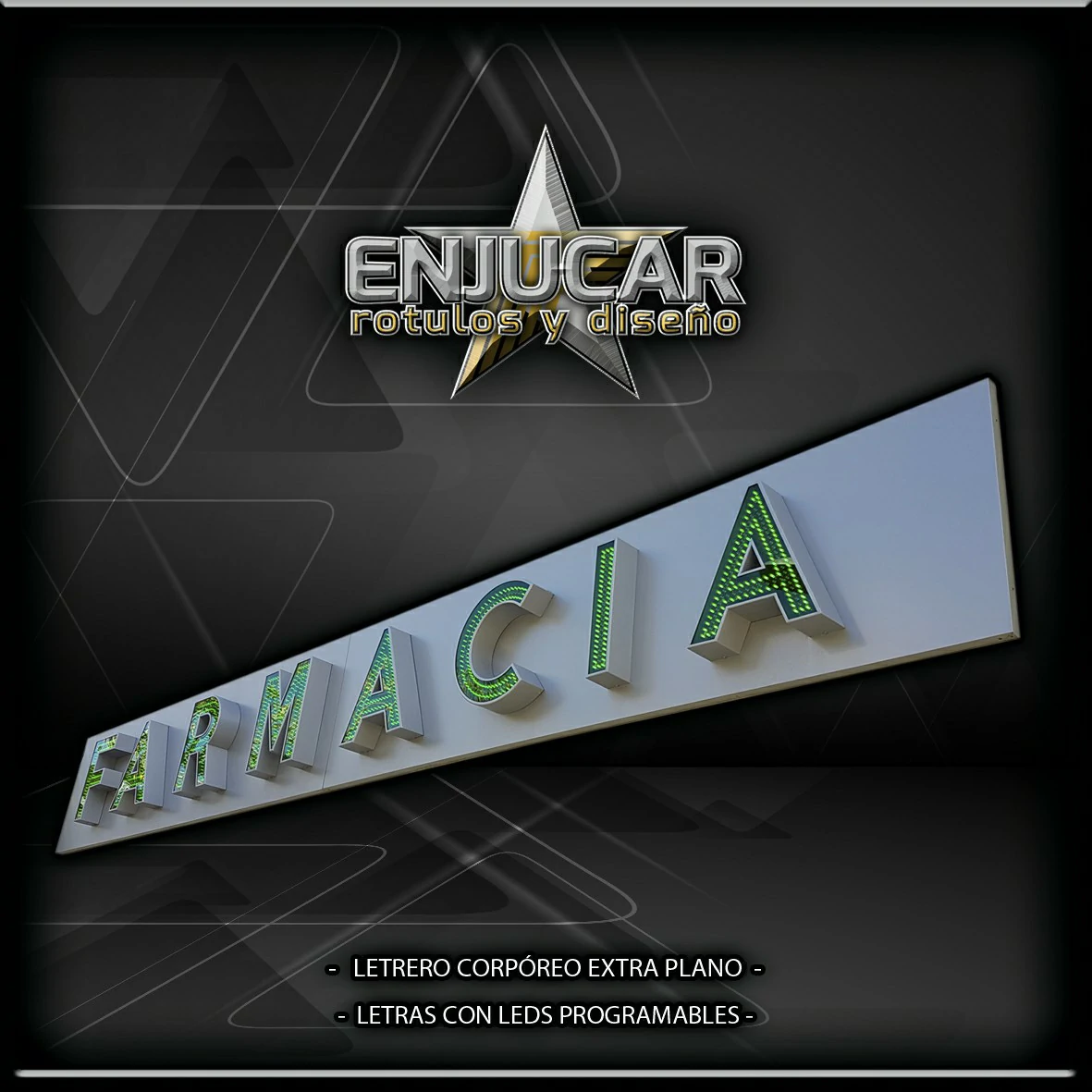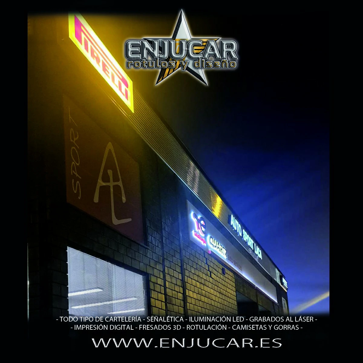 En Rótulos Enjucar damos vida a tu marca con letreros corpóreos con luz, ideales para destacar tanto de día como de noche.