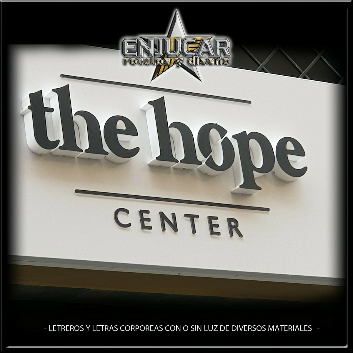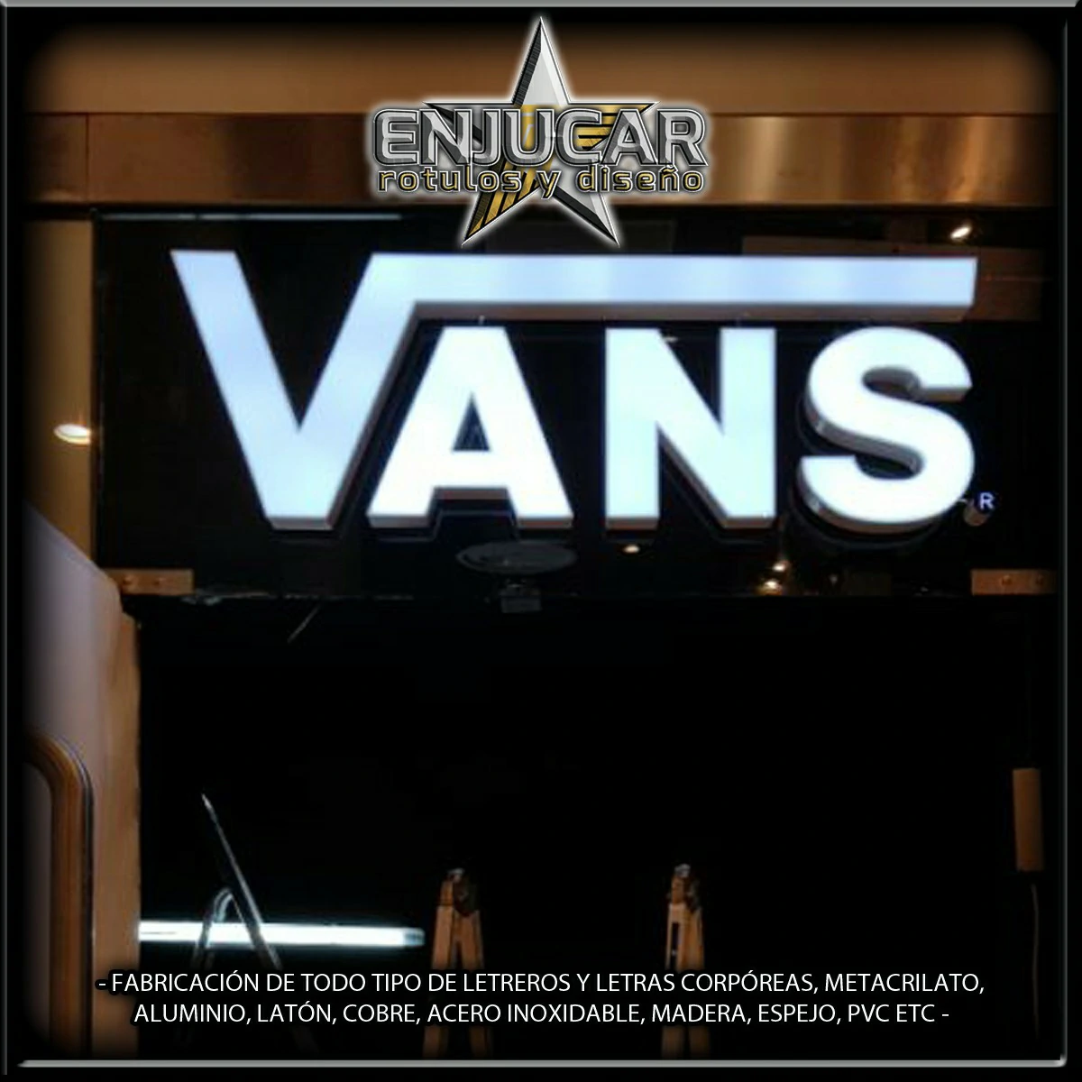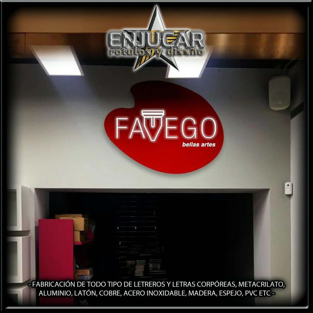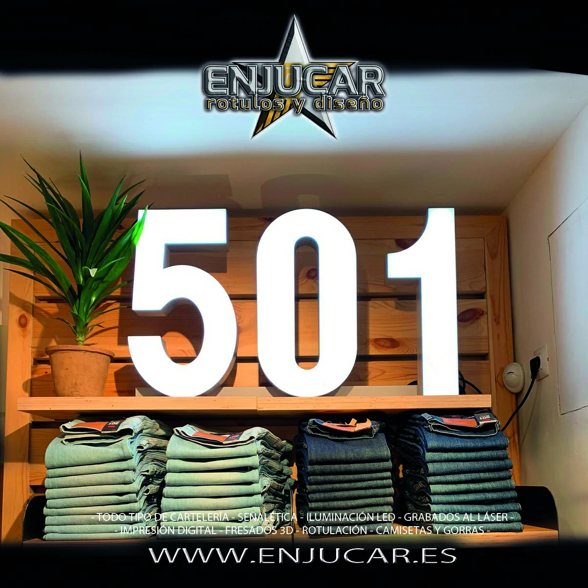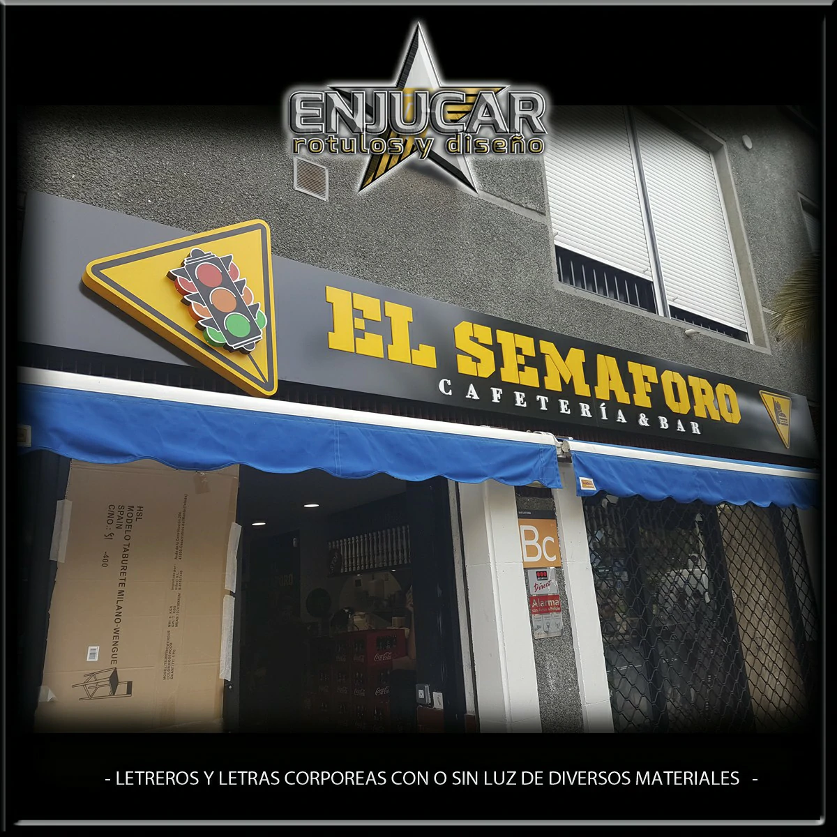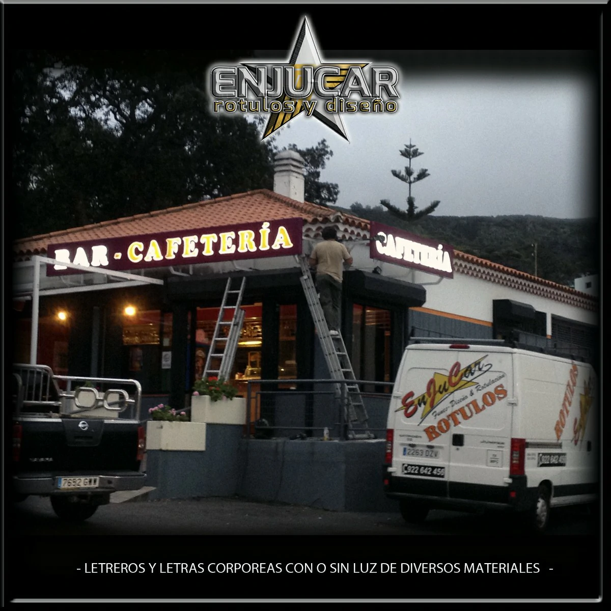 En Rótulos Enjucar damos vida a tu marca con letreros corpóreos con luz, ideales para destacar tanto de día como de noche.