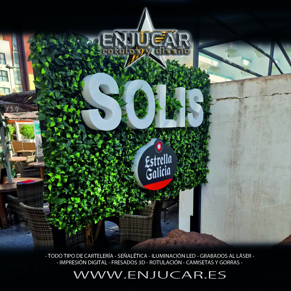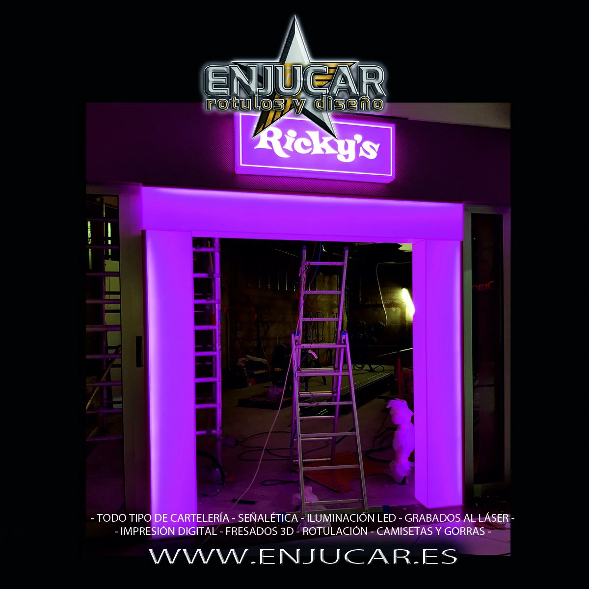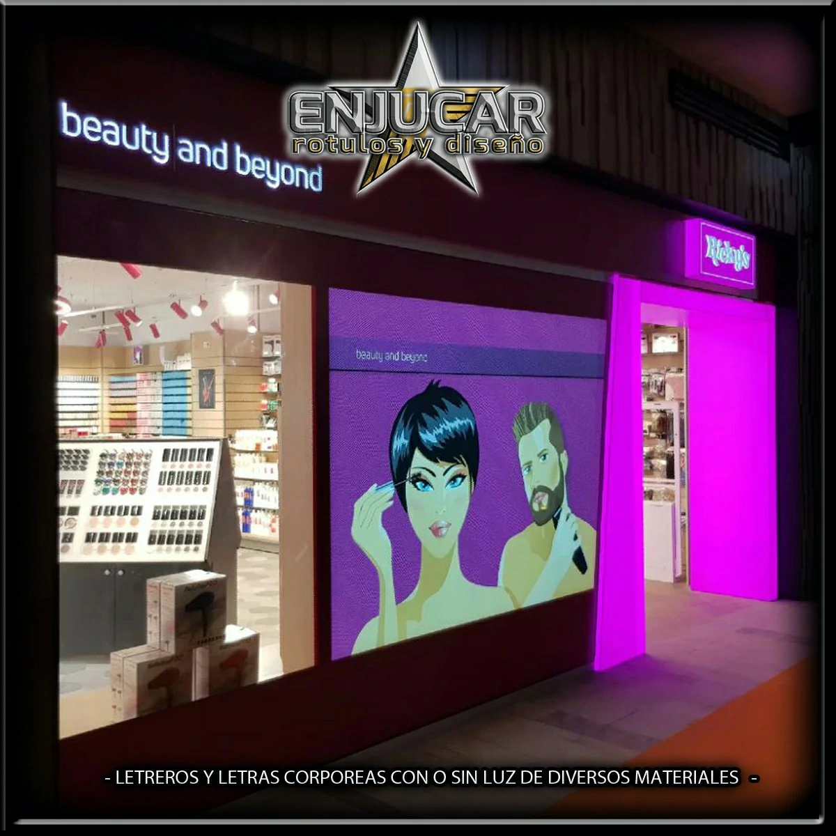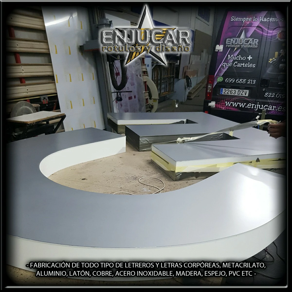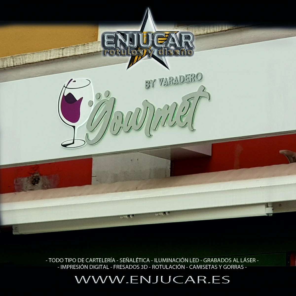 En Rótulos Enjucar damos vida a tu marca con letreros corpóreos con luz, ideales para destacar tanto de día como de noche.