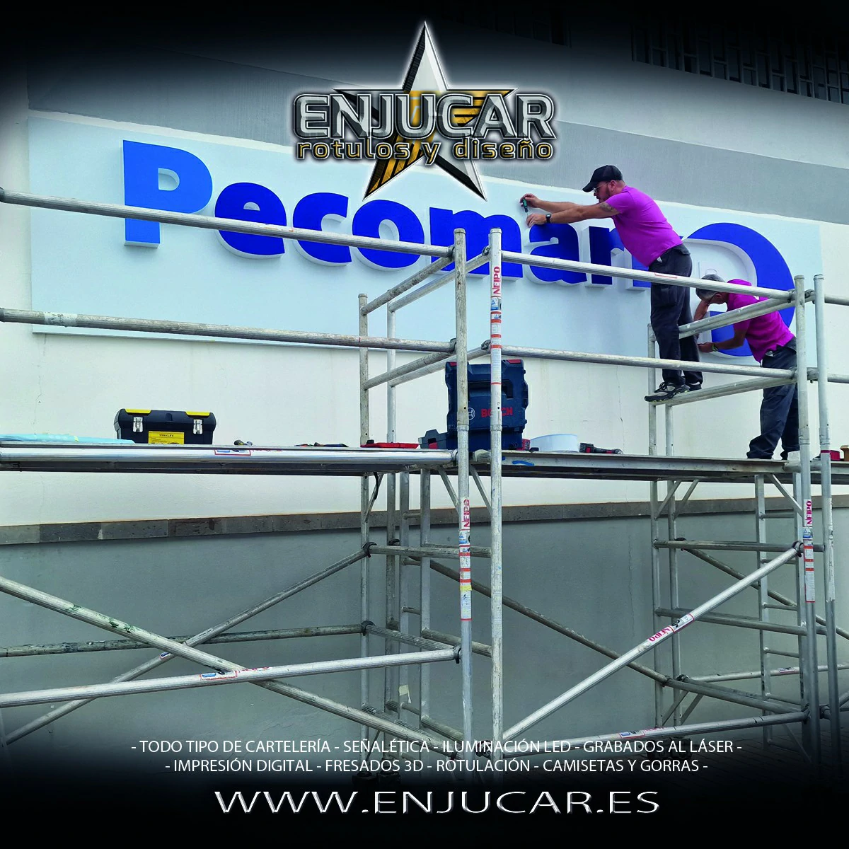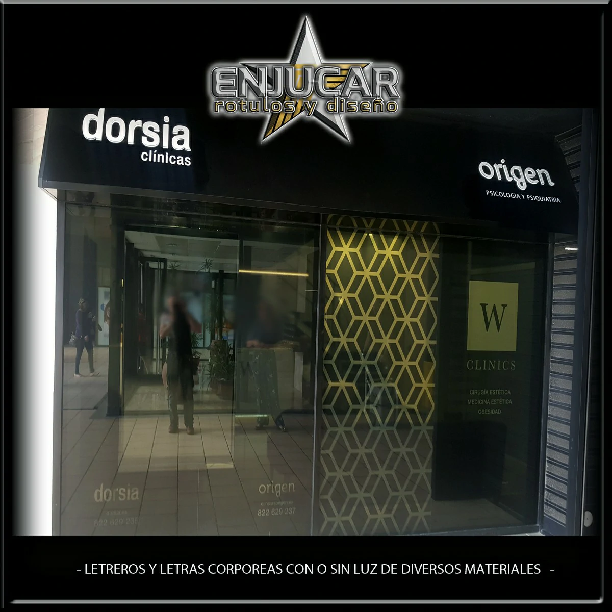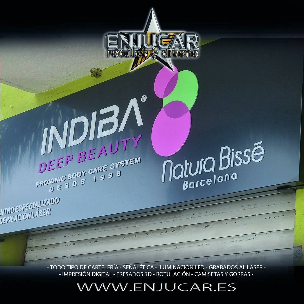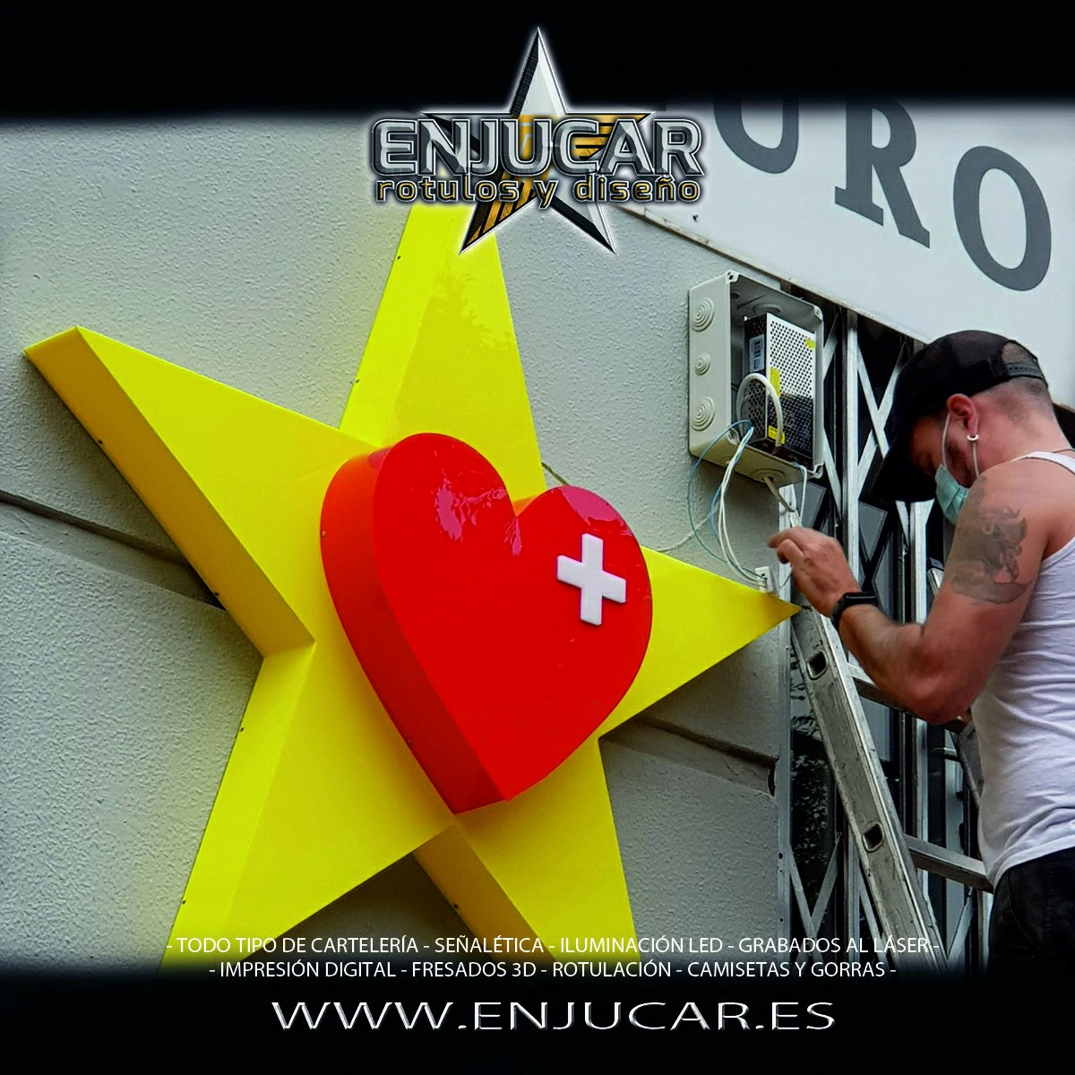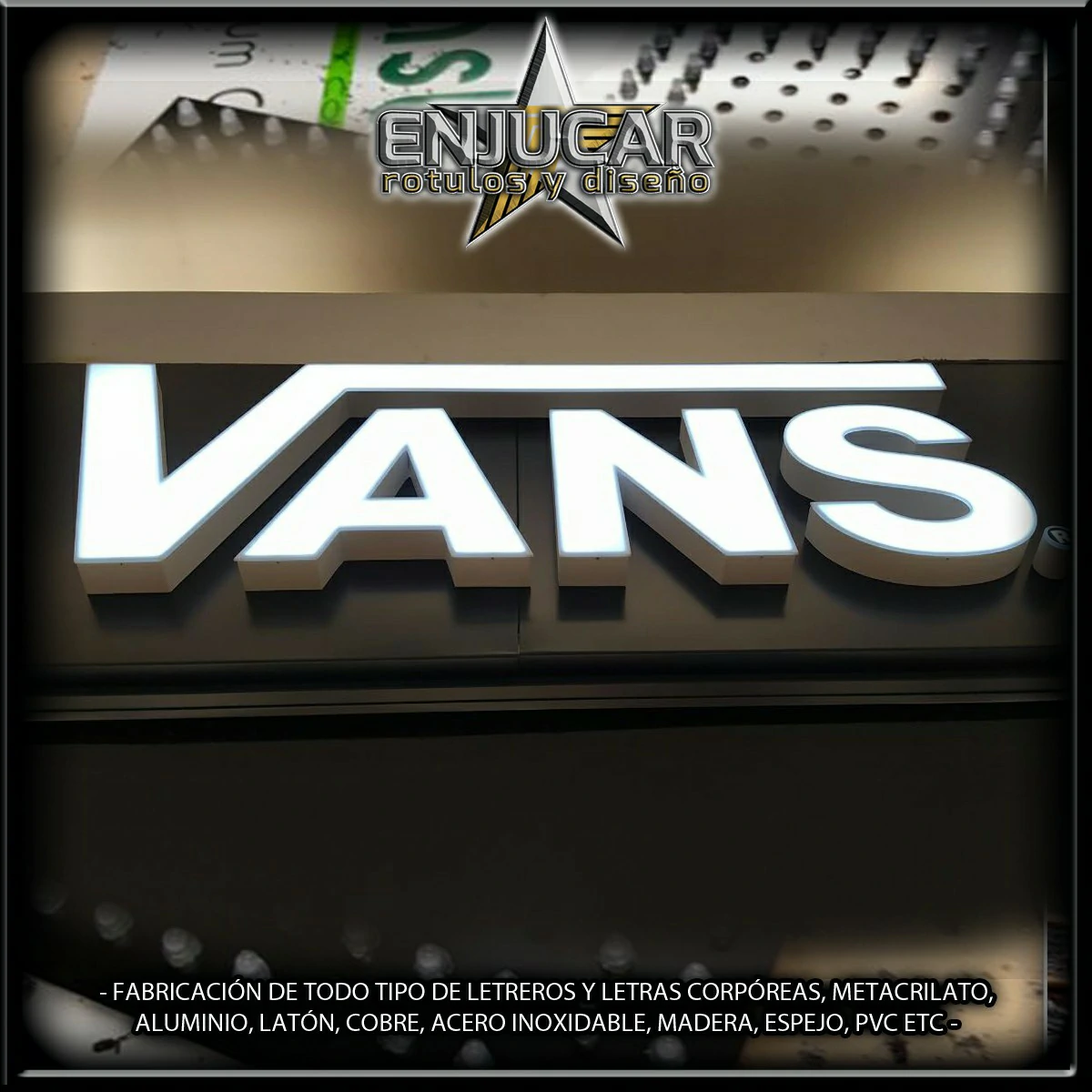 En Rótulos Enjucar damos vida a tu marca con letreros corpóreos con luz, ideales para destacar tanto de día como de noche.