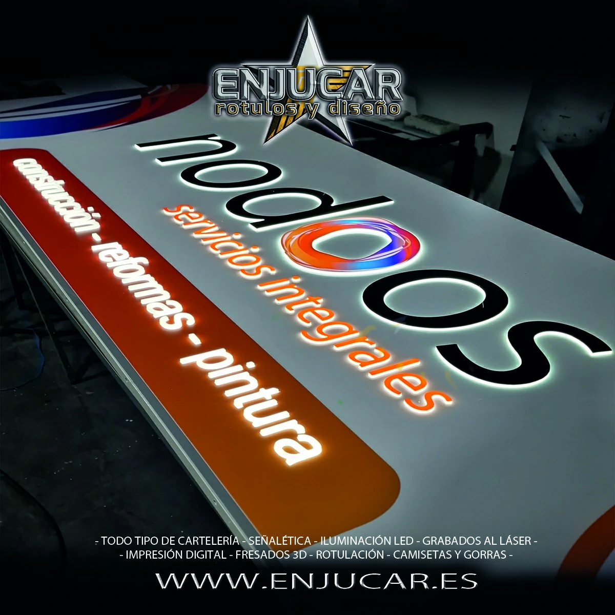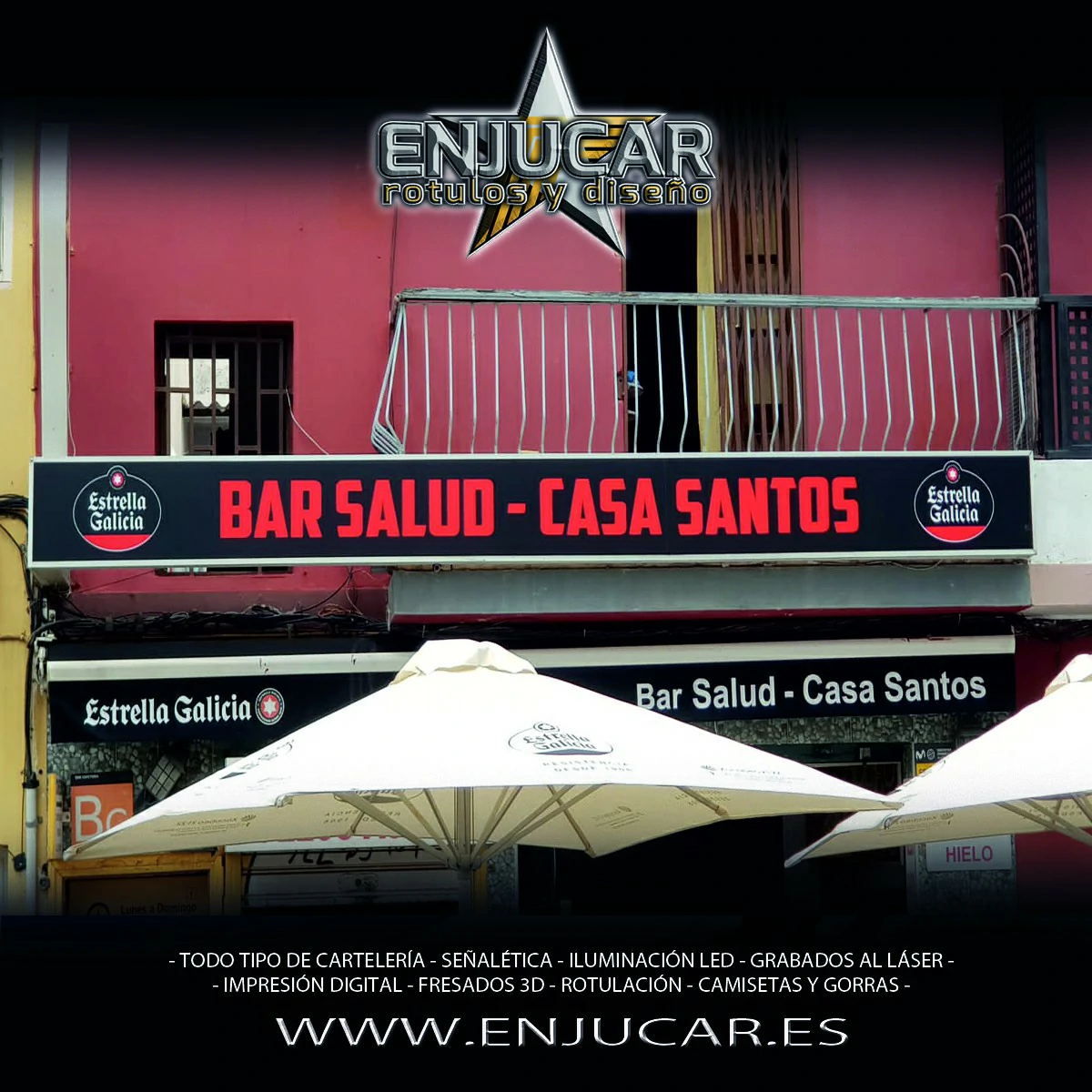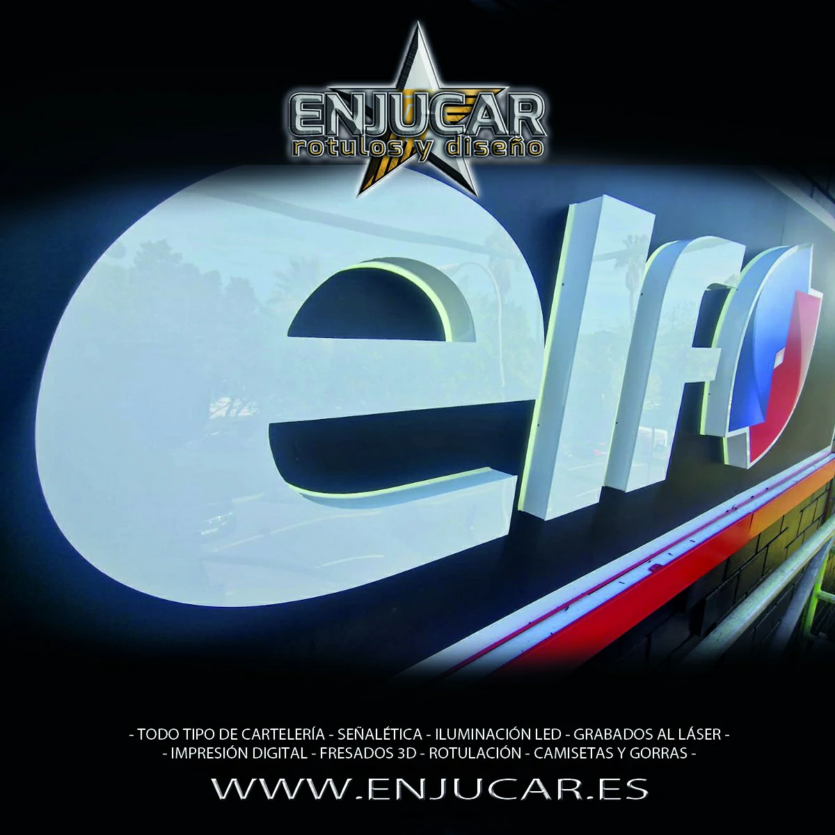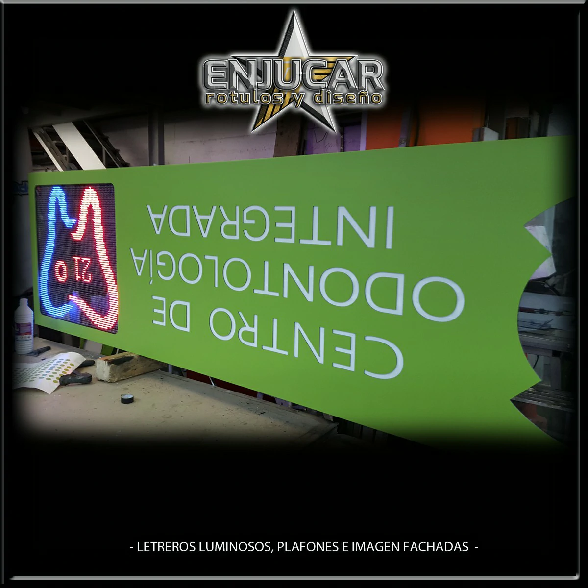 En Rótulos Enjucar diseñamos y fabricamos letreros luminosos que garantizan máxima visibilidad, de día y de noche.