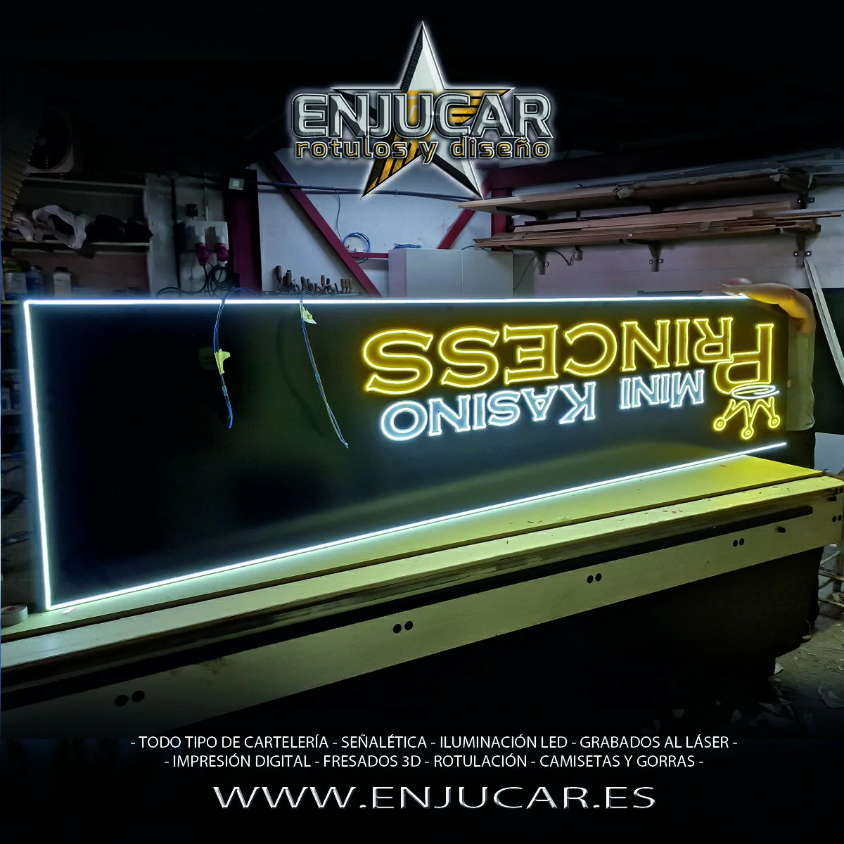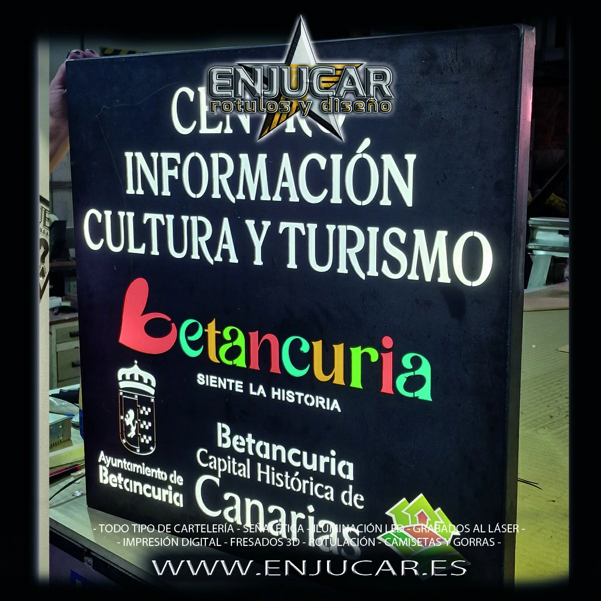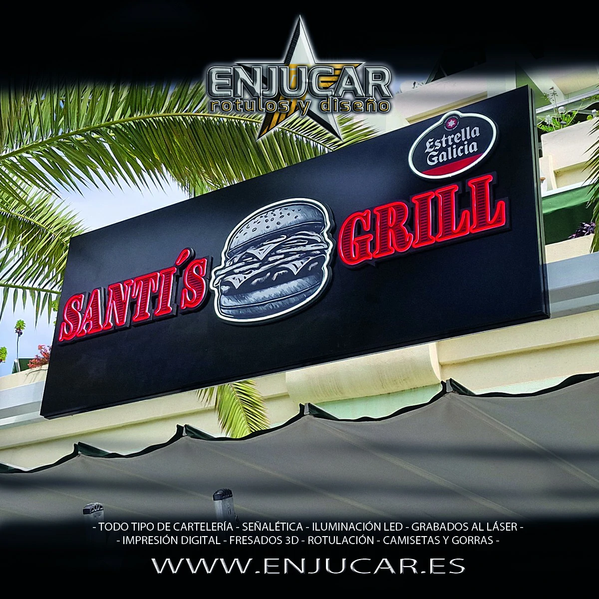 En Rótulos Enjucar diseñamos y fabricamos letreros luminosos que garantizan máxima visibilidad, de día y de noche.
