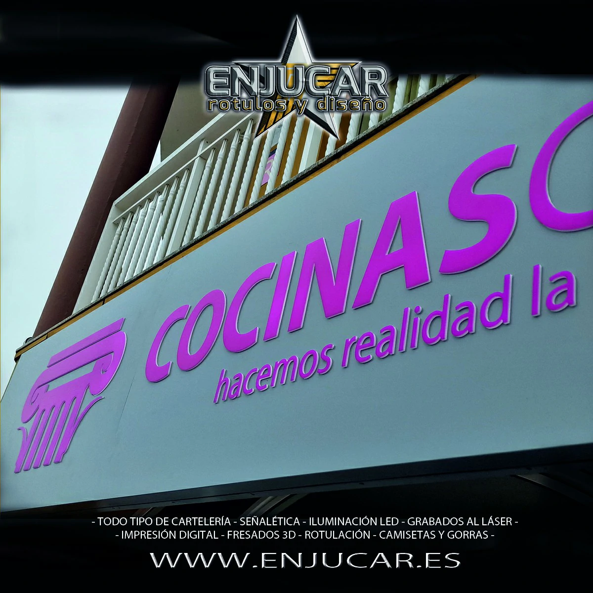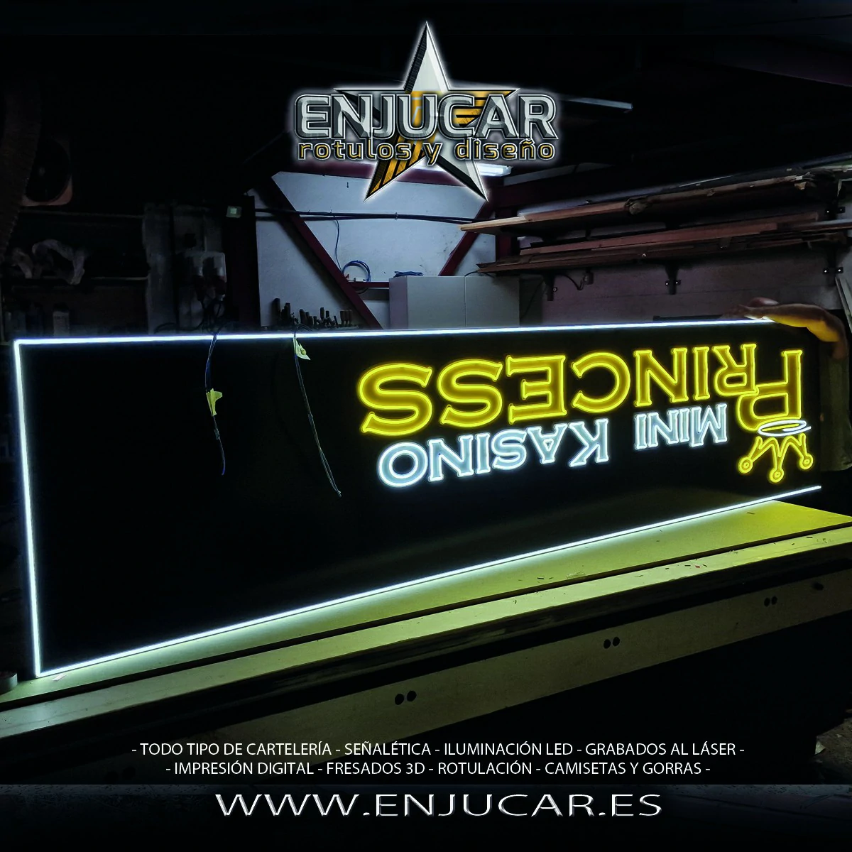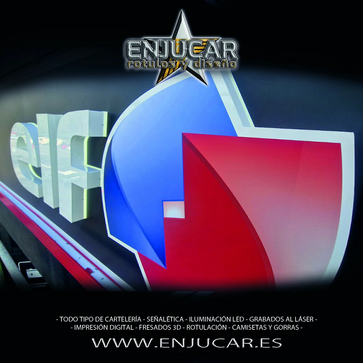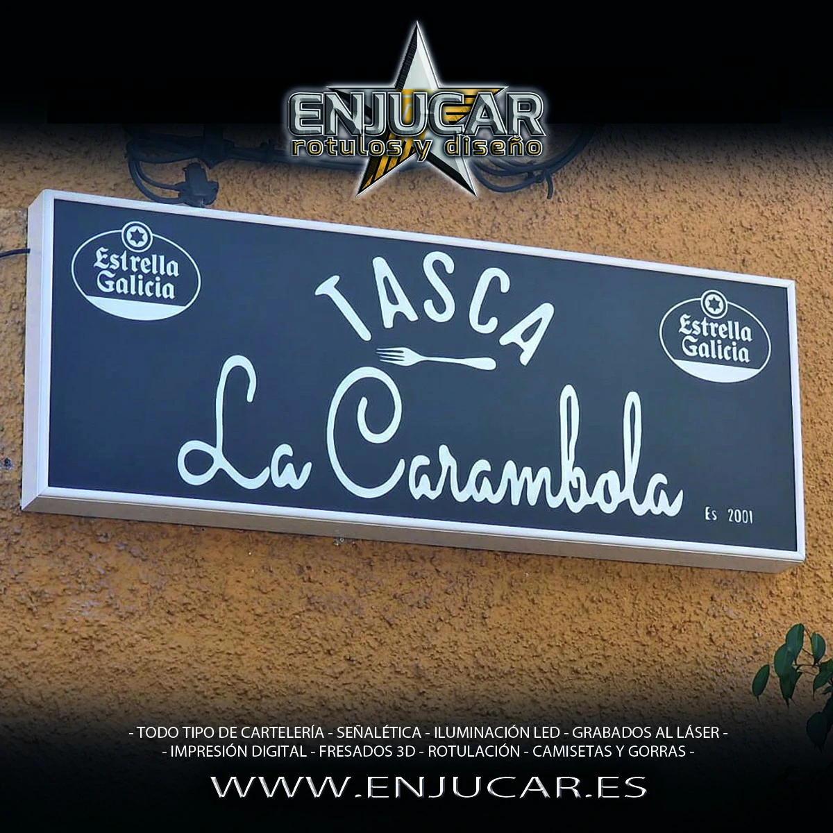 En Rótulos Enjucar diseñamos y fabricamos letreros luminosos que garantizan máxima visibilidad, de día y de noche.