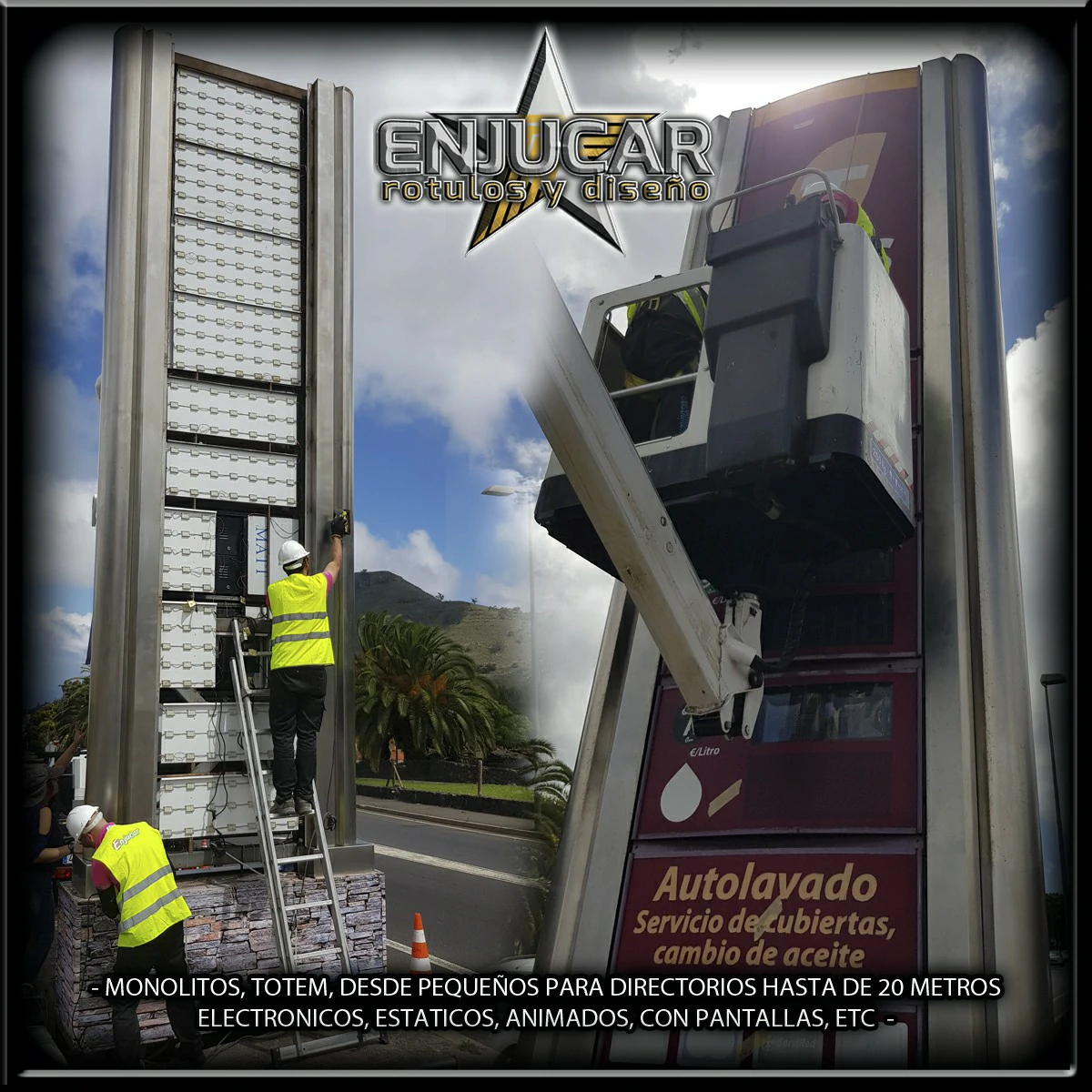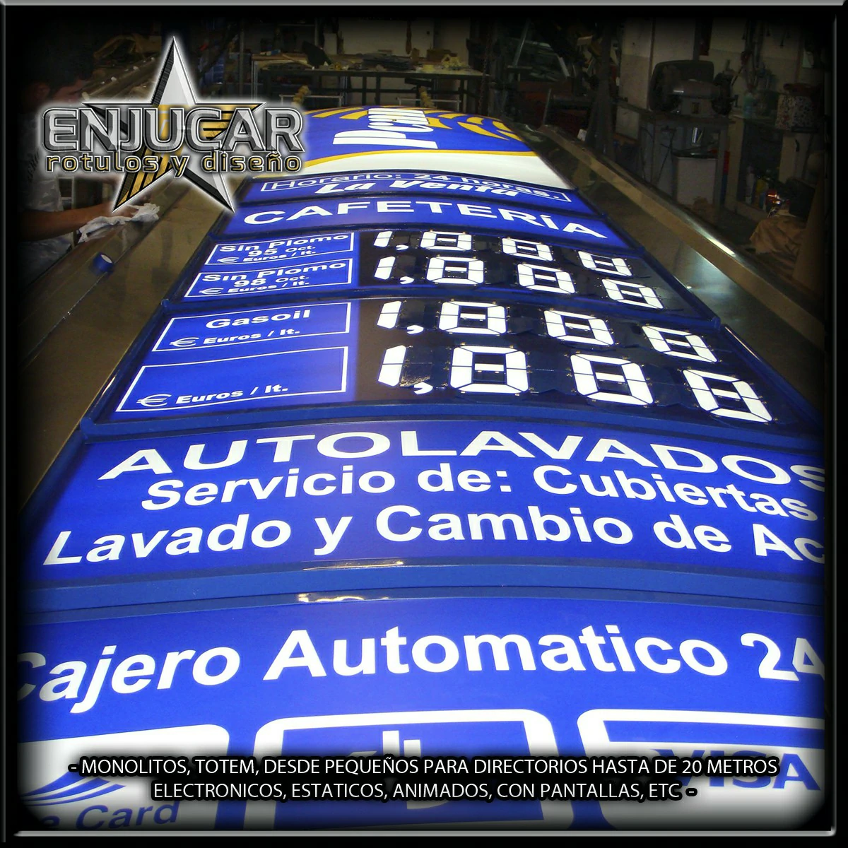 Diseñamos y producimos monolitos de gran tamaño para publicidad, marcas y estaciones de servicio.