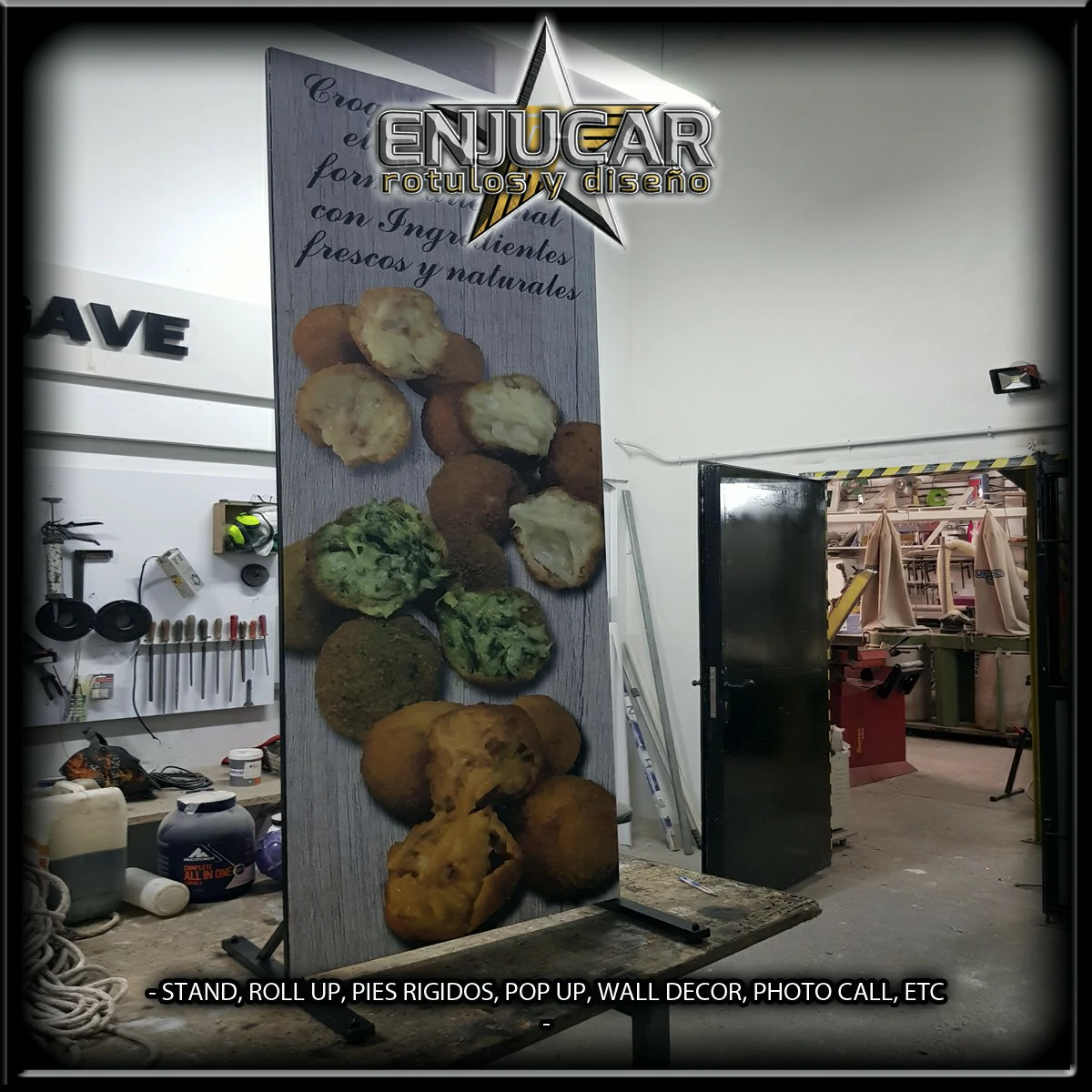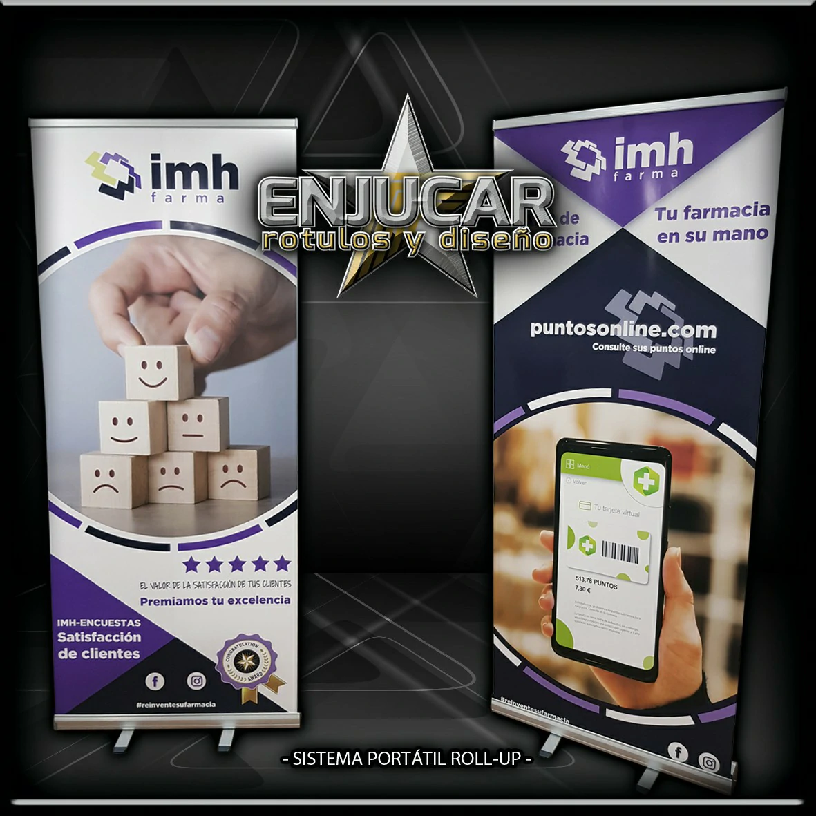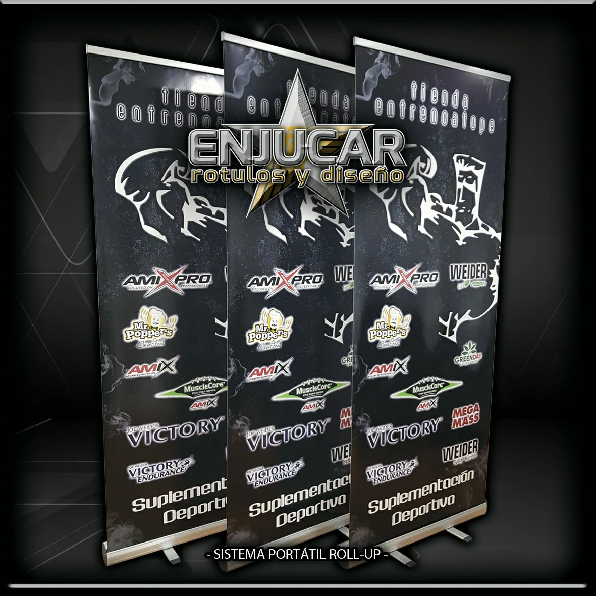 Ofrecemos desde banners, photocalls y pop ups, hasta roll ups, mostradores plegables para ferias, pies promocionales, caballetes, stands, enrollables, stores, cortinas, mamparas y divisiones.