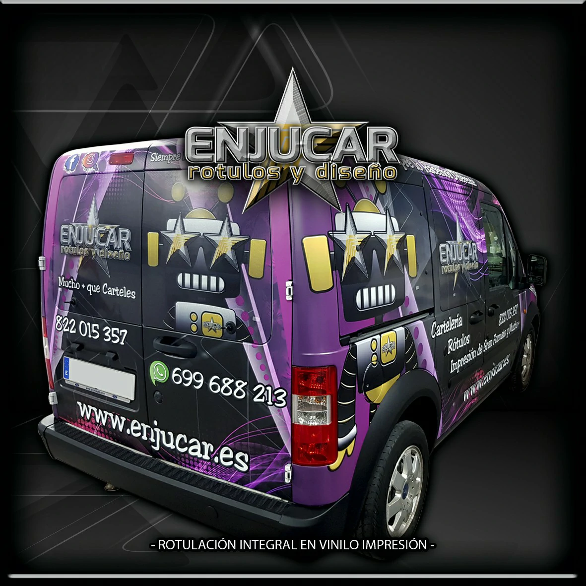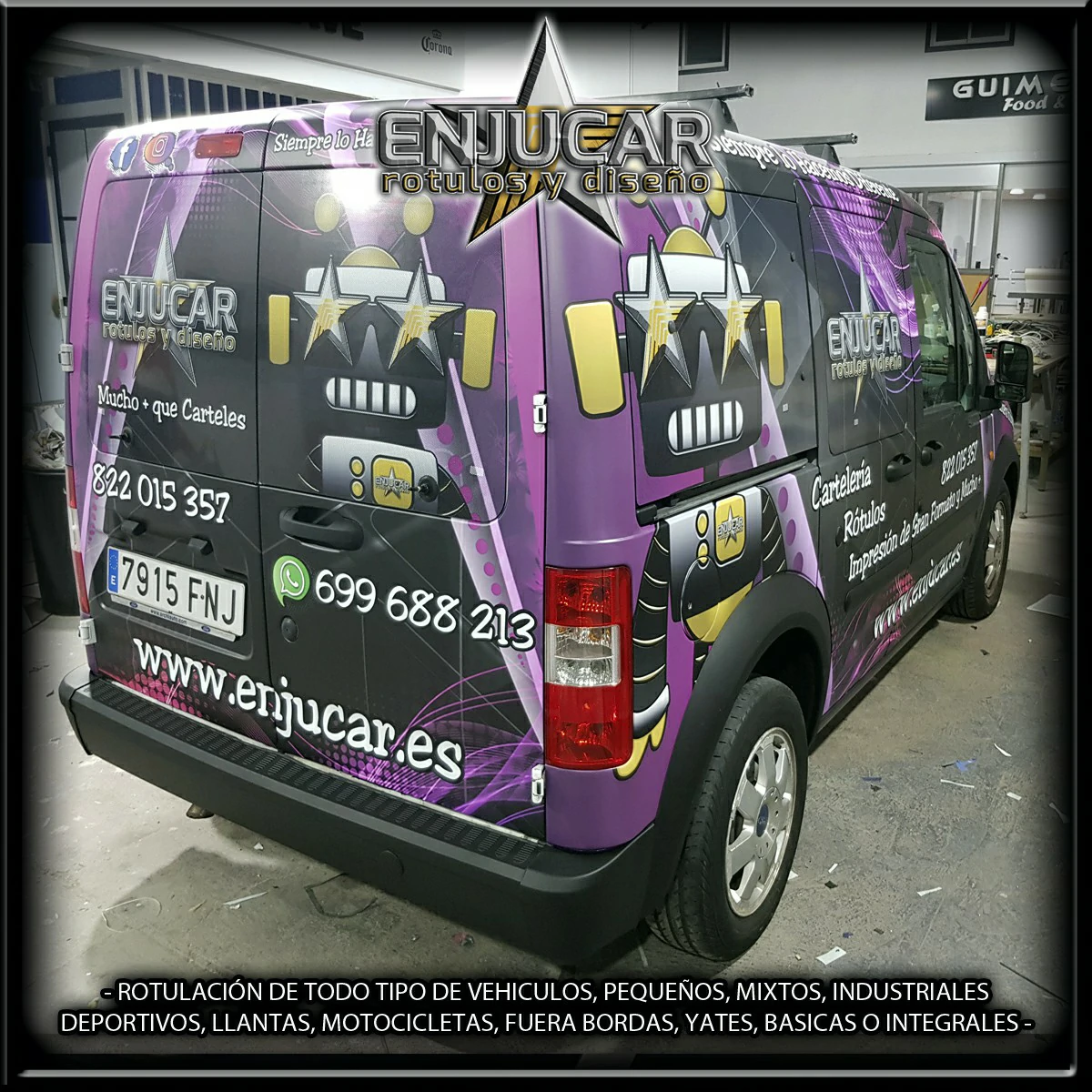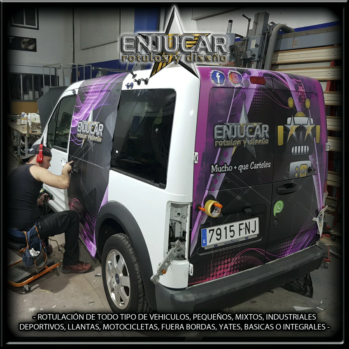 En Enjucar llevamos a cabo cualquier tipo de rotulación de vehículos, tanto básicos como mixtos o industriales de alto tonelaje, con un amplio abanico de materiales, utilizando el adecuado para cada caso.