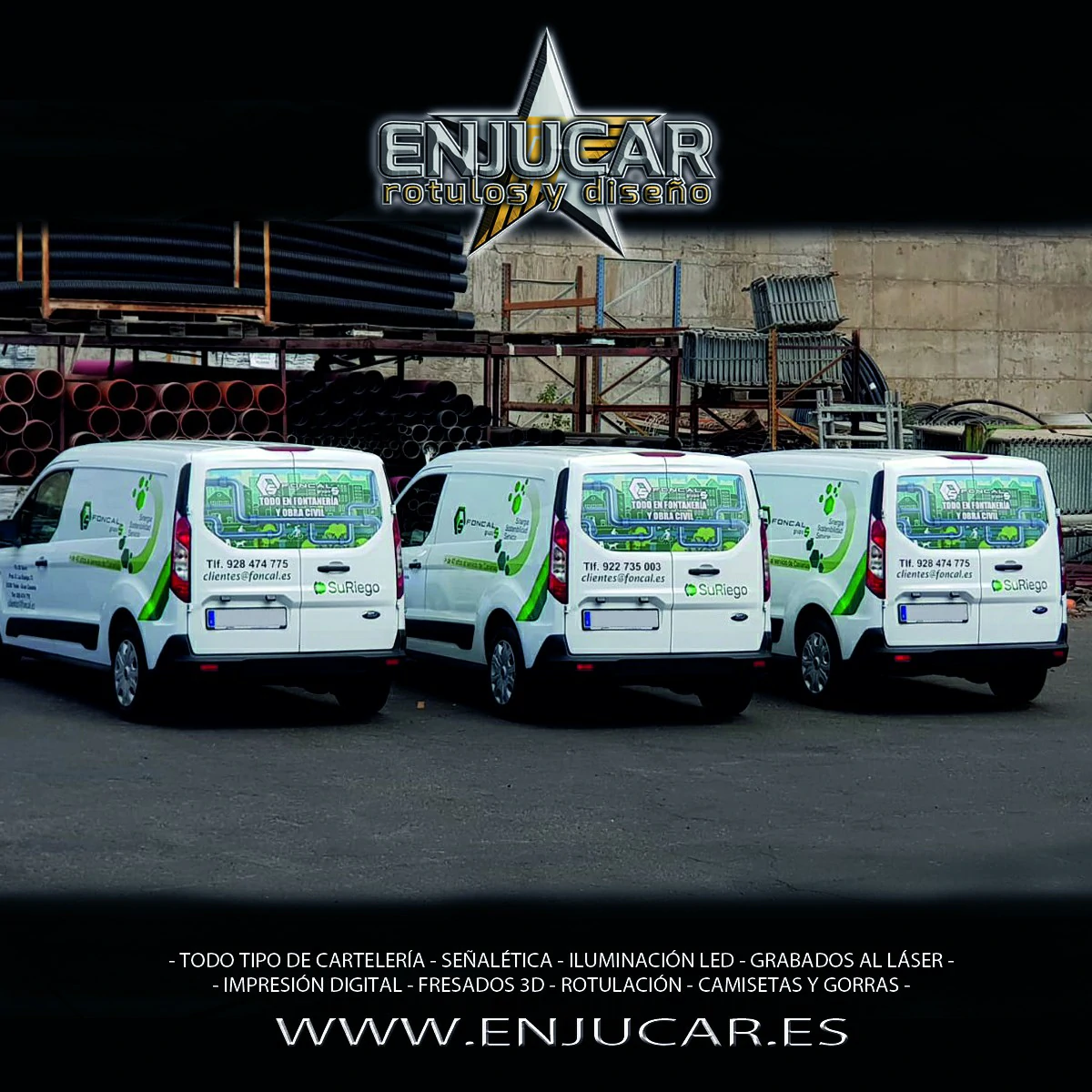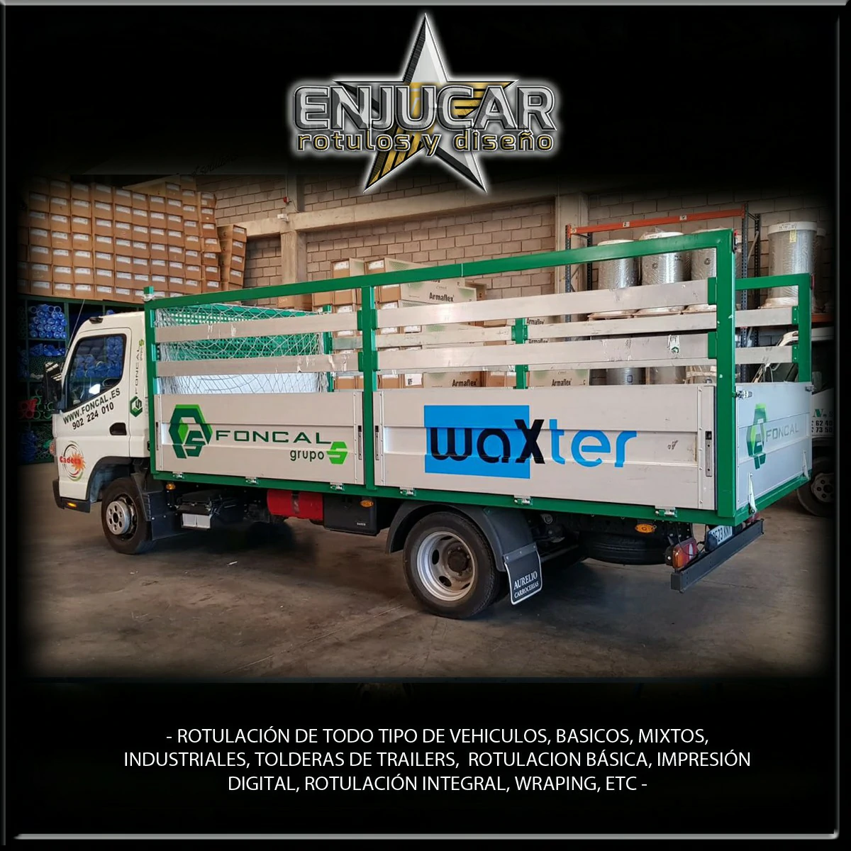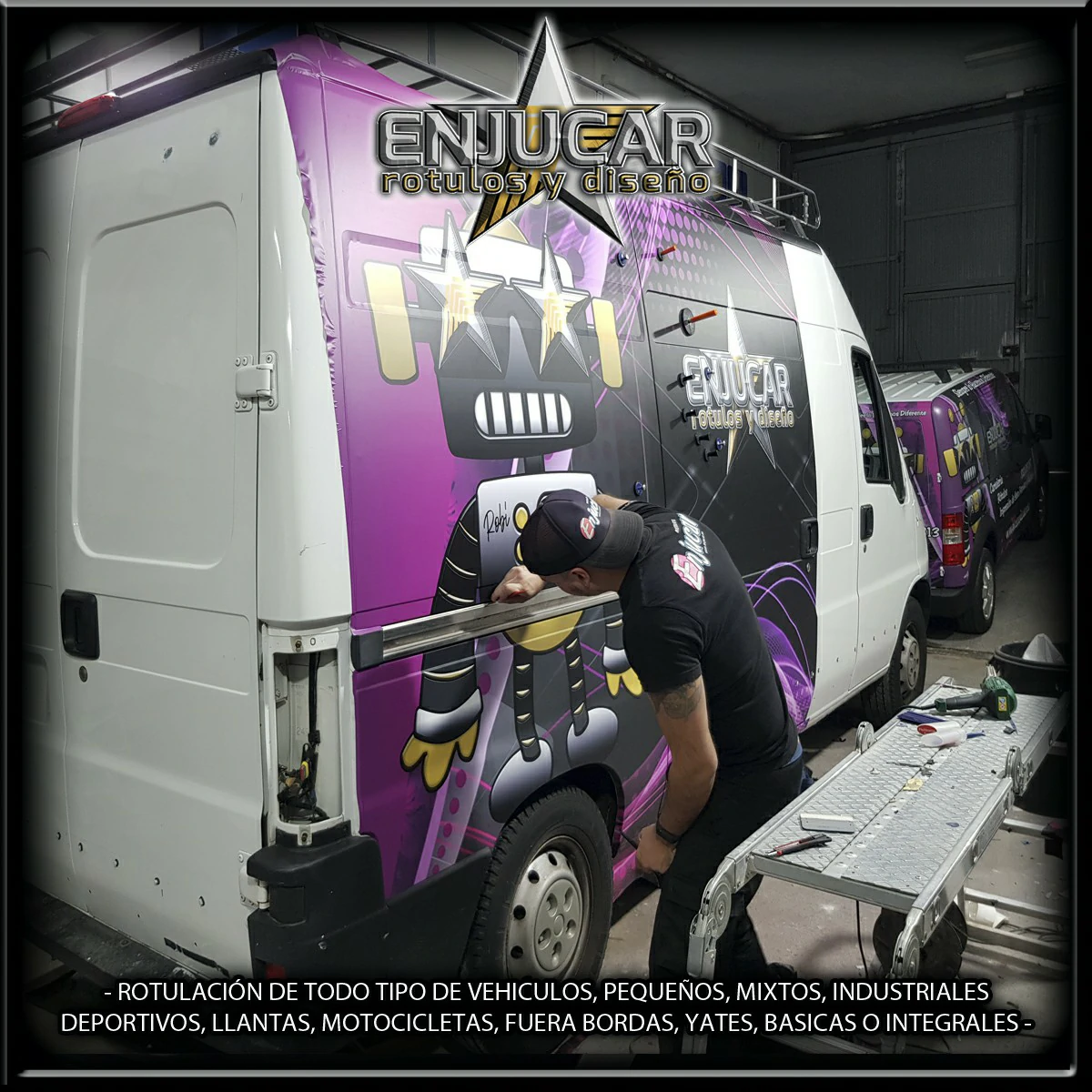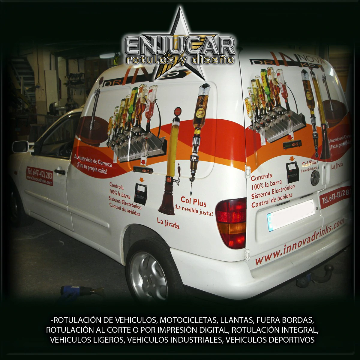 En Enjucar llevamos a cabo cualquier tipo de rotulación de vehículos, tanto básicos como mixtos o industriales de alto tonelaje, con un amplio abanico de materiales, utilizando el adecuado para cada caso.