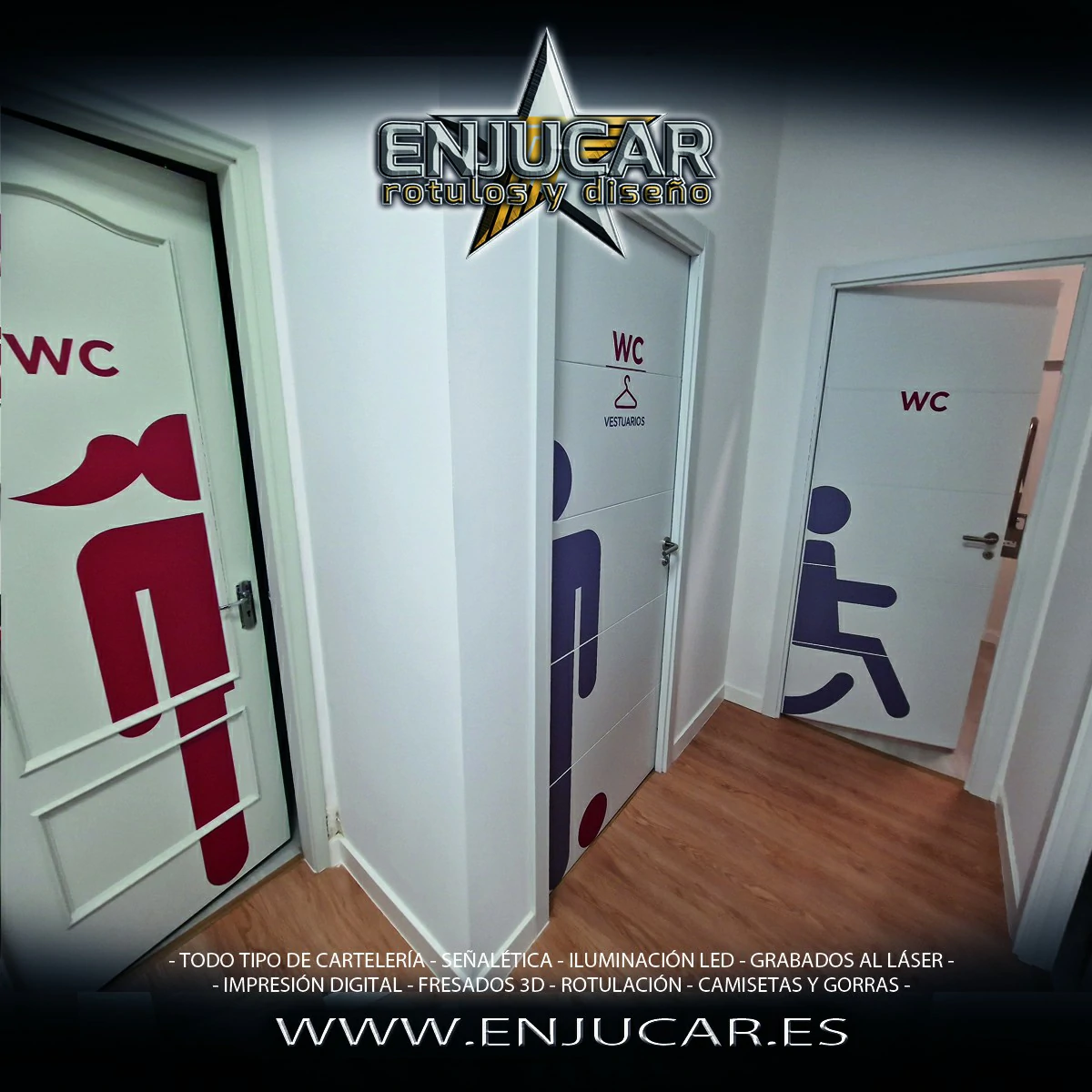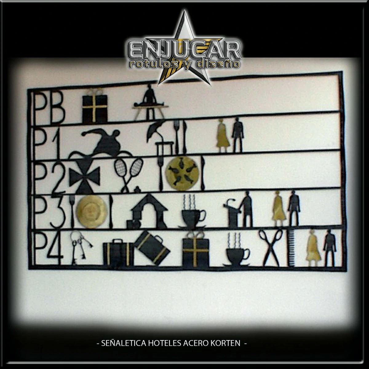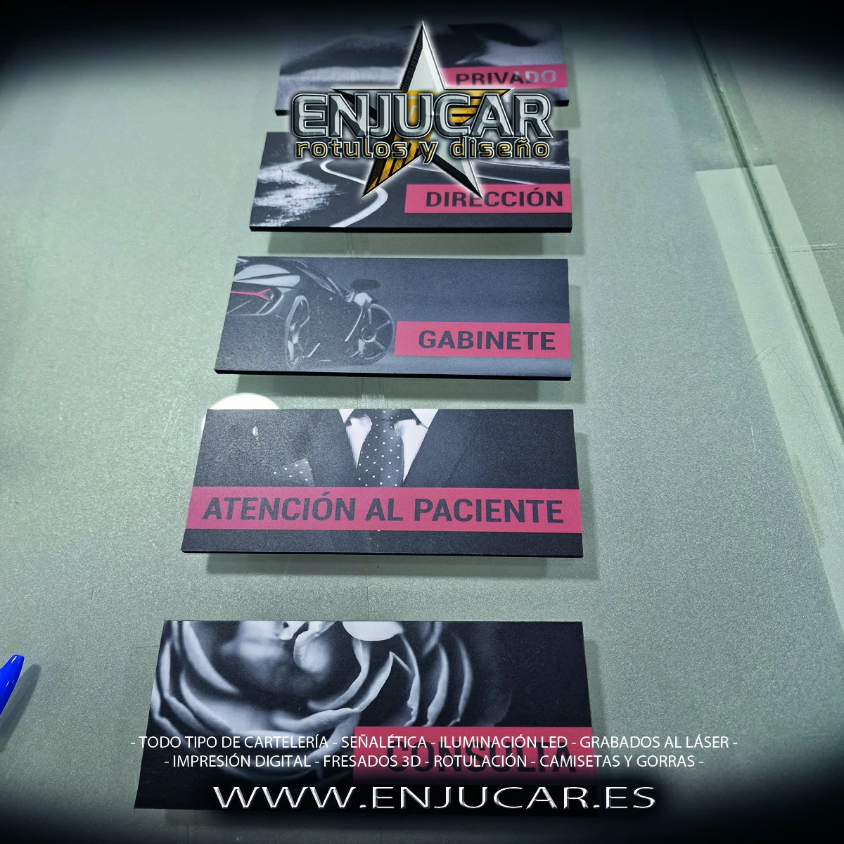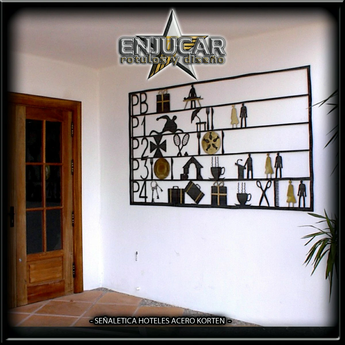 Ofrecemos soluciones para hoteles, apartamentos, hostelería, oficinas y cualquier otro entorno. Desde indicadores de número de habitación, directorios de servicios y señalización de personal, hasta señalética para despachos, turnos, normativas y especialidades.