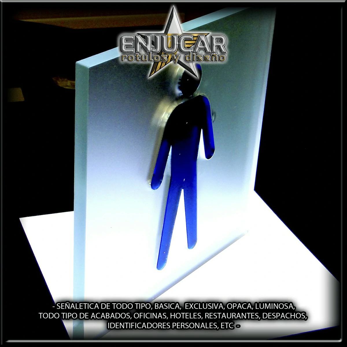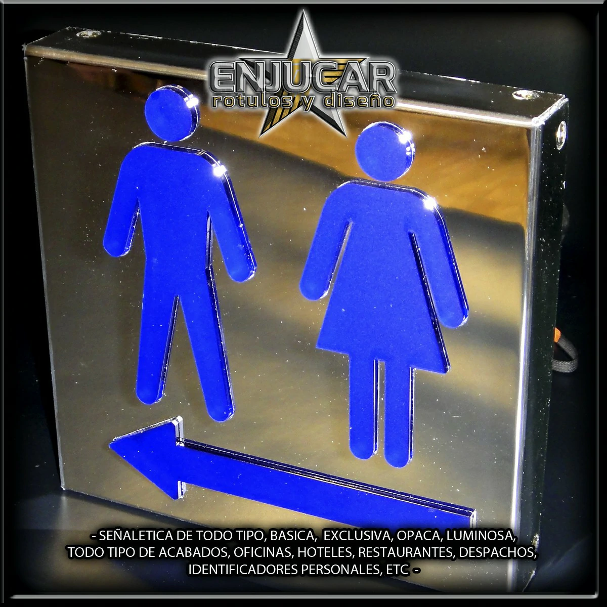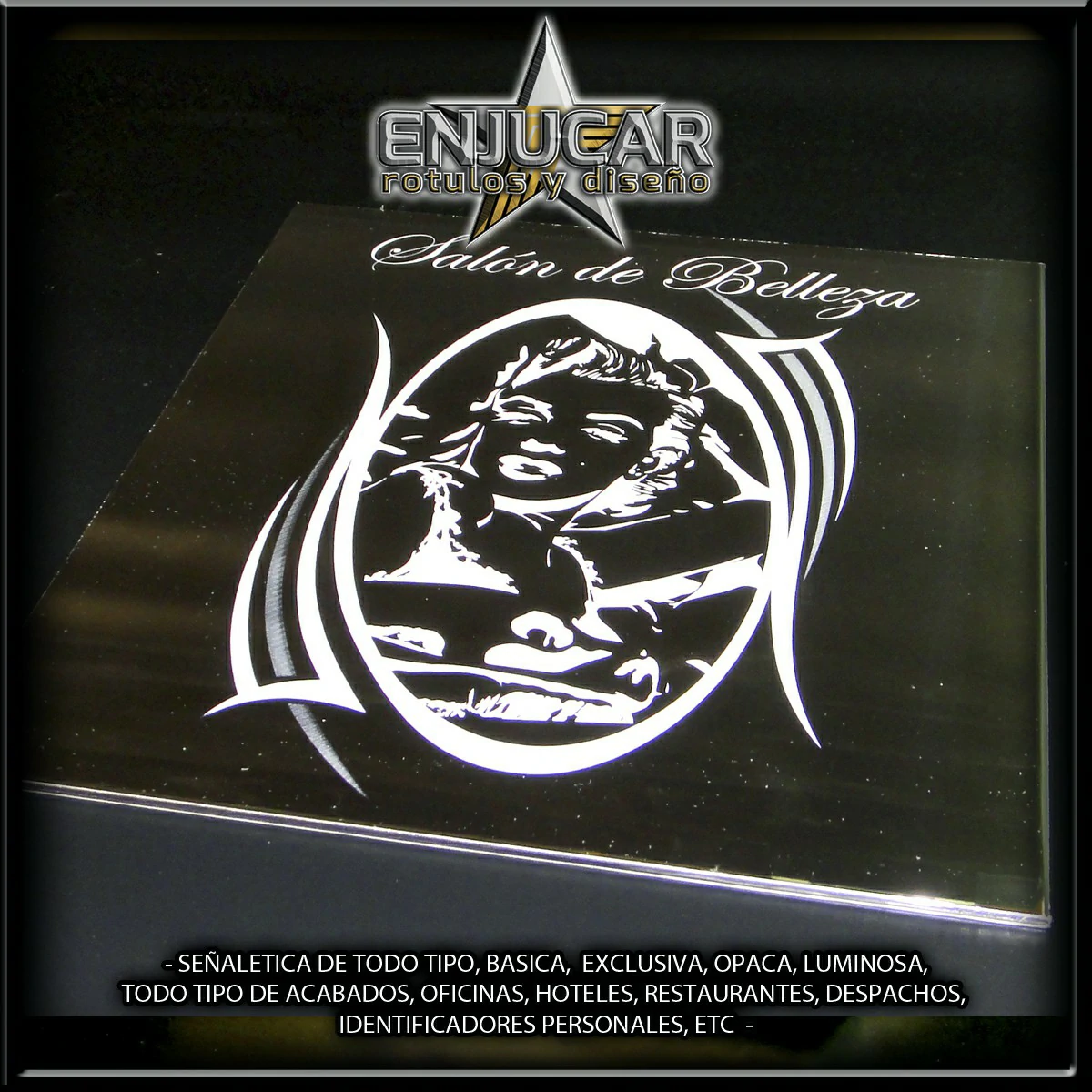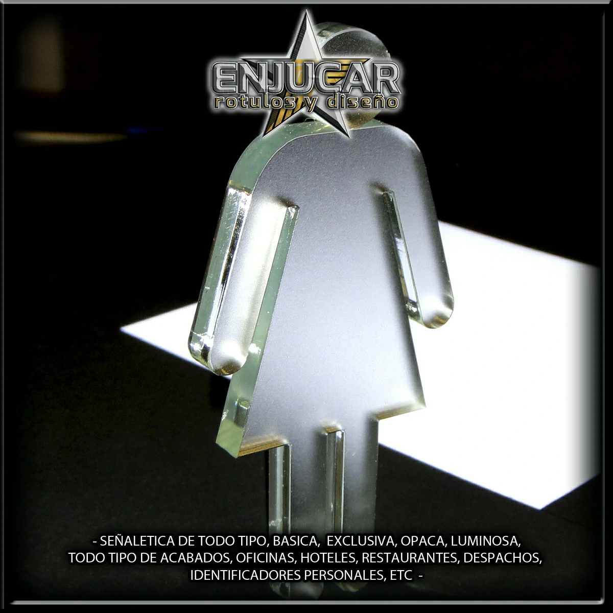 Trabajamos con una amplia variedad de materiales y acabados: fresados, opacos, en relieve, luminosos, espejo, cristal, acero, aluminio, acero cortén, acero inoxidable, latón, metacrilato, PVC, además de técnicas de impresión, grabado, tallado, bajo relieve, luz filtrante y luz fugada, garantizando calidad y durabilidad en cada proyecto.