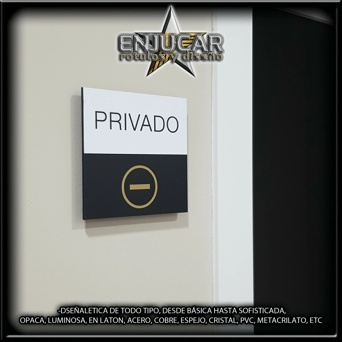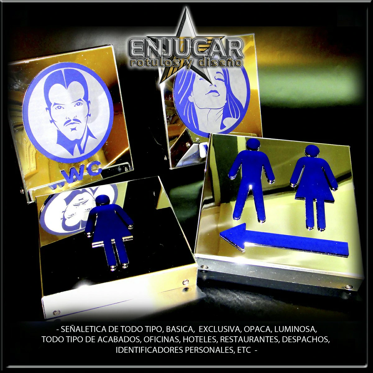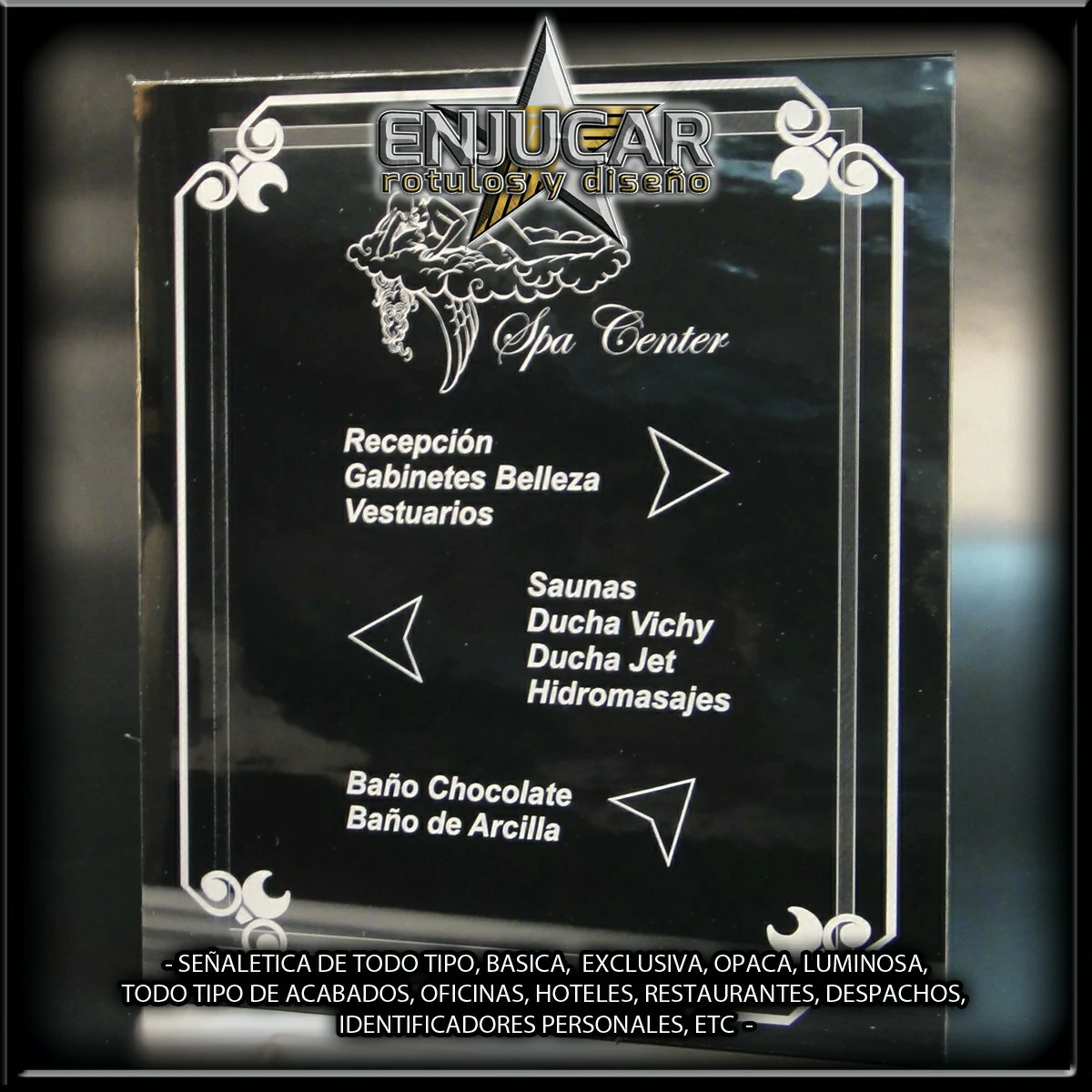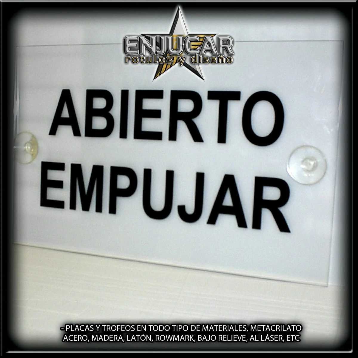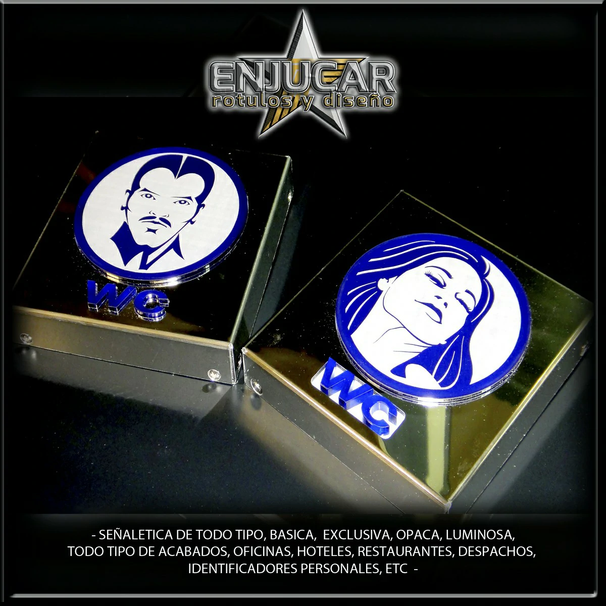 Trabajamos con una amplia variedad de materiales y acabados: fresados, opacos, en relieve, luminosos, espejo, cristal, acero, aluminio, acero cortén, acero inoxidable, latón, metacrilato, PVC, además de técnicas de impresión, grabado, tallado, bajo relieve, luz filtrante y luz fugada, garantizando calidad y durabilidad en cada proyecto.