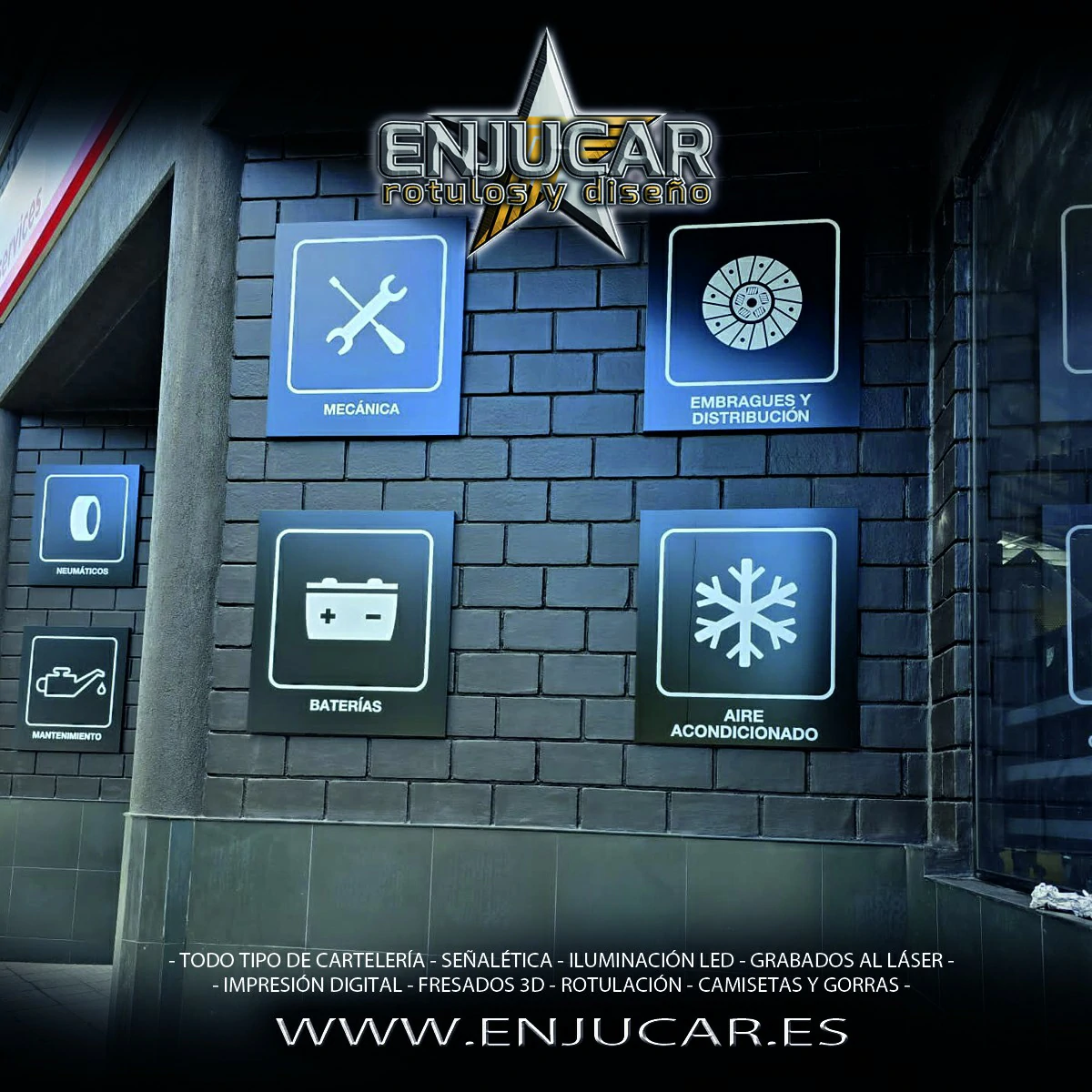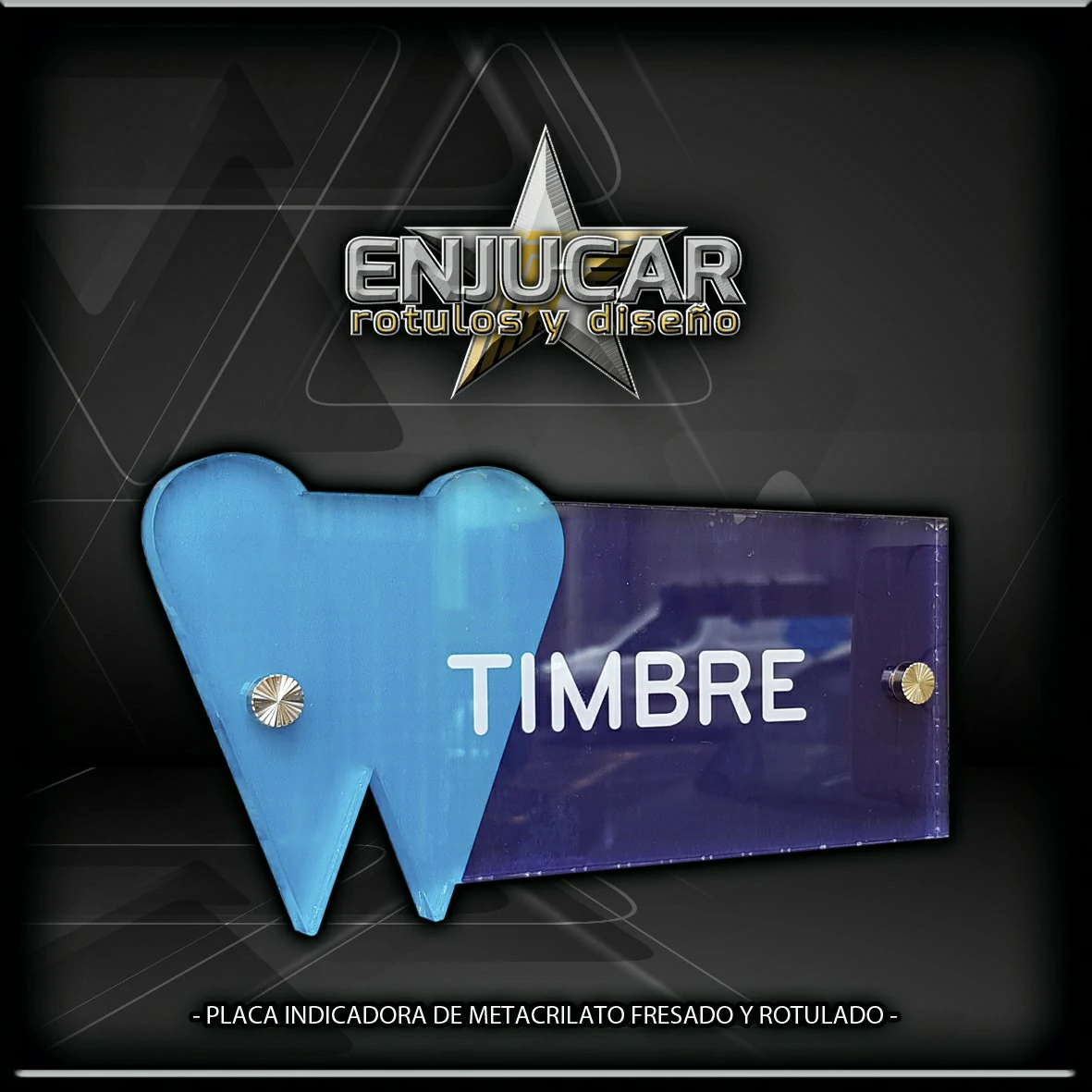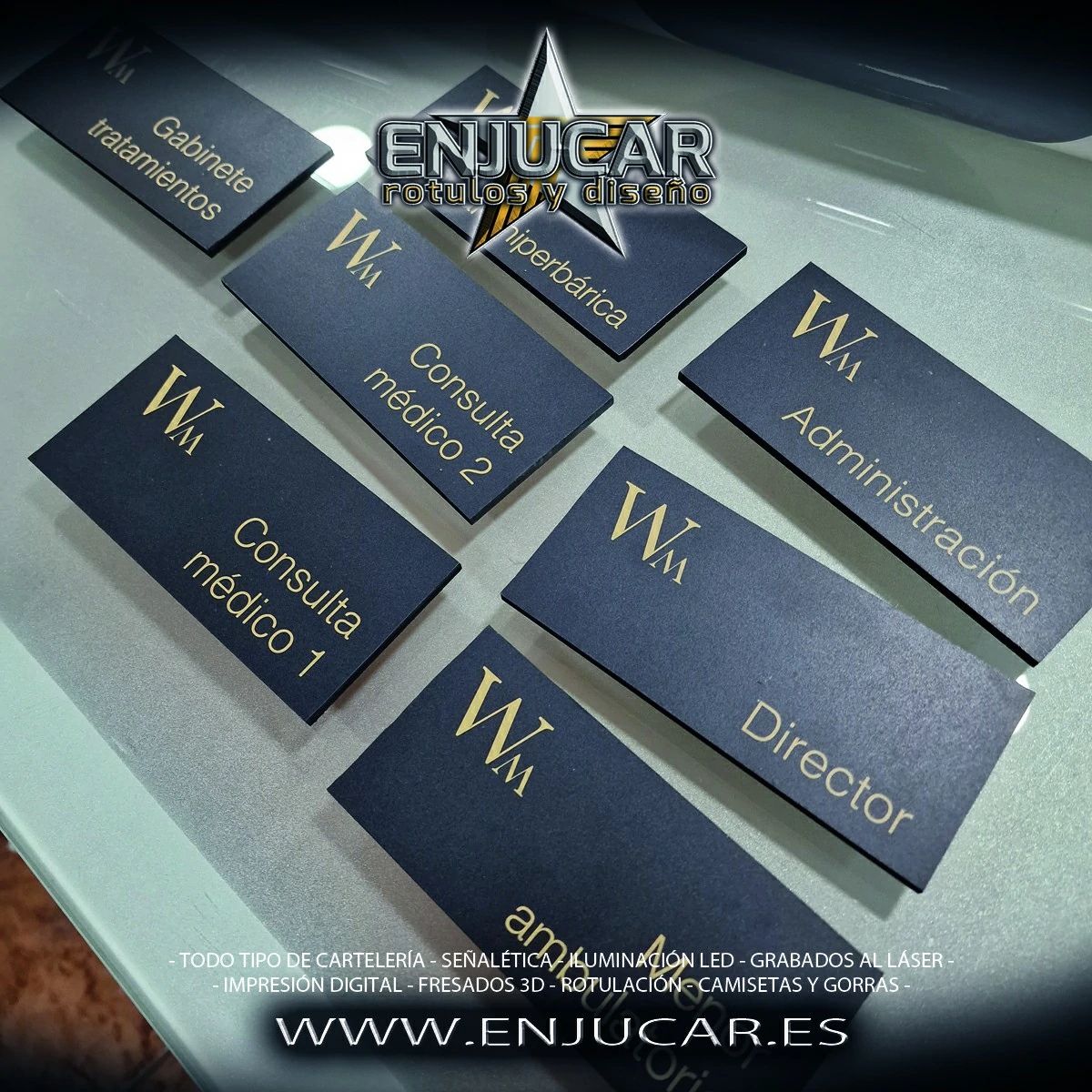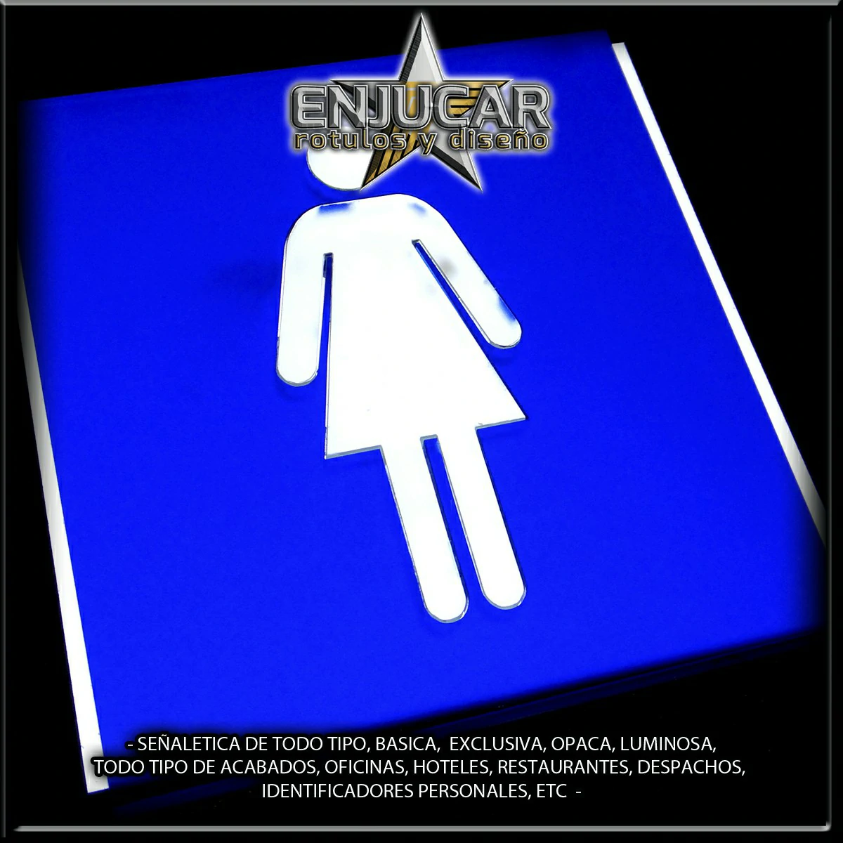 Trabajamos con una amplia variedad de materiales y acabados: fresados, opacos, en relieve, luminosos, espejo, cristal, acero, aluminio, acero cortén, acero inoxidable, latón, metacrilato, PVC, además de técnicas de impresión, grabado, tallado, bajo relieve, luz filtrante y luz fugada, garantizando calidad y durabilidad en cada proyecto.