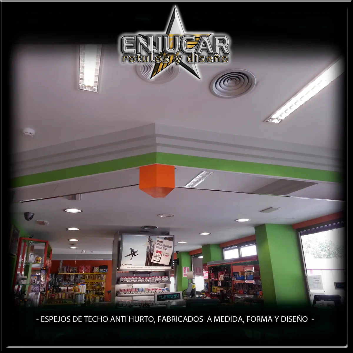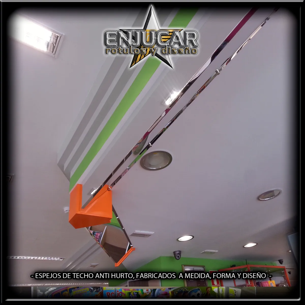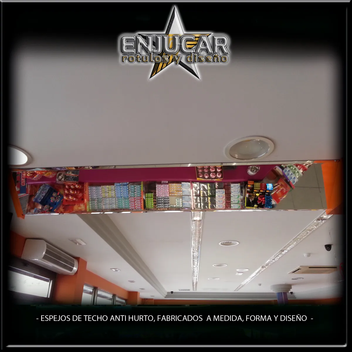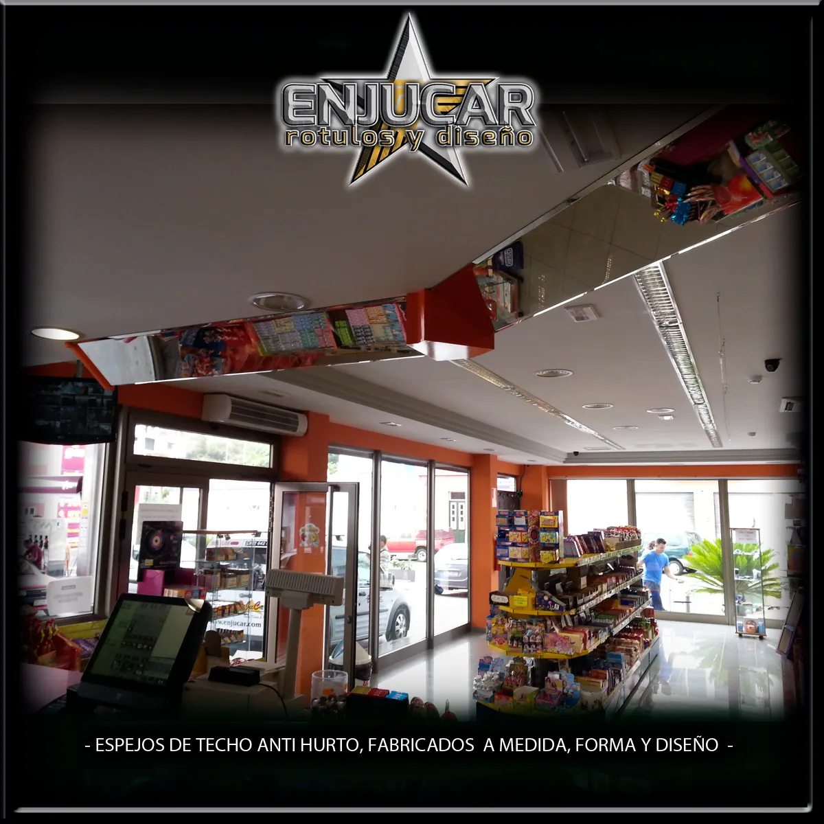 Fabricación y adaptación de espejos antihurto especialmente diseñados para tiendas, mostradores y espacios comerciales. Nuestros espejos se ajustan en forma, tamaño y diseño para cubrir ángulos y áreas de difícil acceso, como techos o frontales de mostradores con mercancía expuesta, garantizando mayor visibilidad y protección.
